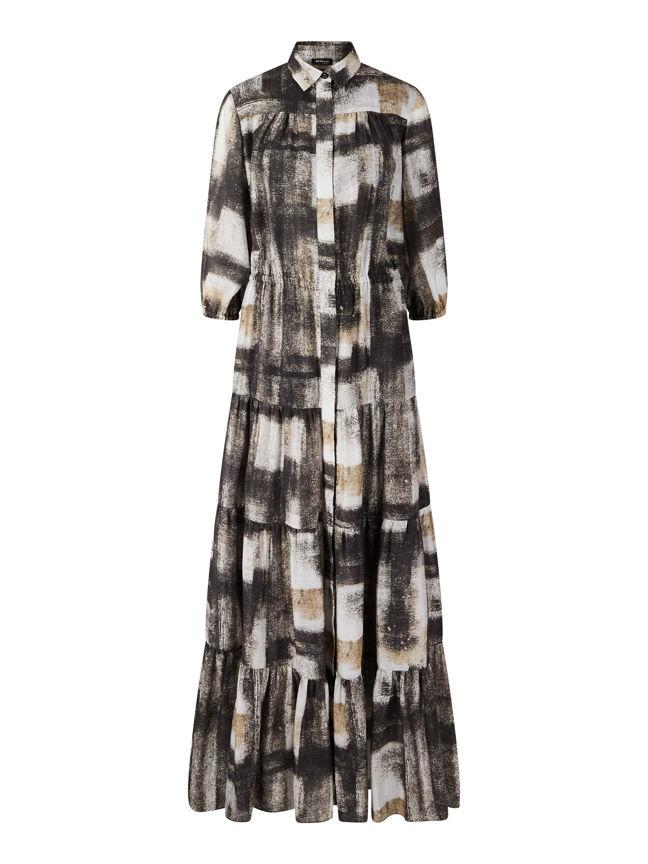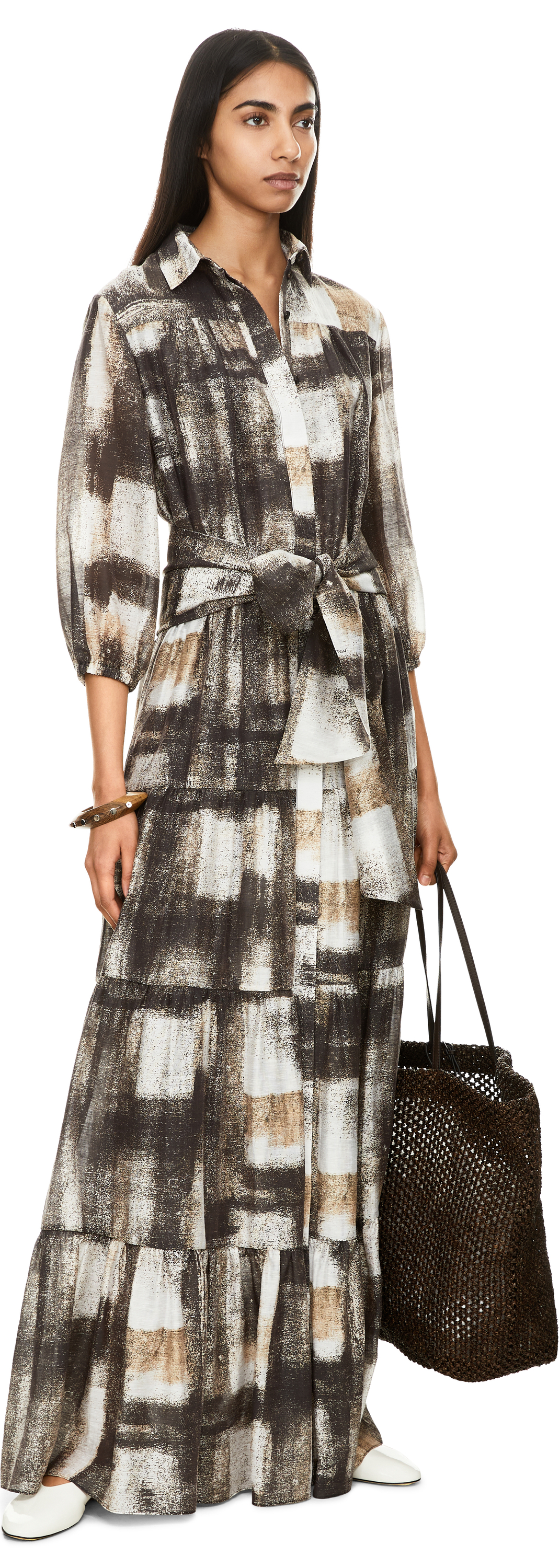 Dieses Kleid in Braun von Kiton wurde aus einer Materialmischung gefertigt und besticht durch den femininen Schnitt. Der klassische Kragen, die durchgehende verdeckte Knopfleiste mit Logoprägung sowie der Gürtel setzen eine taillierte Silhouette und komplettieren das Design.