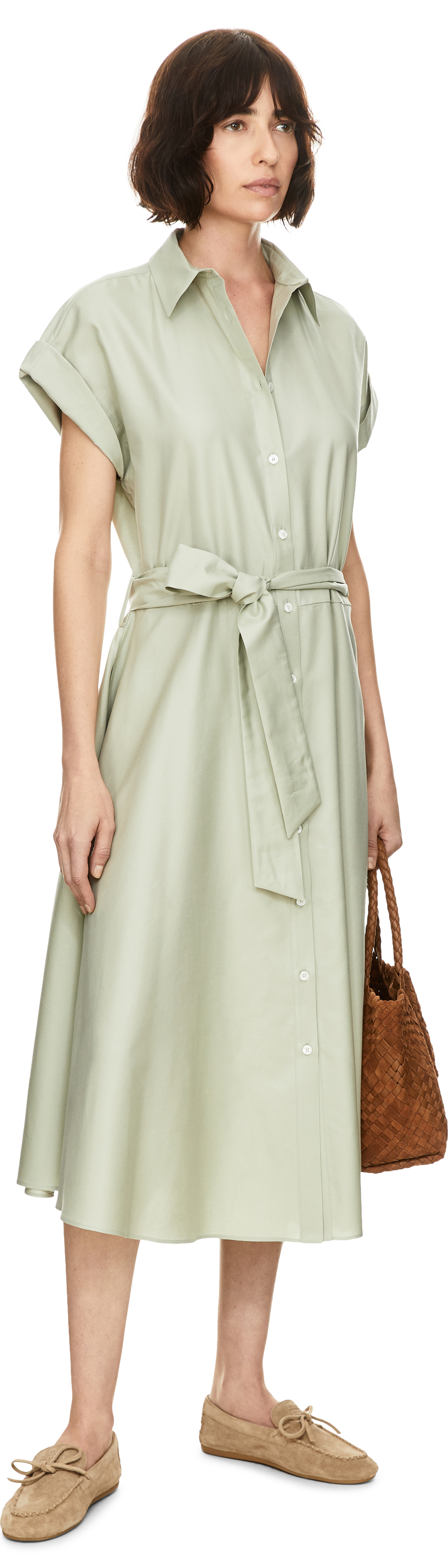 Blusenkleid mit Bindegürtel Olivgrün