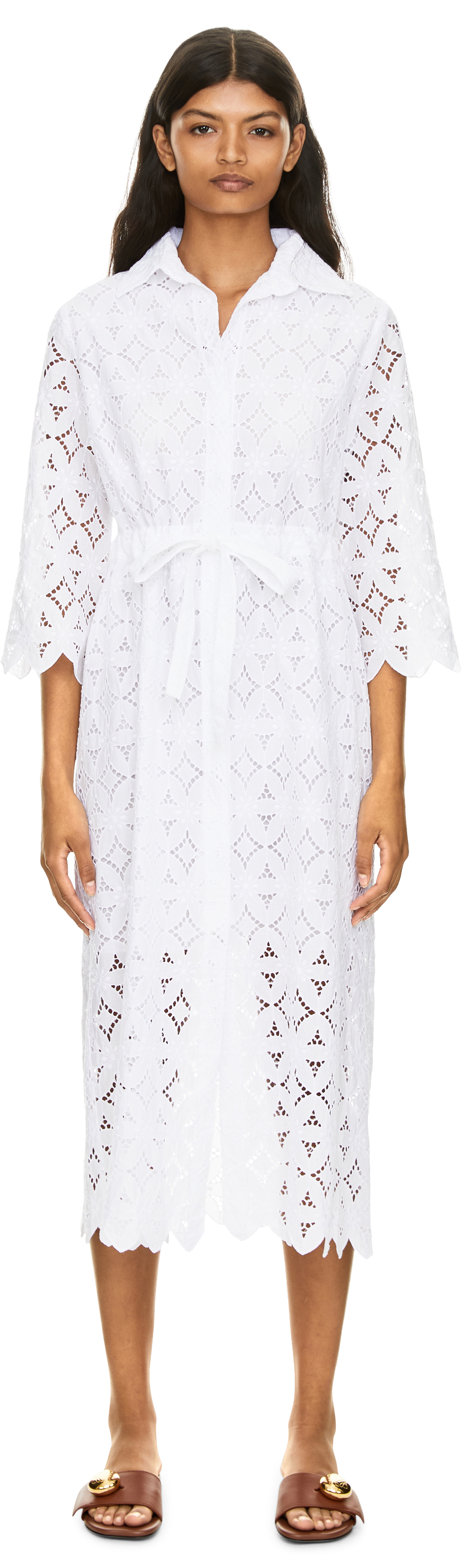 Maxikleid 'Cardamomo' mit Lochstickerei Weiß