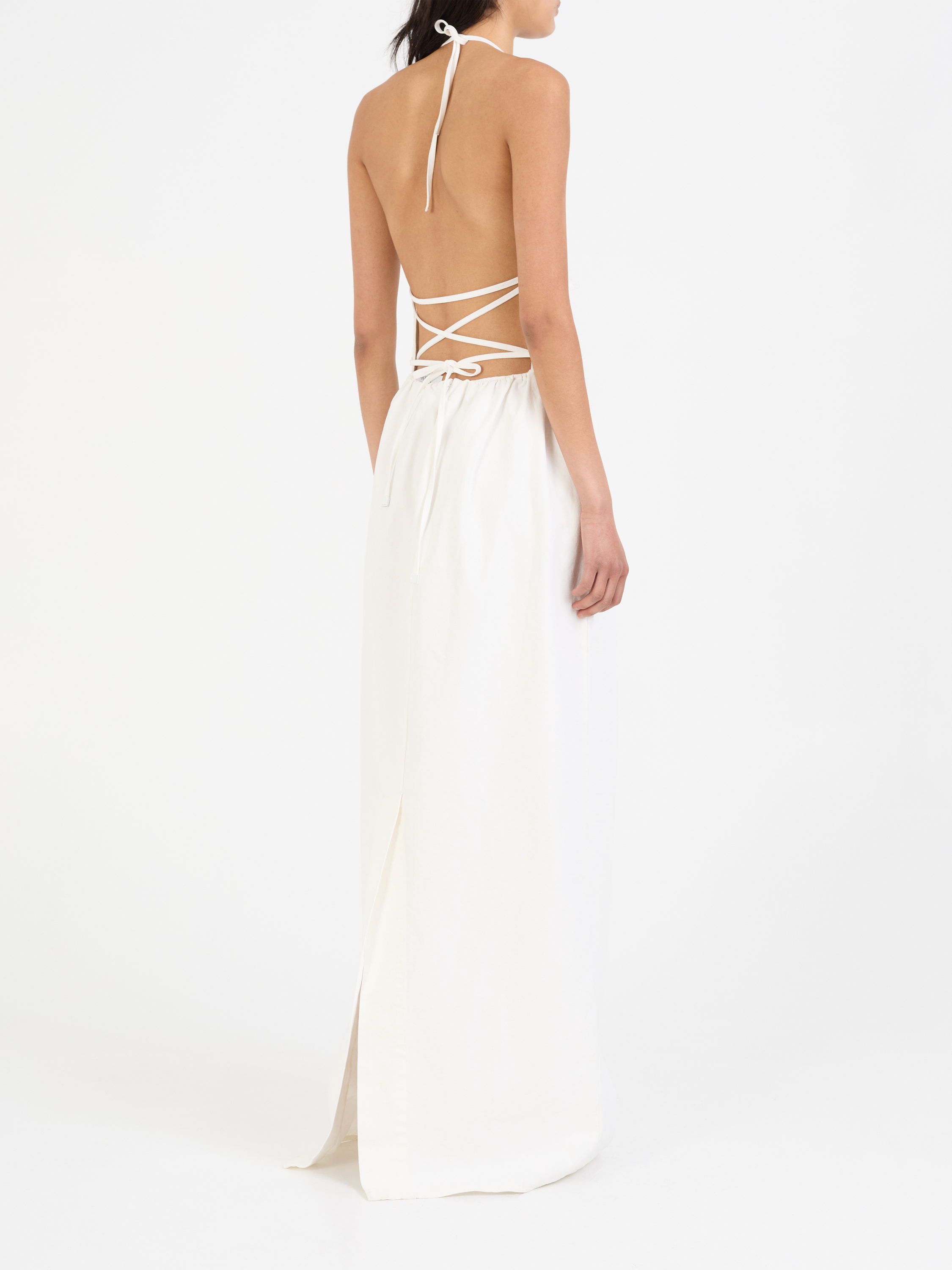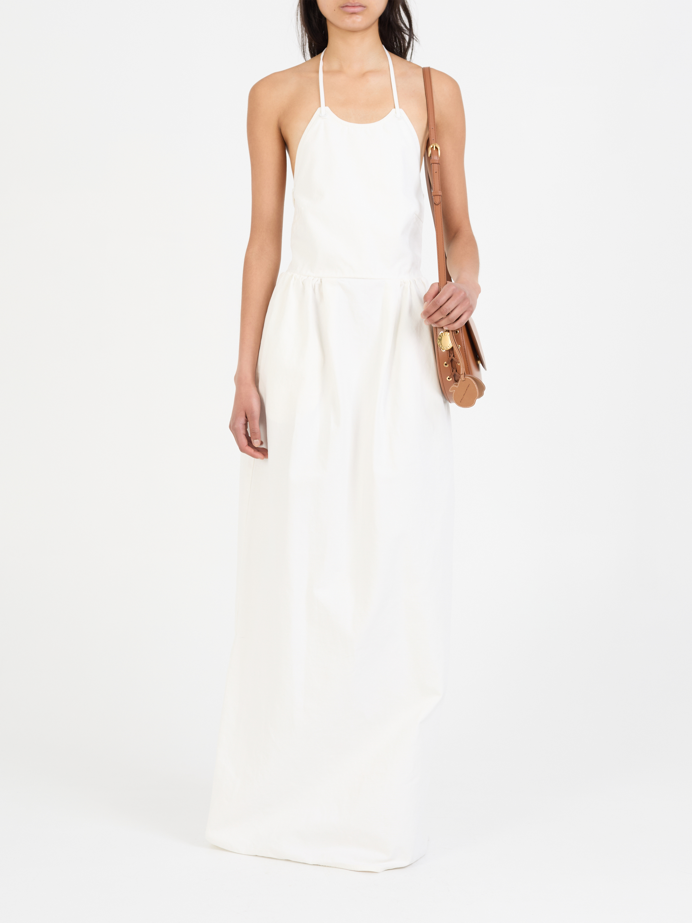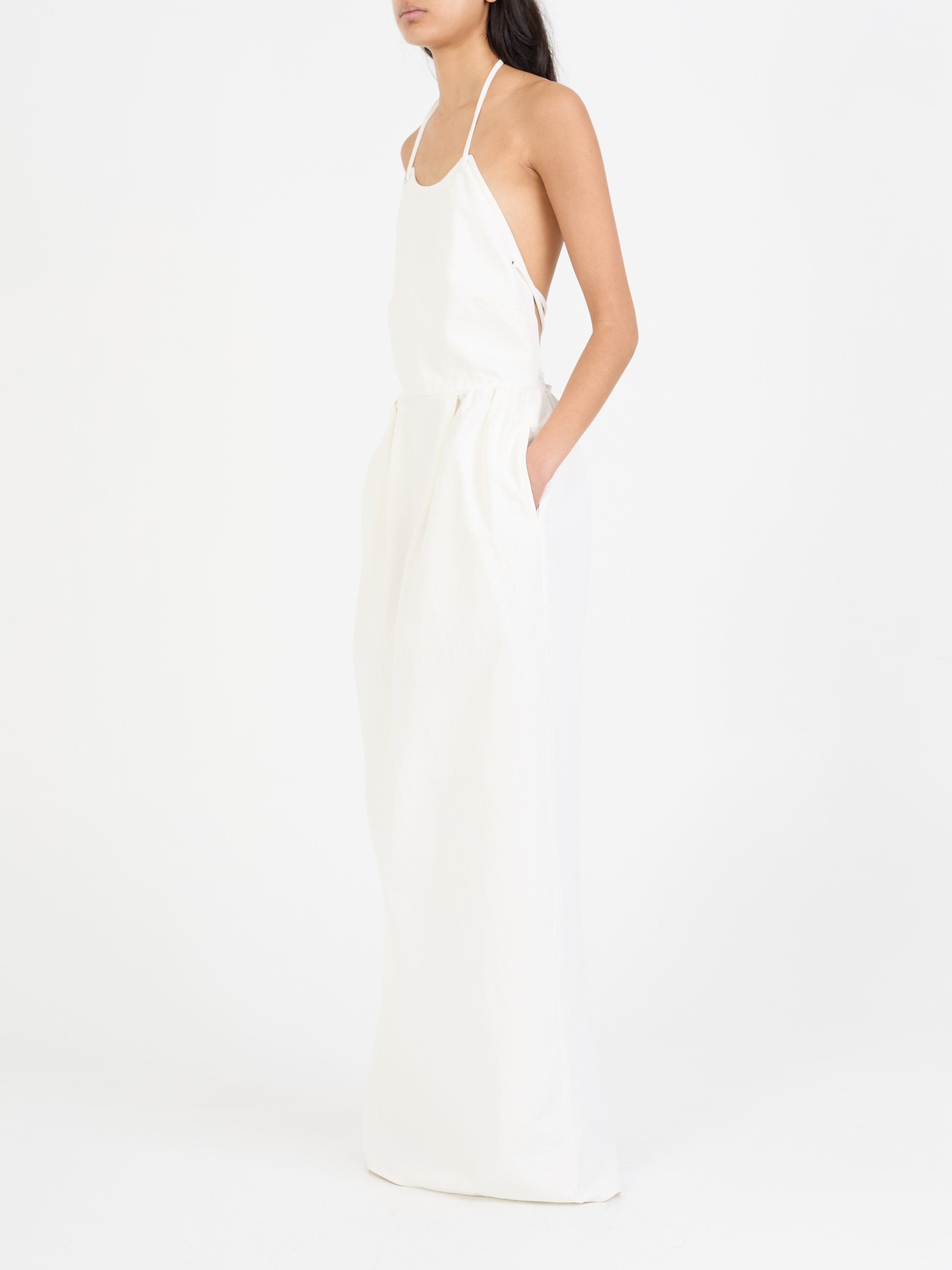 Dieses Kleid 'Europa' in Weiß von 'S Max Mara wurde aus reiner Baumwolle gefertigt und begeistert durch freien Rücken mit Schnürung. Der Taillenabnäher lässt einen Rock entstehen, der an den Hüften weit und unten gerade ist, mit schräg gesetzten Eingrifftaschen und einer mittigen Gehfalte hinten.