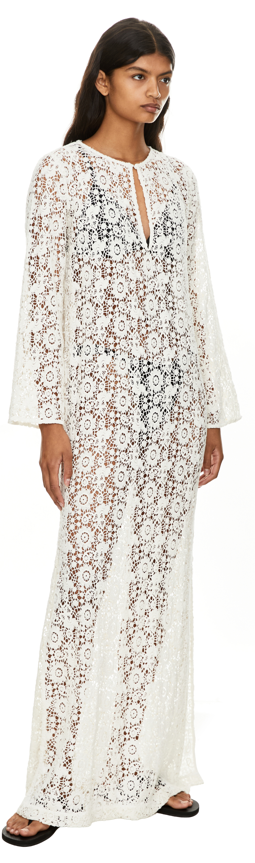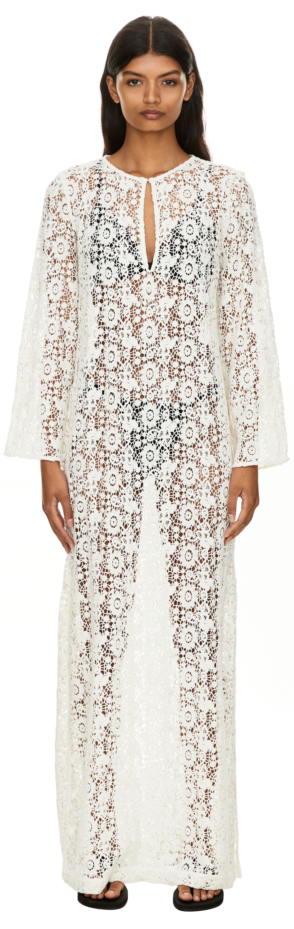 Das Kleid 'Della' in Crème von NILI LOTAN wurde aus gehäkelter Baumwolle gefertigt und besticht durch das florale Motiv. Die leicht lockere Passform verfügt vorne über einen Schlüssellochausschnitt, der sich mithilfe eines Knopfes individuell anpassen lässt, sowie über zwei seitliche Schlitze und transparenten Spitzenstoff.