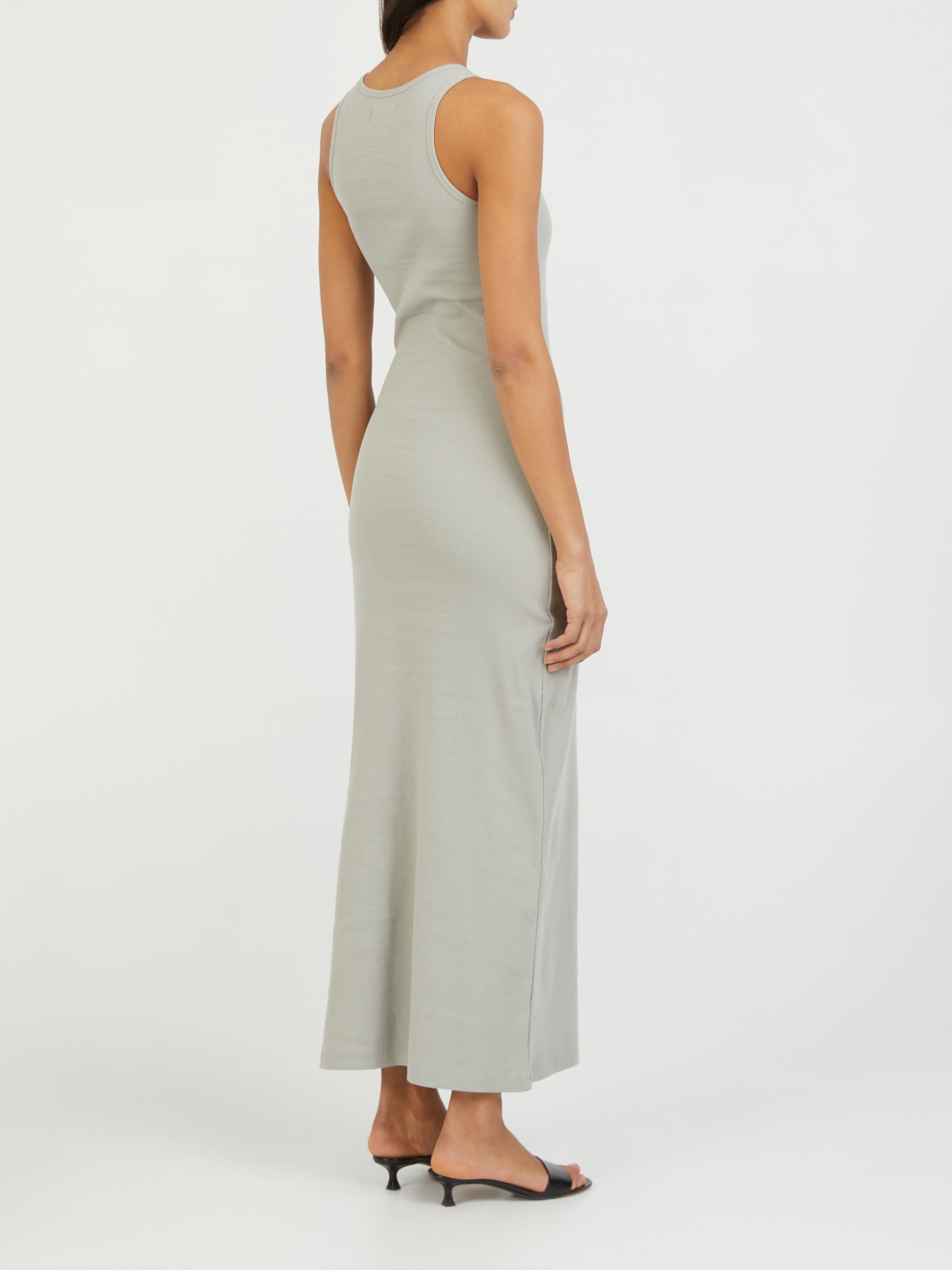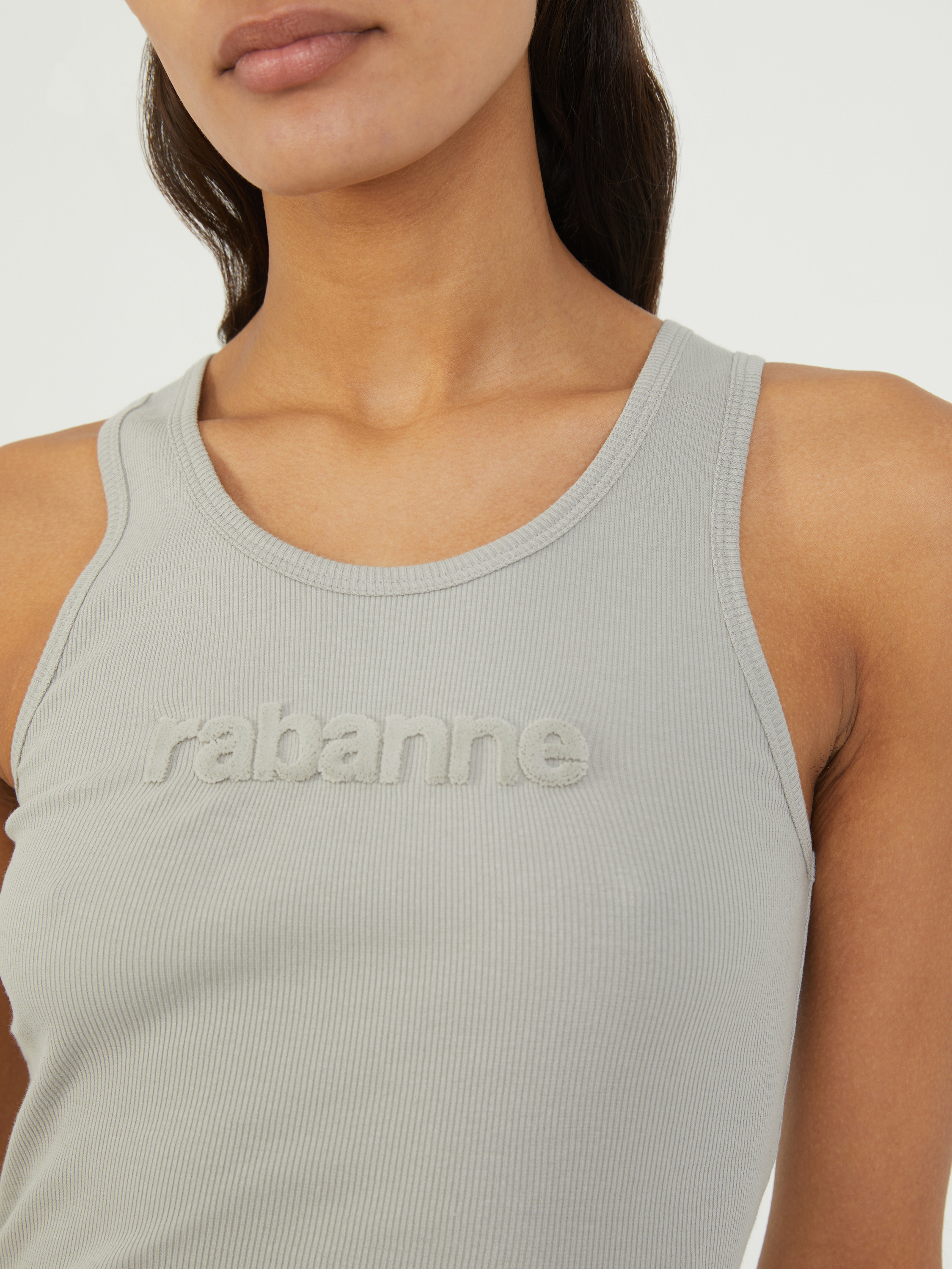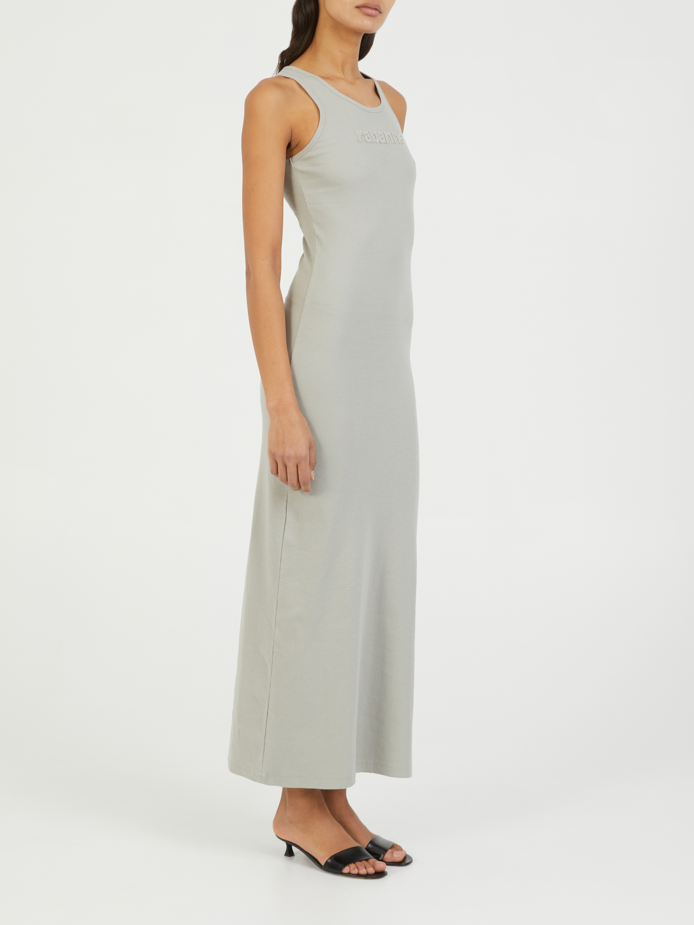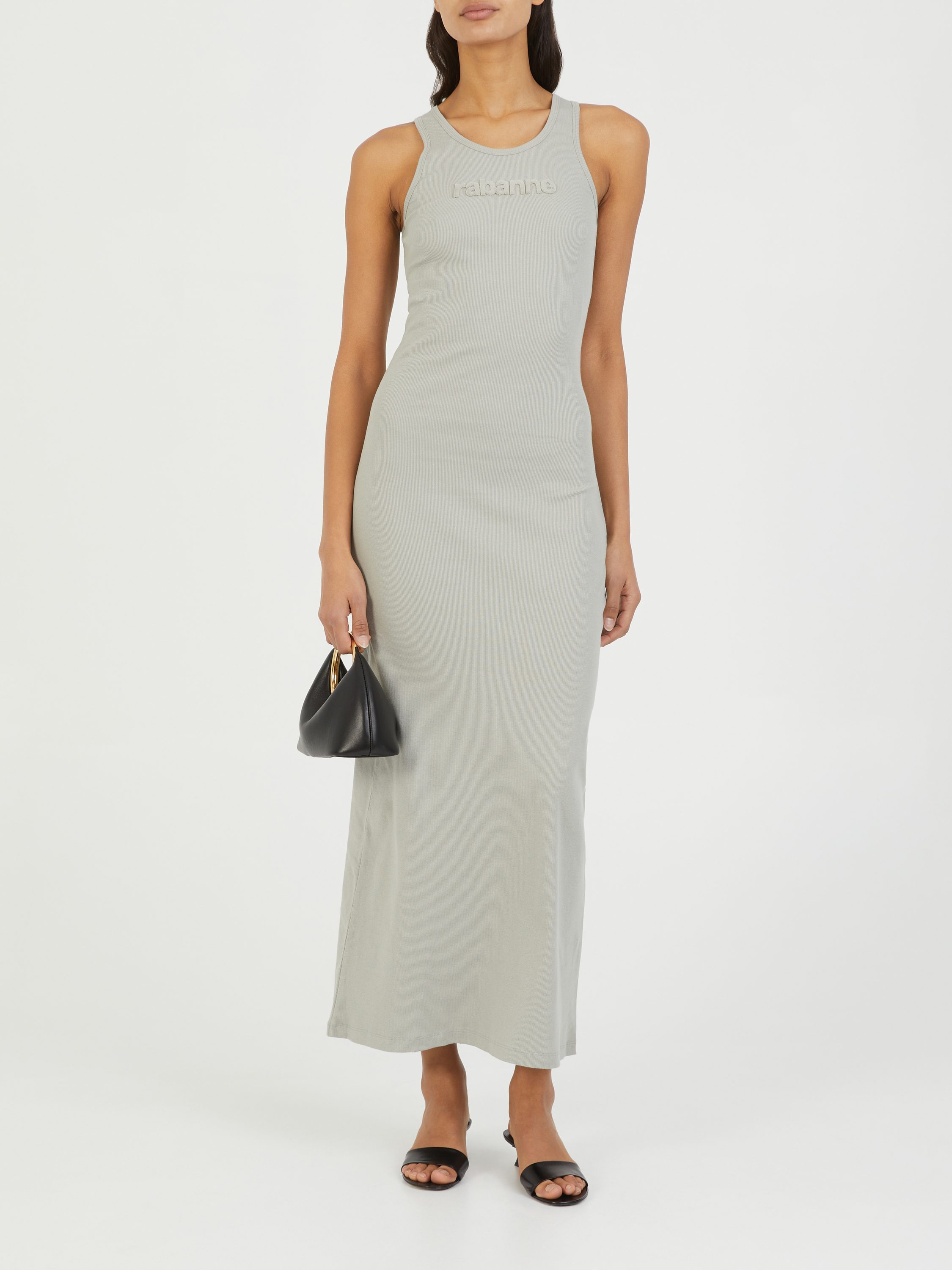 Das Kleid in Hellgrau von rabanne wurde aus einem hochwertigen Baumwollgemisch gefertigt und besticht durch den Rippstrick. Die körpernahe Silhouette, der Rundhalsausschnitt und die breiten Träger zeichnen dieses modische Modell aus.