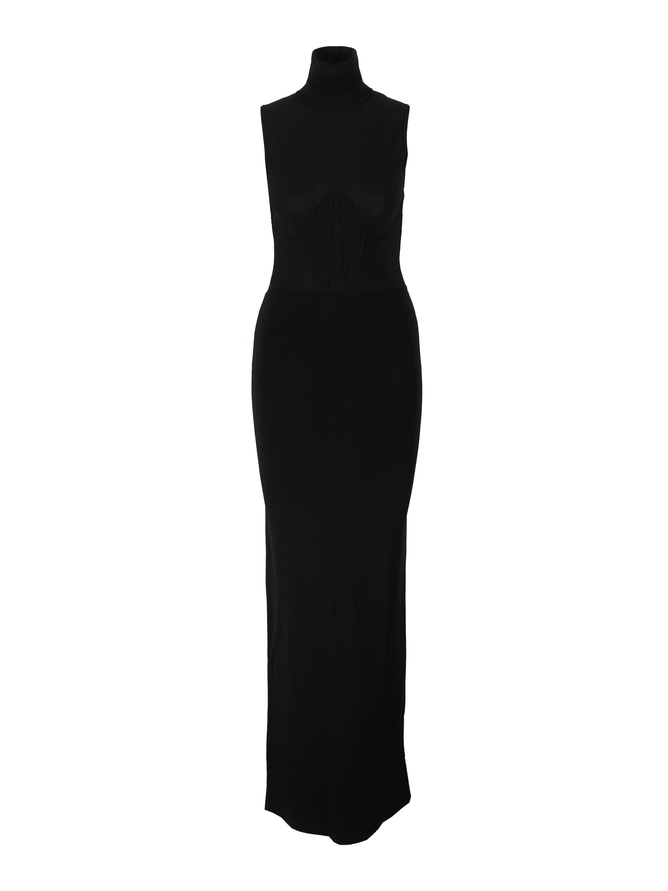 Dieses Maxikleid in Schwarz von NENSI DOJAKA wurde aus hochwertigen Materialien gefertigt und besticht durch das Korsett-Detail. Die figurbetonte Silhouette und der lange, schmale Schnitt zeichnen dieses moderne Modell aus.