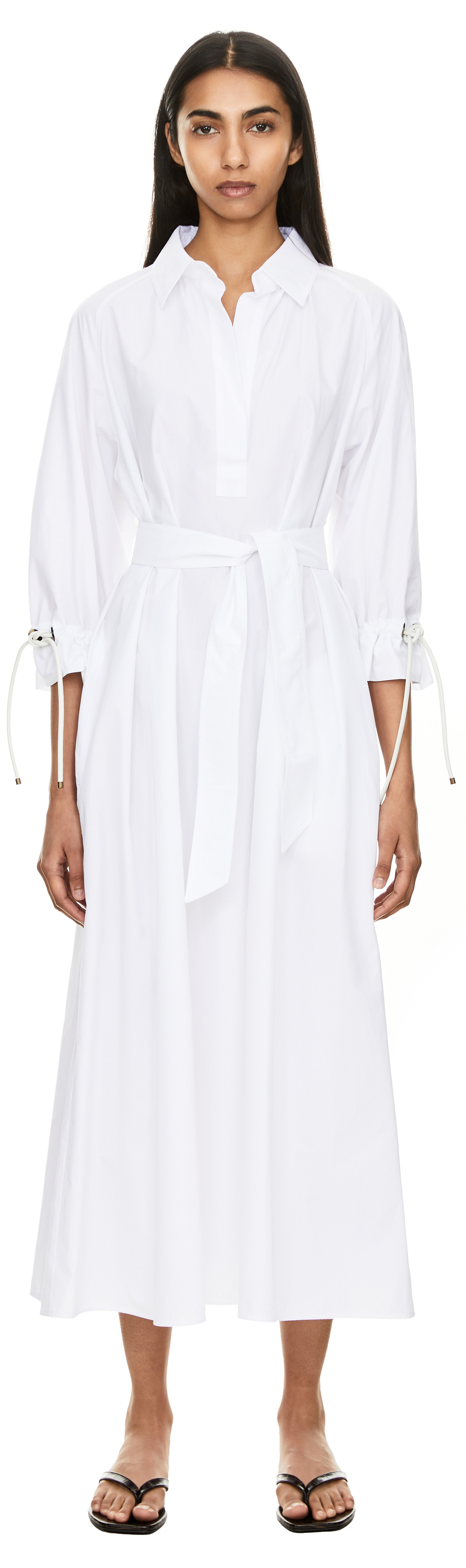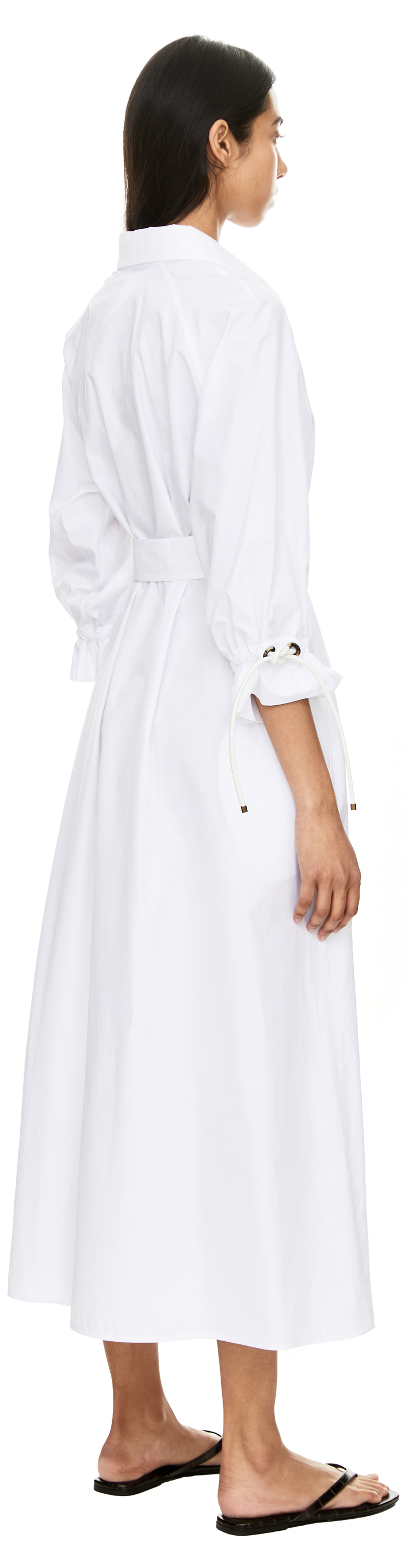Das Kleid 'Mirto' in Weiß von Max Mara wurde aus hochwertiger Baumwolle gefertigt und besticht durch seine elegante Leichtigkeit. Raffinierte Details wie der Polokragen und die Kordelzüge an den Ärmelsäumen setzen stilvolle Akzente. Die ausgestellte Passform in Midilänge wird durch den abnehmbaren Bindegürtel betont und unterstreicht die feminine Silhouette.