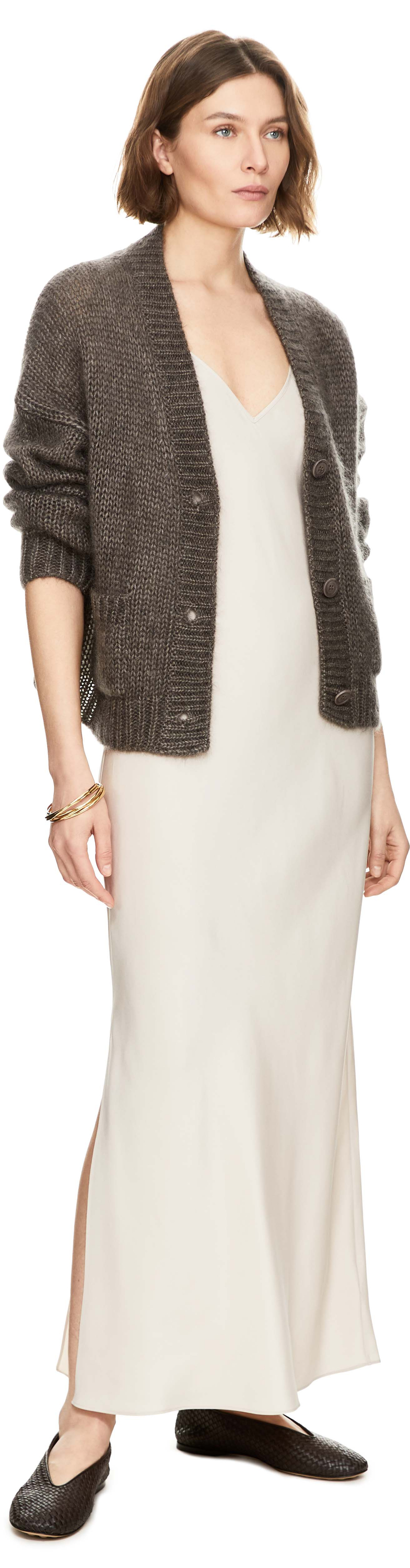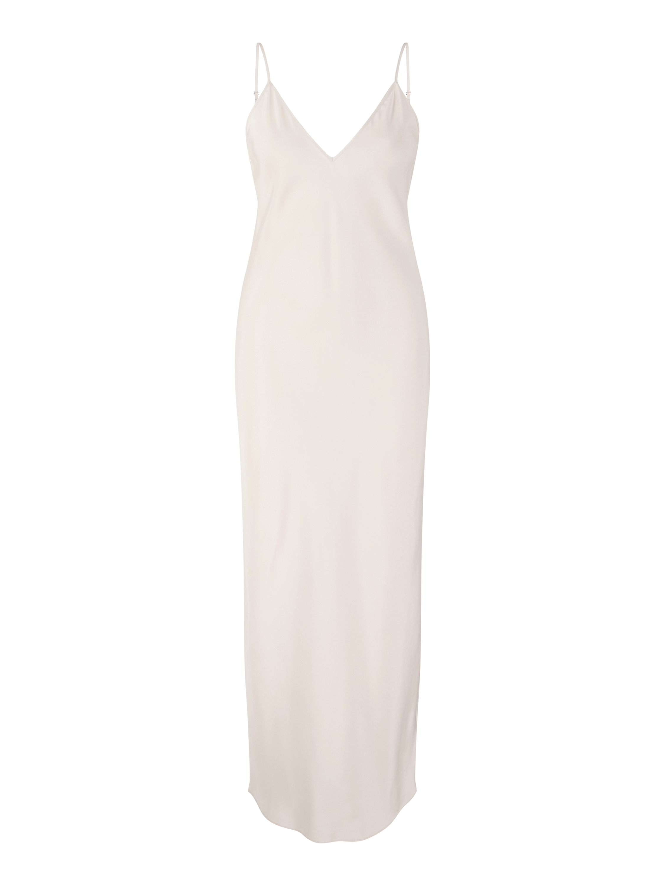 Das Kleid 'Tirana Long' in Alabaster von Iris von Arnim wurde aus hochwertiger Seide gefertigt und besticht durch die fließende Silhouette. Der V-Ausschnitt und die schmalen Träger unterstreichen die feminine Note, während der seitliche Schlitz für komfortable Bewegungsfreiheit sorgt.