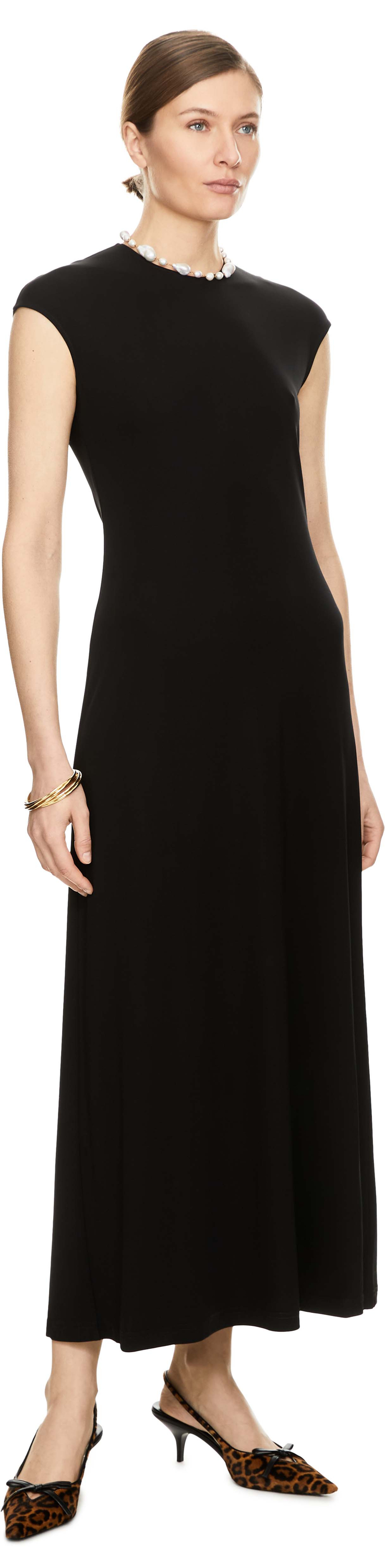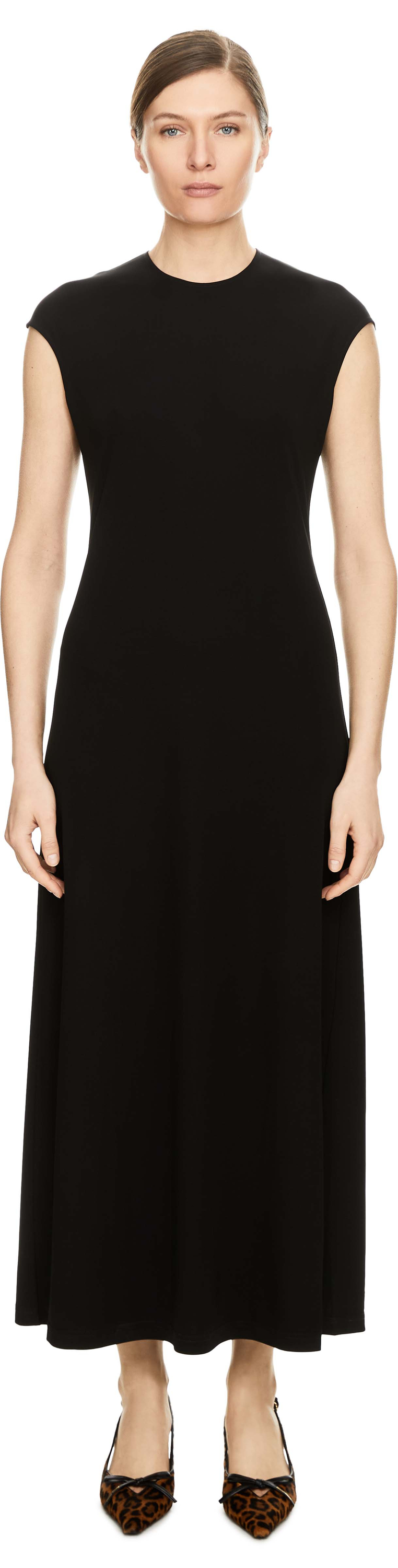 Das Kleid 'Everyday' in Schwarz von TOTEME wurde aus einer Materialmischung gefertigt und besticht durch die fließende, schmale Silhouette. Der Rundhalsausschnitt als auch die knöchellange Passform prägen das edle Design.