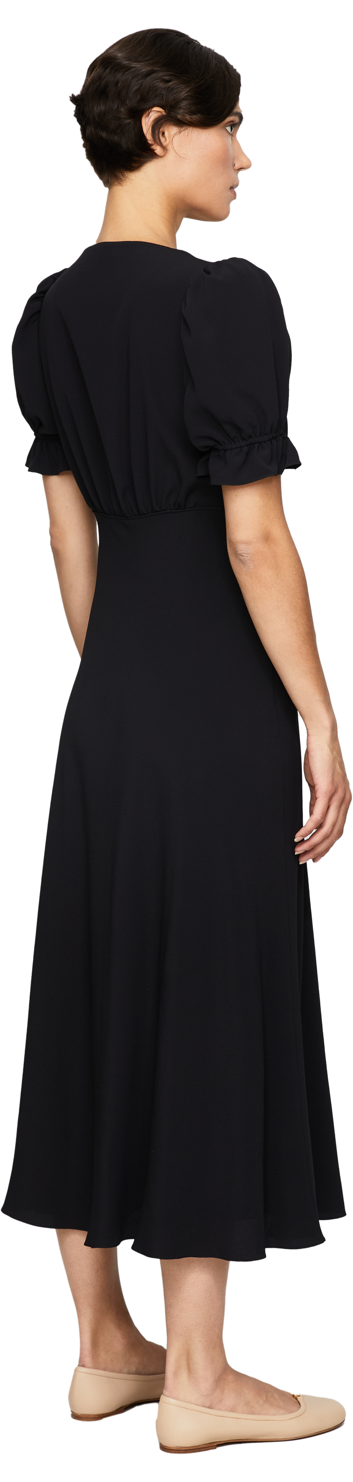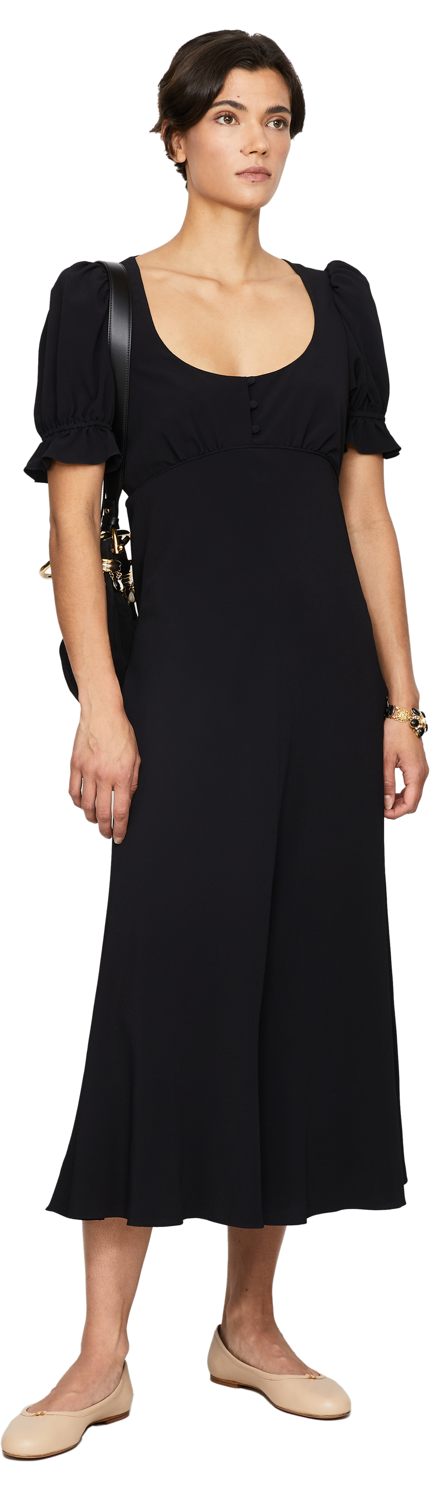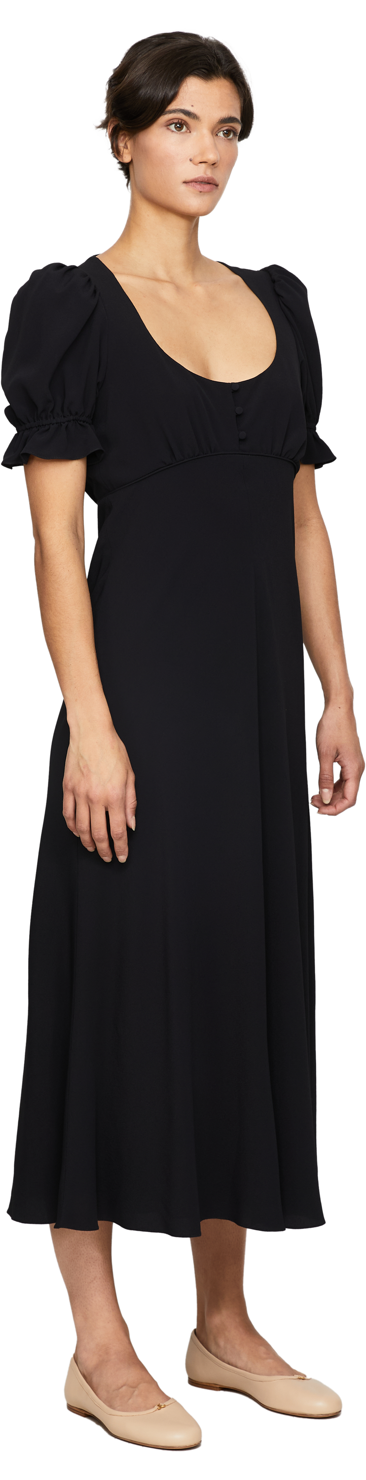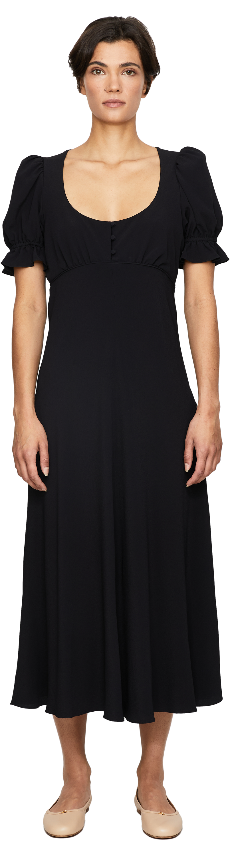 Dieses Midikleid in Schwarz von Chloé wurde aus hochwertigen Materialien gefertigt und besticht durch die ikonische Empire-Linie. Das fließende Material, die eng anliegende Oberpartie und der runde Ausschnitt zeichnen dieses verspielte Design aus.