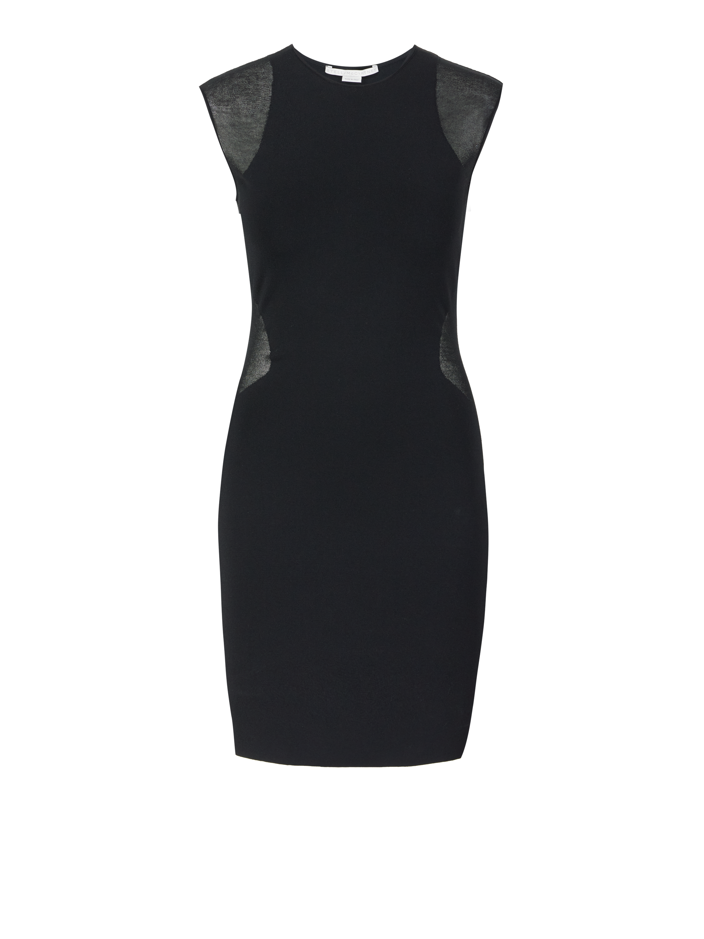 Das Kleid 'Miracle' in Schwarz von Stella McCartney wurde aus einem elastischen Material gefertigt und besticht durch das minimalistische Design. Die transparenten Einsätze, die taillierte Passform und die Midilänge vollenden dieses klassische Modell.