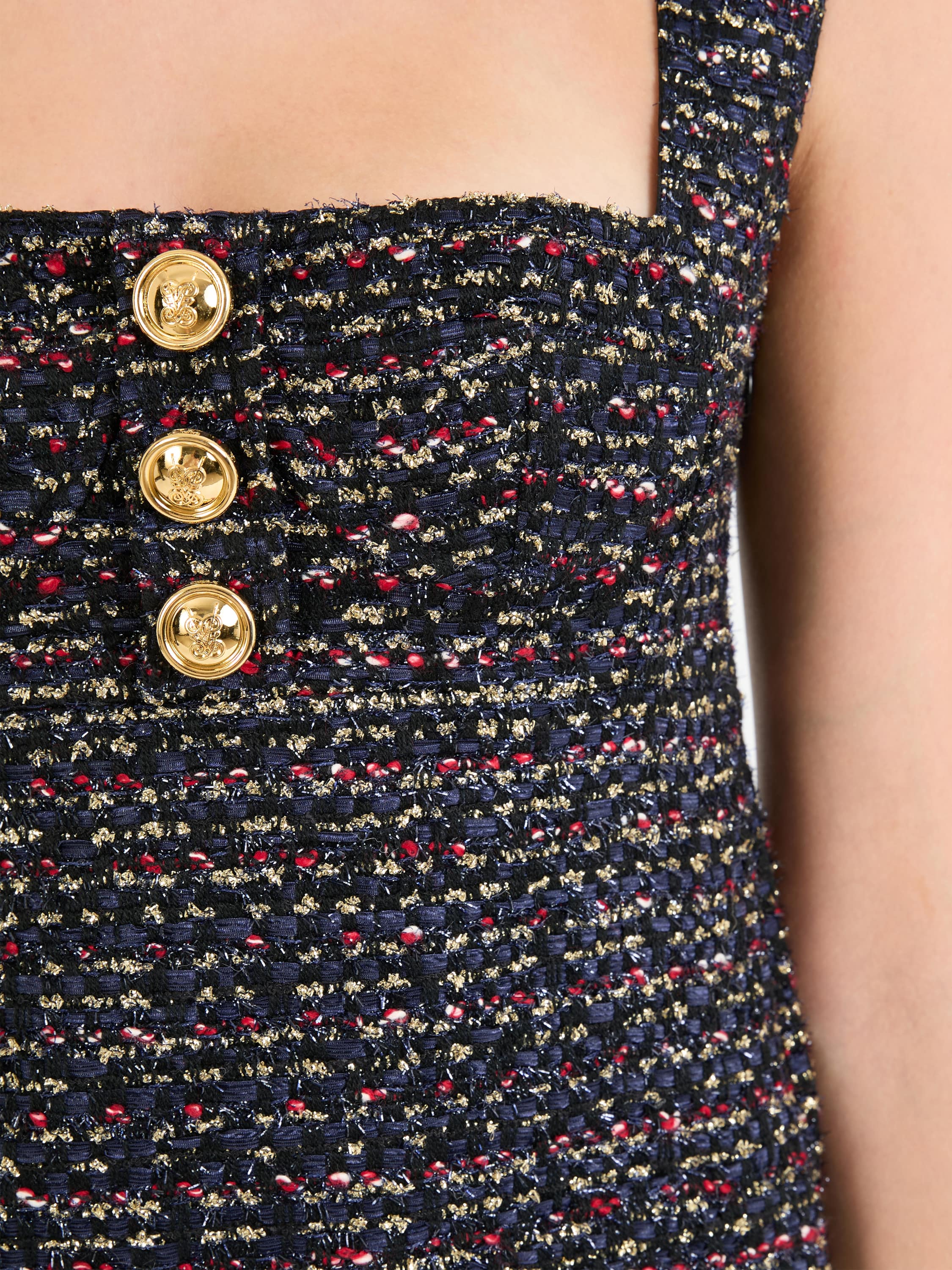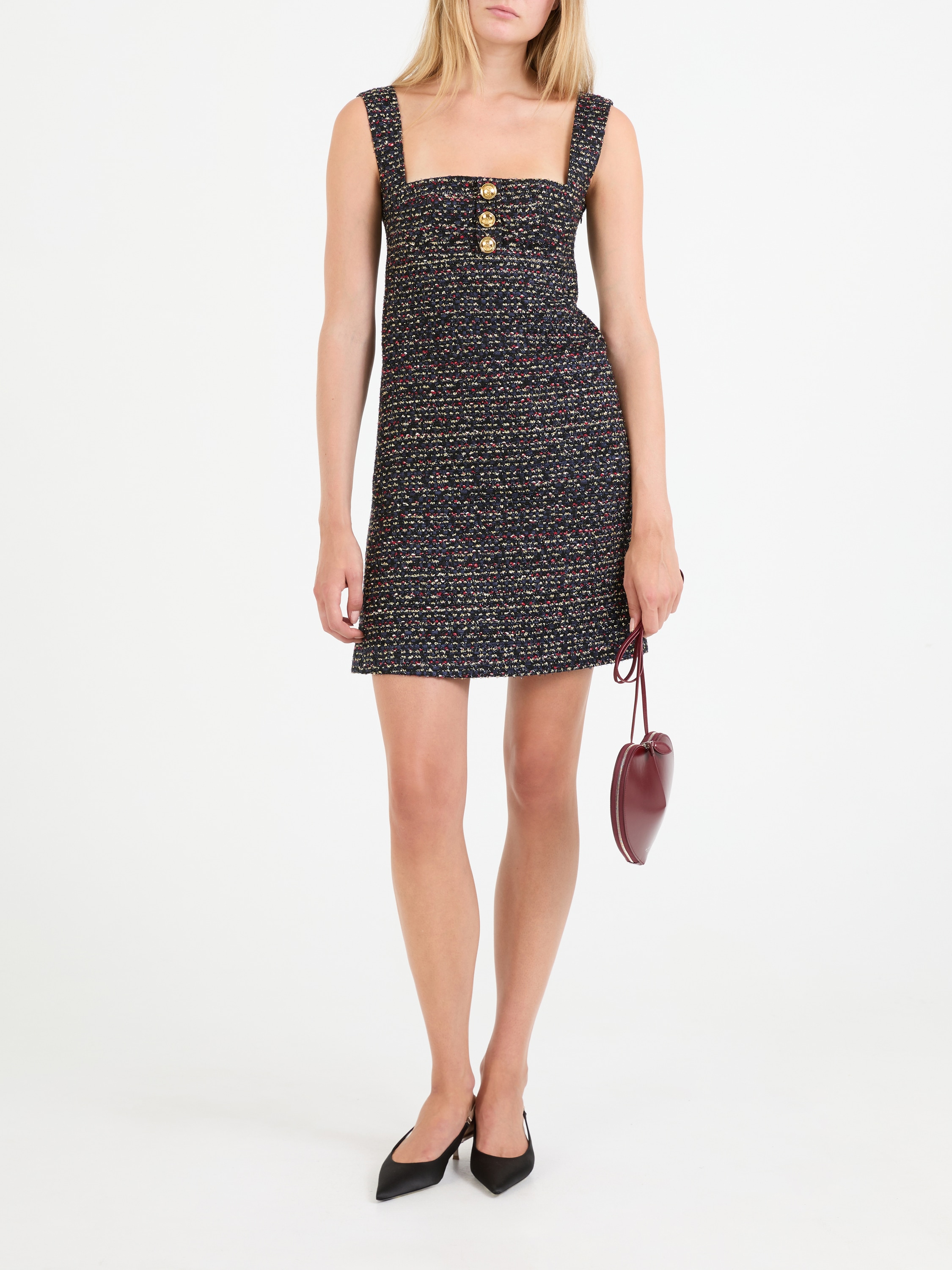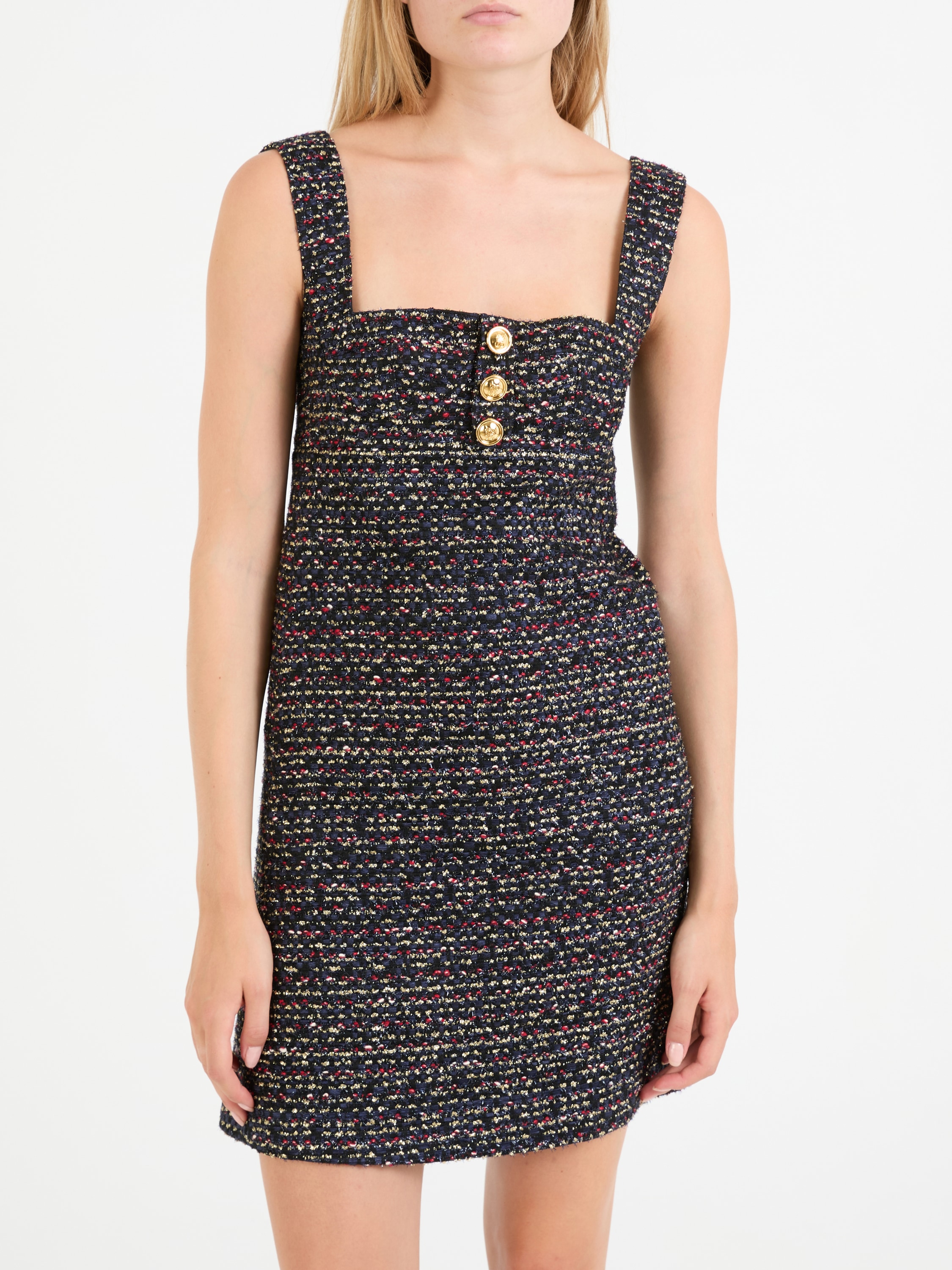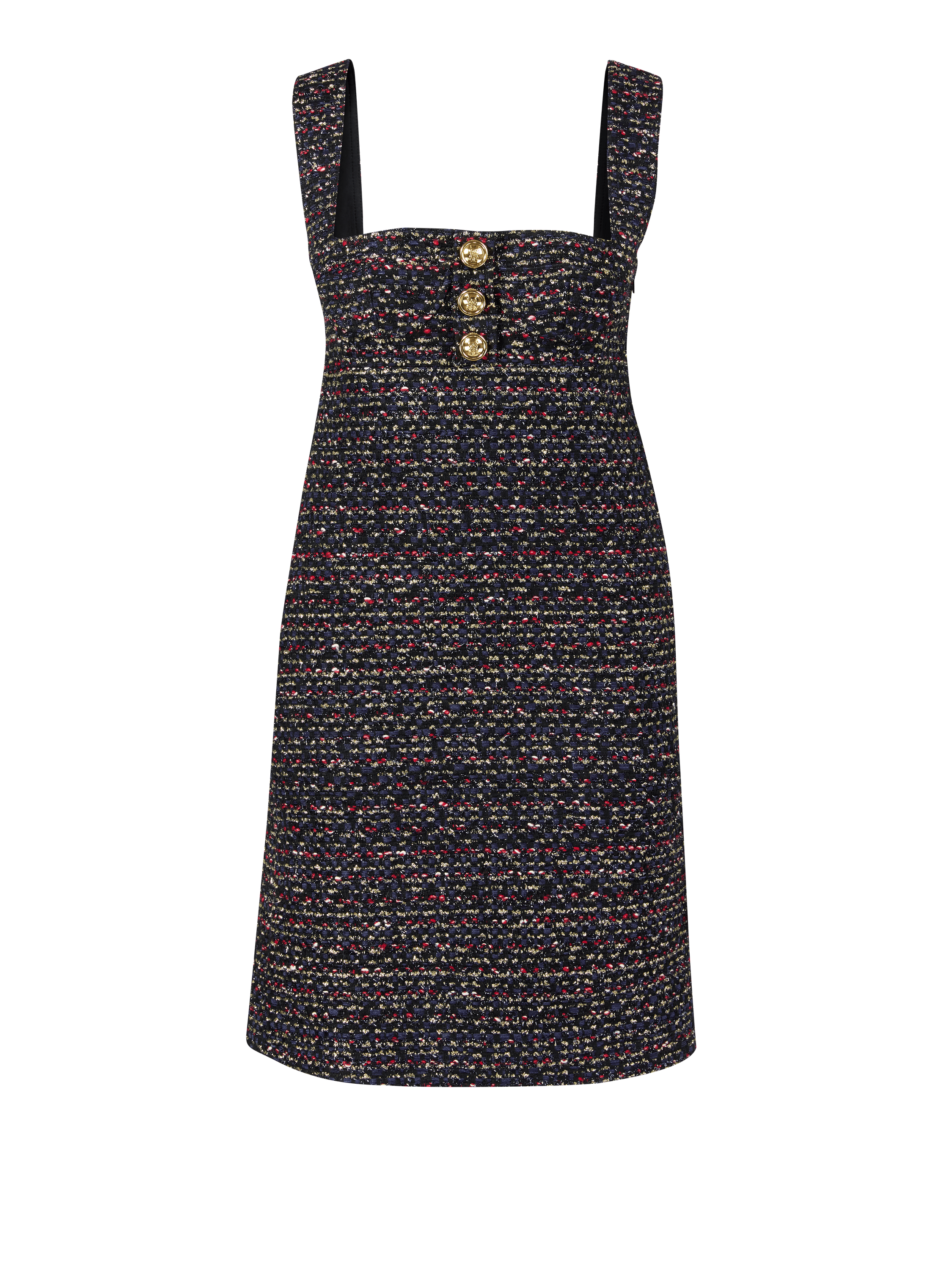 Dieses Kleid in Schwarz von GiAMBATTiSTA VALLi wurde aus einem hochwertigen Materialgemisch gefertigt und besticht durch das klassische Design. Das edle Modell wird durch die körpernahe Passform und den femininen Schnitt perfektioniert. Die glitzernde Optik und die goldfarenen Knöpfe vollenden dieses luxuriöse Design.