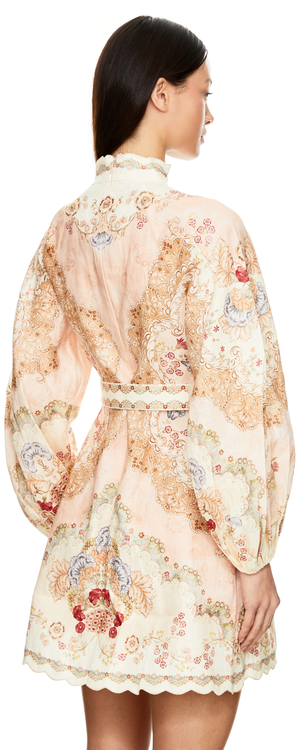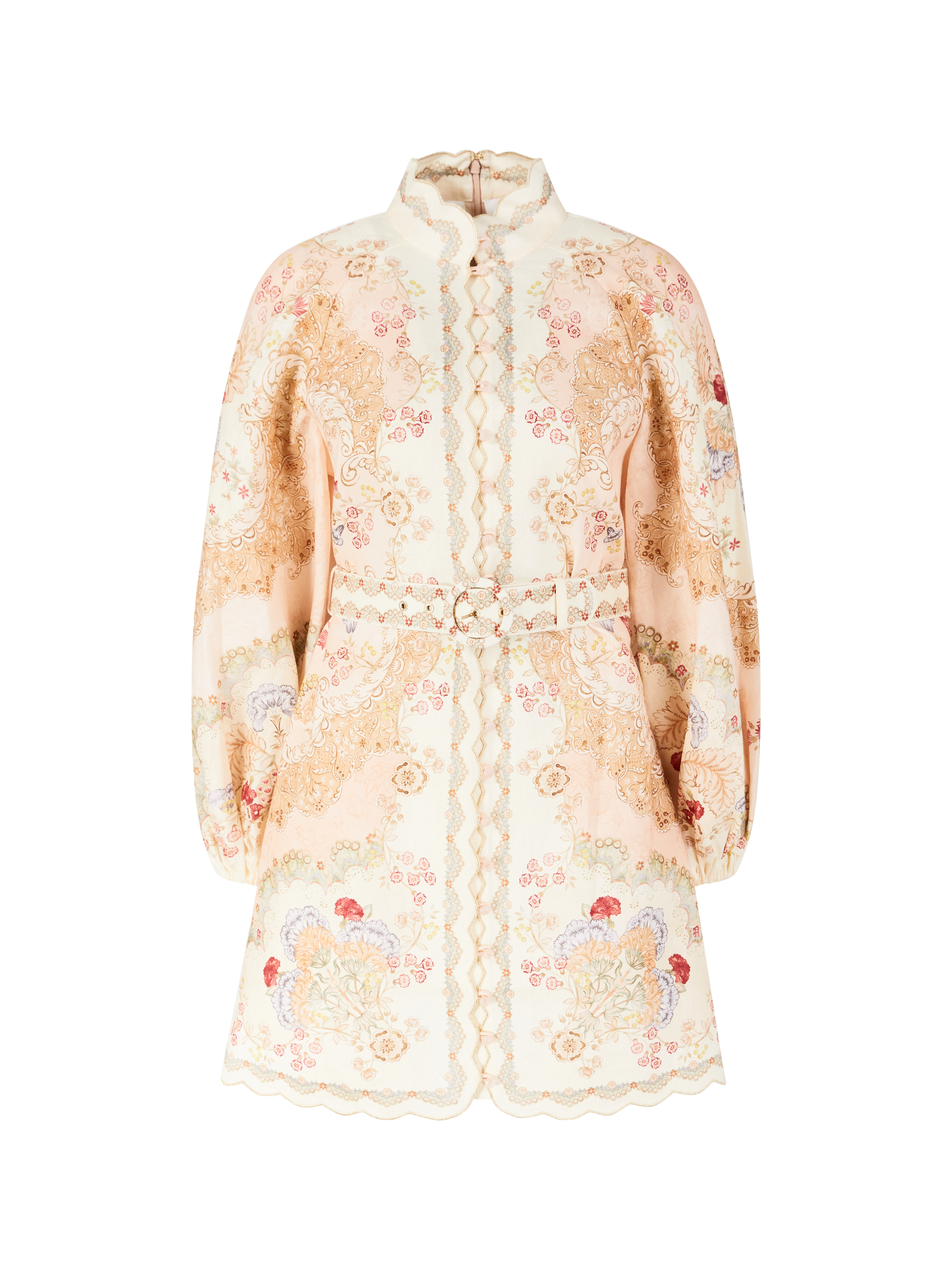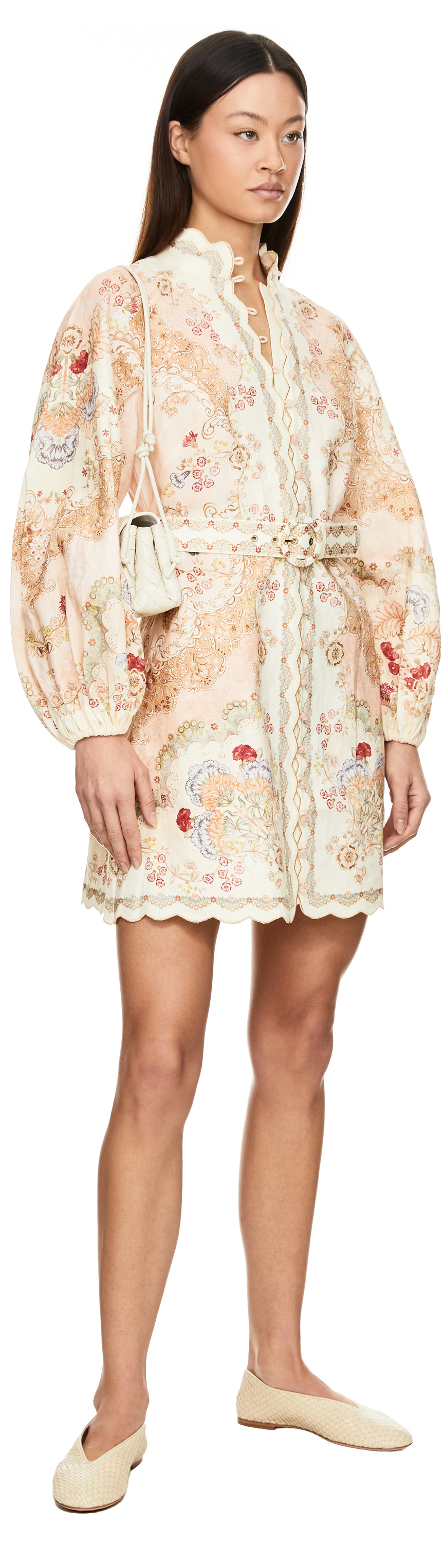 Das Kleid 'Daylight' in Multi von Zimmermann wurde aus reinem Leinen gefertigt und besticht durch die charakteristische florale Musterung. Der Muschelsaum und die Ballonärmel verleihen dem Design eine feminine Note, während der abnehmbare Gürtel sowie die verspielte Knopfleiste raffinierte Akzente setzten und das Modell zu einem echten Hingucker machen.