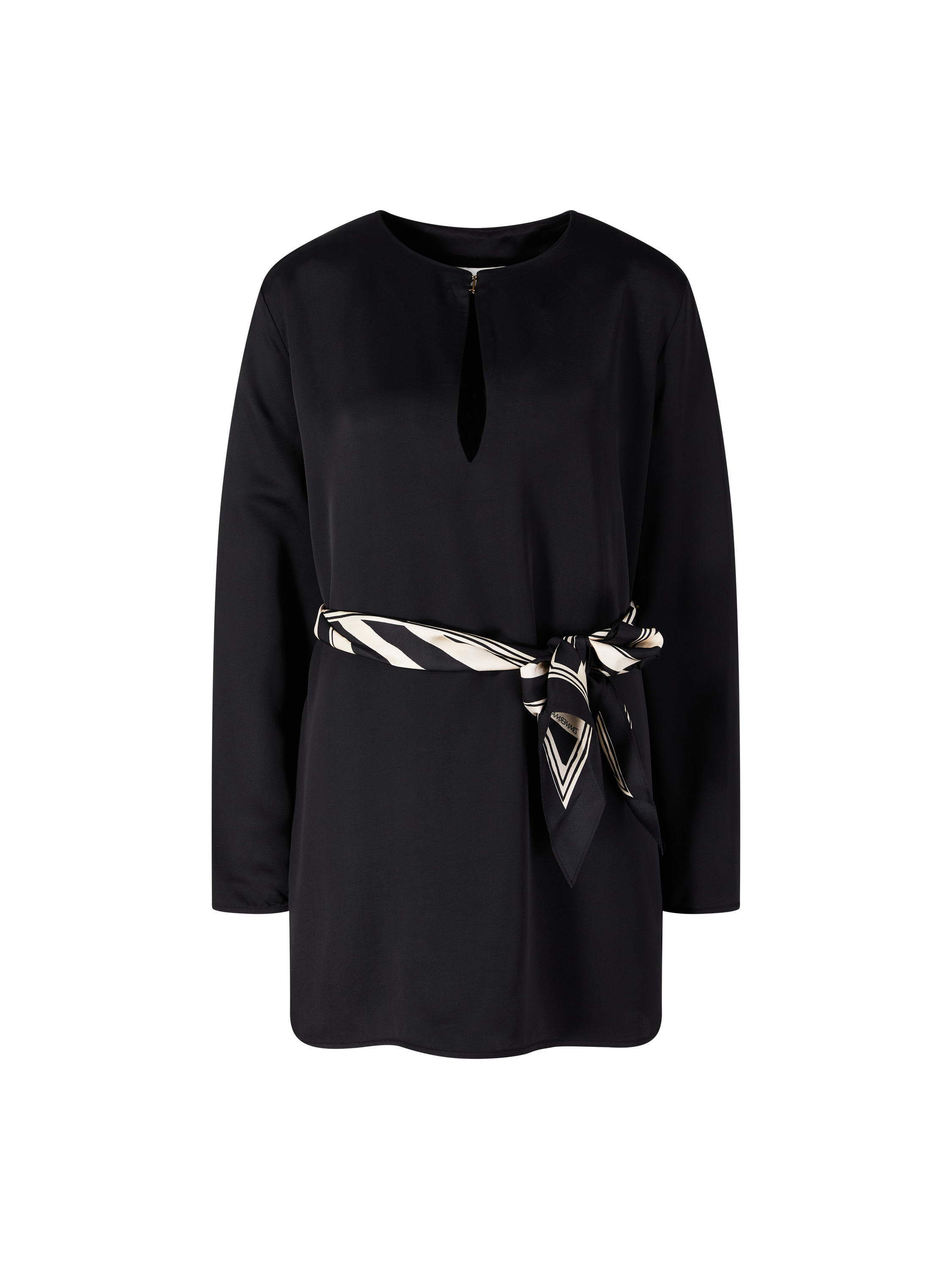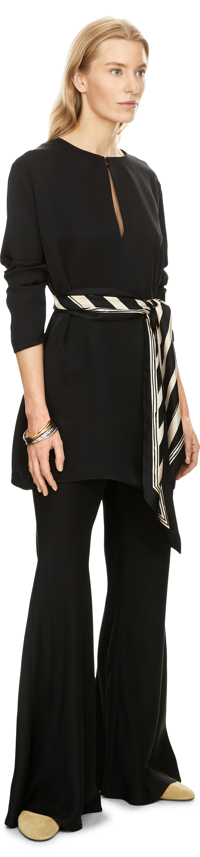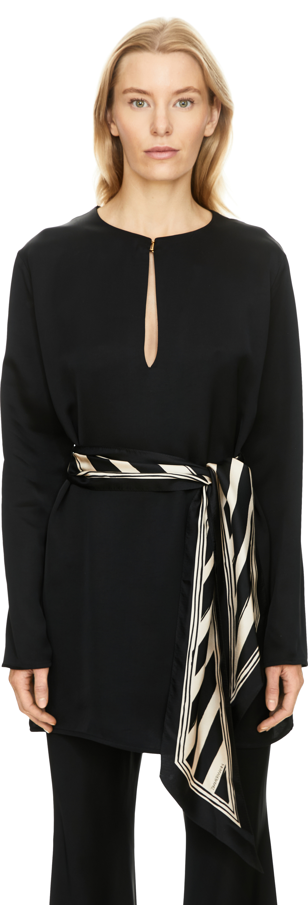 Die Tunika 'Rebellion' in Schwarz von Zimmermann wurde aus Viskose gefertigt und besticht durch die taillierte Silhouette. Die langen Ärmel, die Schlüssellochblende mit Haken- und Ösenverschluss sowie der abnehmbare Seidenschalgürtel setzen stilvolle Akzente.