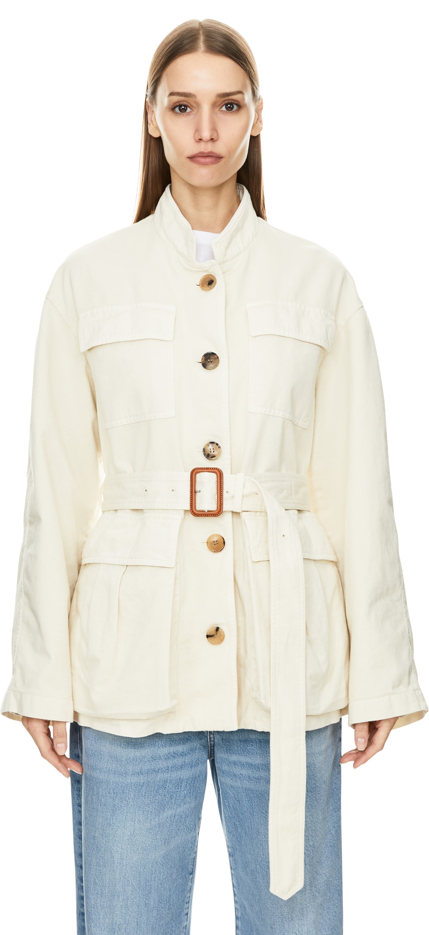 Der Parka 'Ventura' in Crème von Dries van Noten wurde aus Baumwolle gefertigt und besticht durch die gerade Silhouette. Die durchgehende Knopfleiste, die zwei aufgesetzten Taschen, die Brusttaschen sowie der Taillengürtel zeichnen dieses hochwertige Design aus.