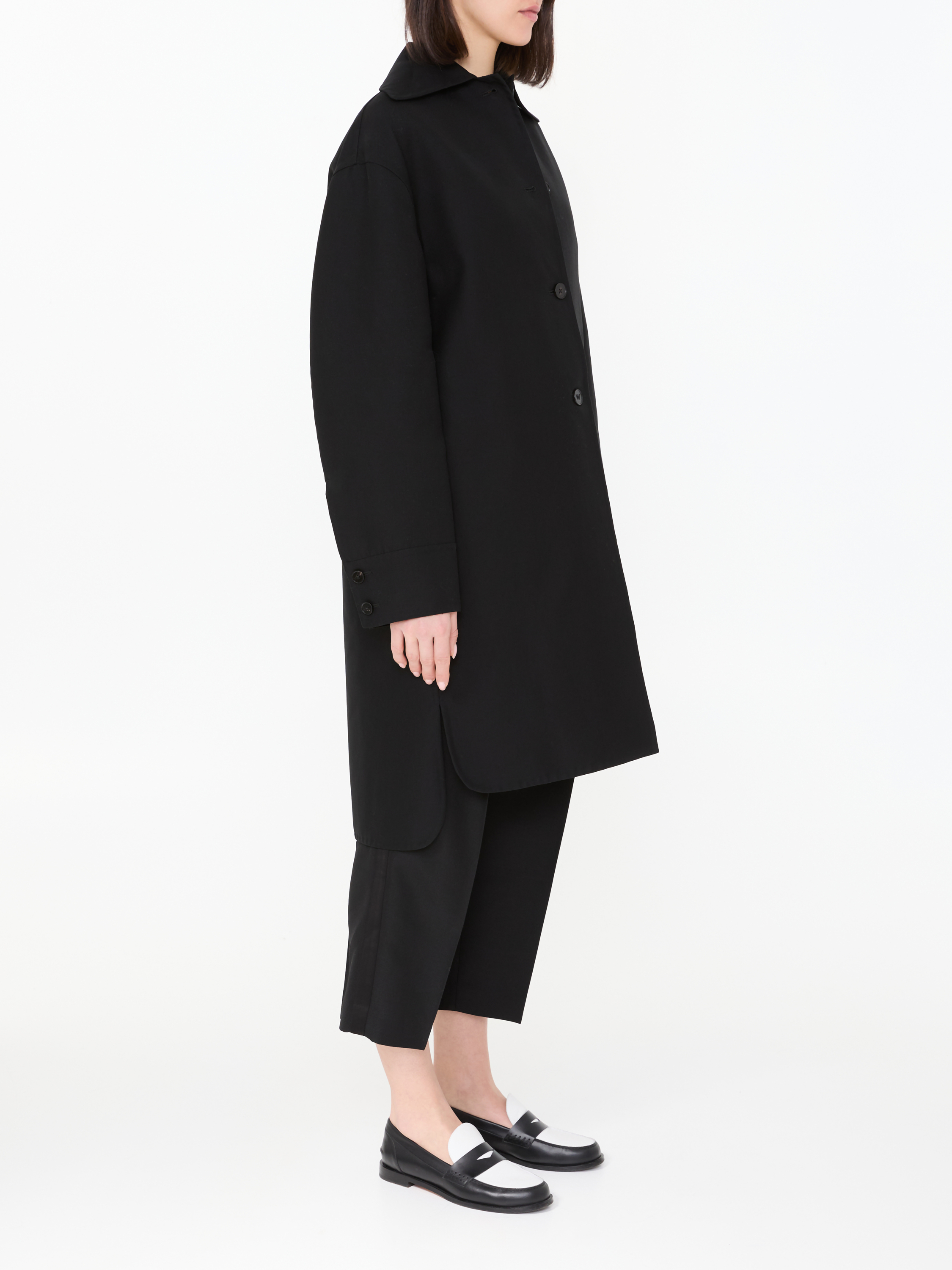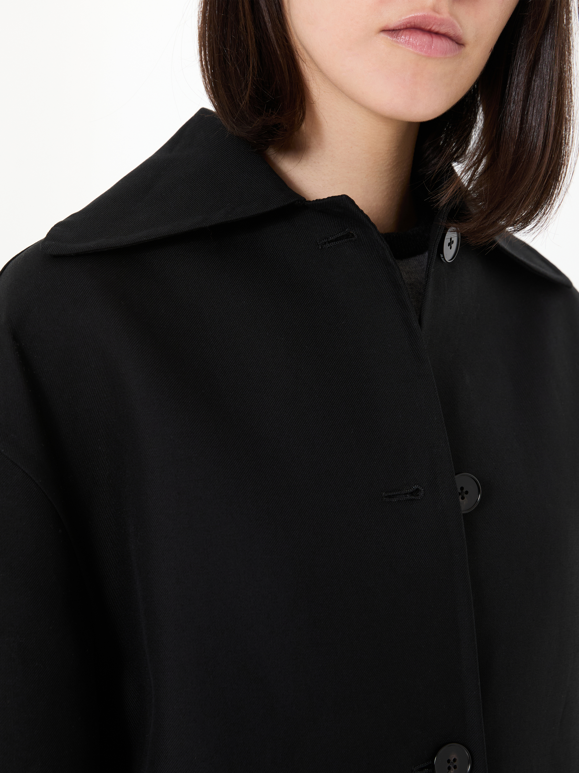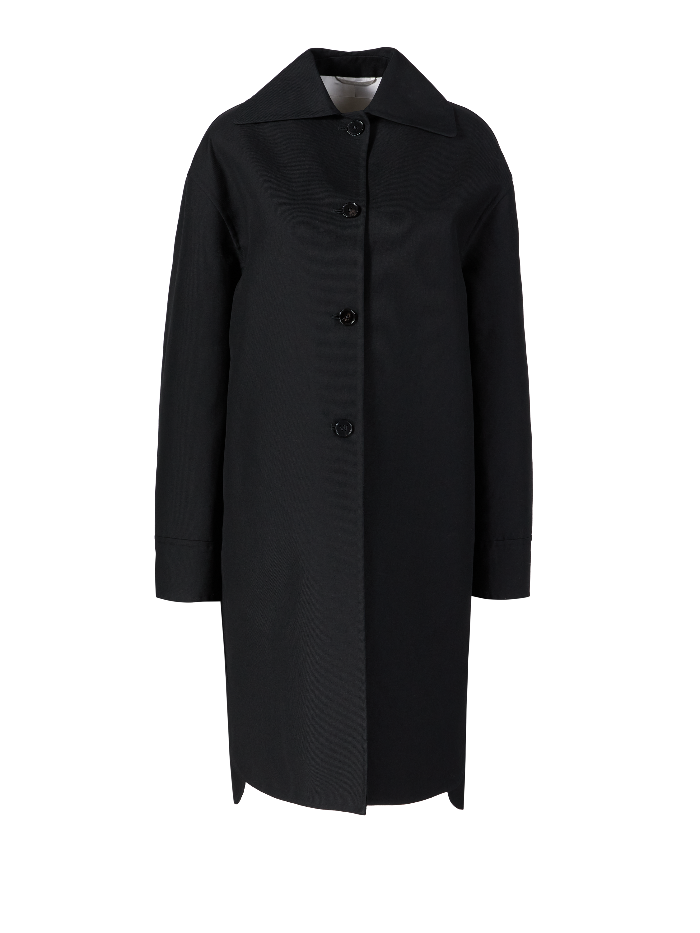 Dieser Mantel in Schwarz von JIL SANDER wurde aus hochwertiger Baumwolle gefertigt und besticht durch das klassische Design. Der abgerundete Saum und die Manschetten vollenden dieses hochwertige Design.