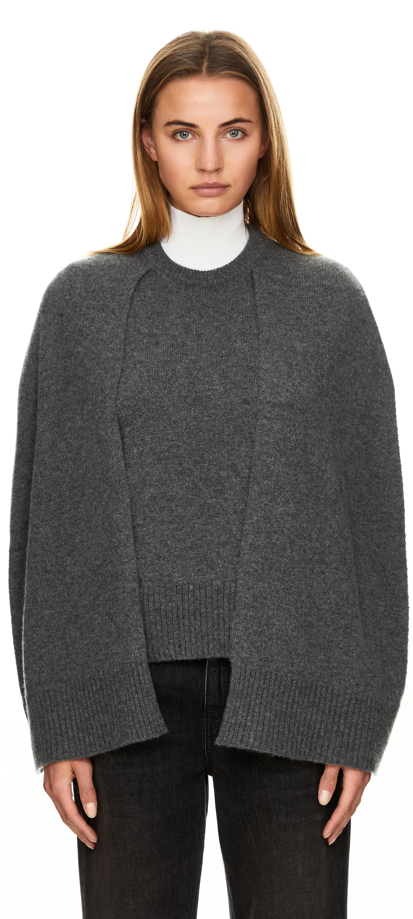 Dieses Cape in Grau von TOTEME wurde aus reinem Cashmere gefertigt und besticht durch die lässige Silhouette. Der Rundhalsausschnitt, der unter einem längeren Cape getragen wird, und die Rippstrickbündchen vollenden das hochwertige Design.