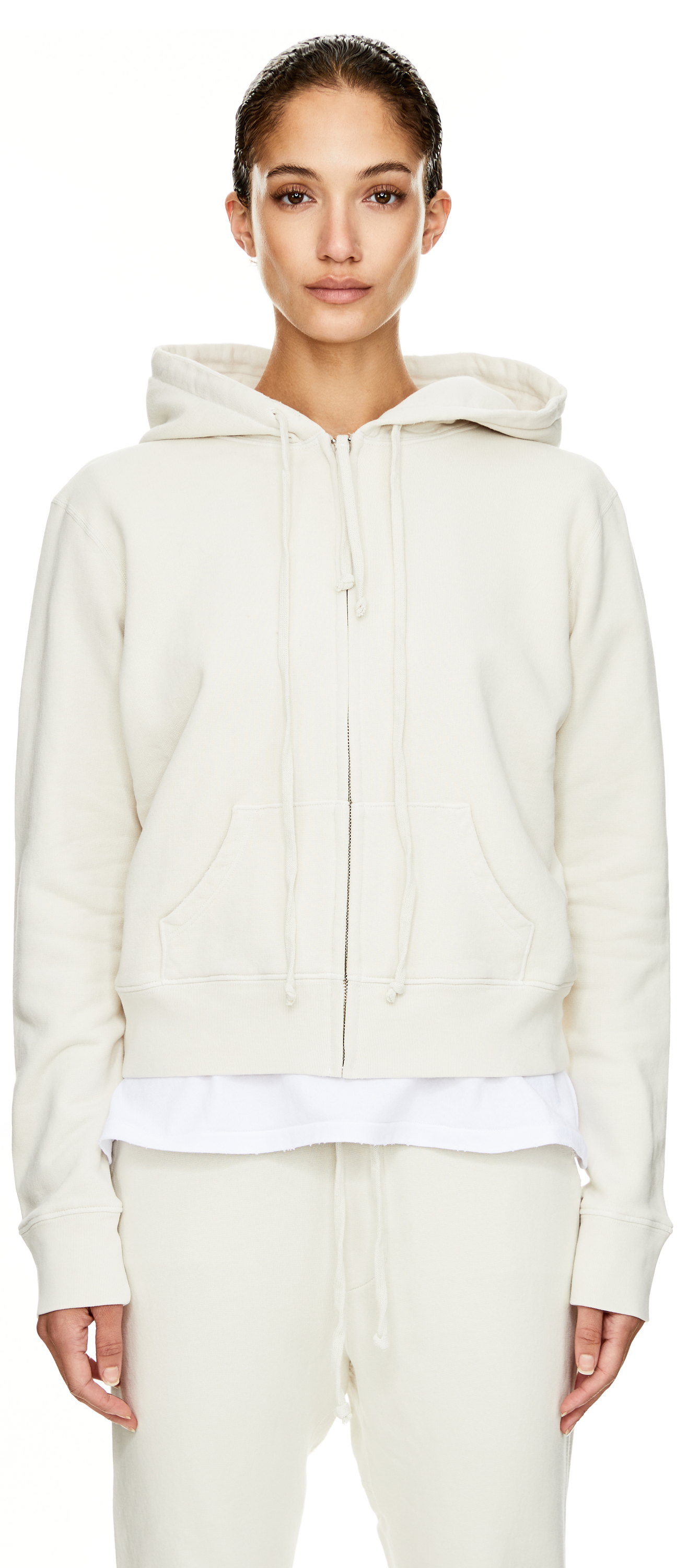 Die Sweatjacke 'Callie' in Crème von NILI LOTAN wurde aus hochwertiger Baumwolle gefertigt und besticht durch den leichten Used-Look. Die Kapuze mit langem Kordelzug und der durchgehende Reißverschluss verleihen dem Modell eine lässige, sportive Note. Praktische Kängurutaschen und elastische Rippbündchen sorgen für Komfort und runden das Design harmonisch ab.