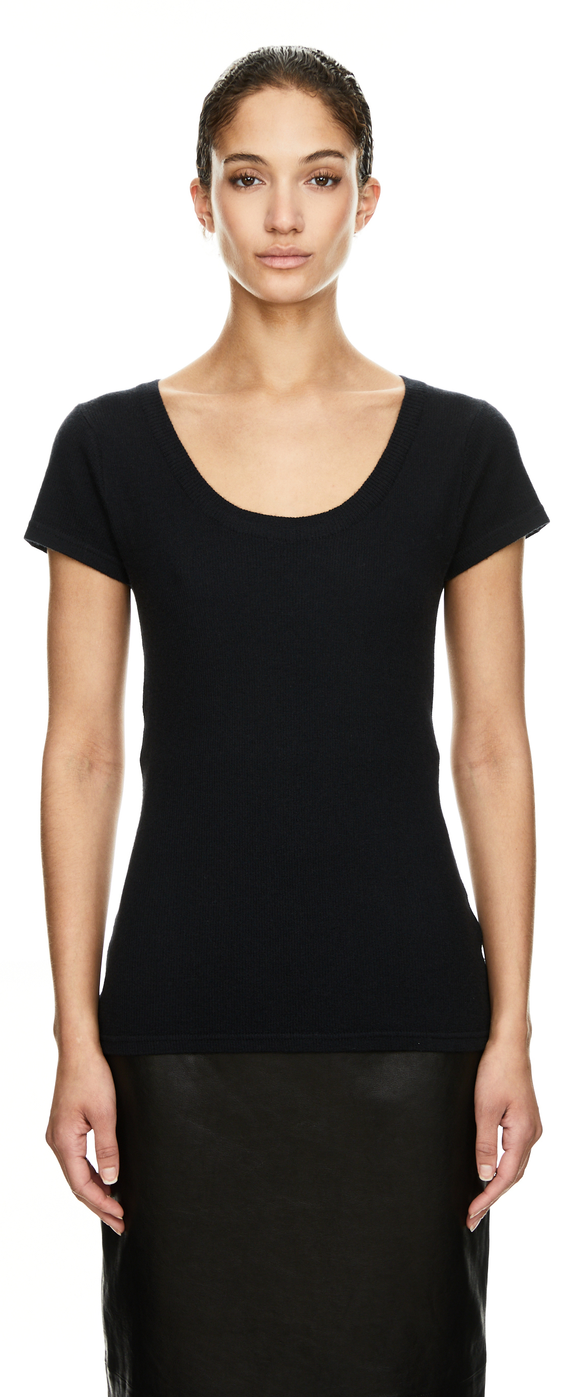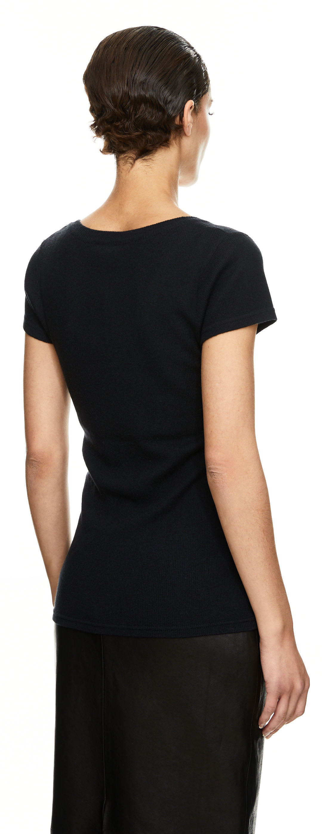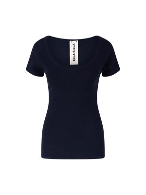Dieses T-Shirt in Schwarz von Ella Silla wurde aus hochwertigem Cashmere gefertigt und besticht durch den weichen Feinstrick. Die gerade Silhouette und der klassische Rundhalsausschnitt verleihen dem Modell eine elegante Schlichtheit. Die Rippstrickbündchen setzen dabei kontrastierende Akzente und runden den Look harmonisch ab.
