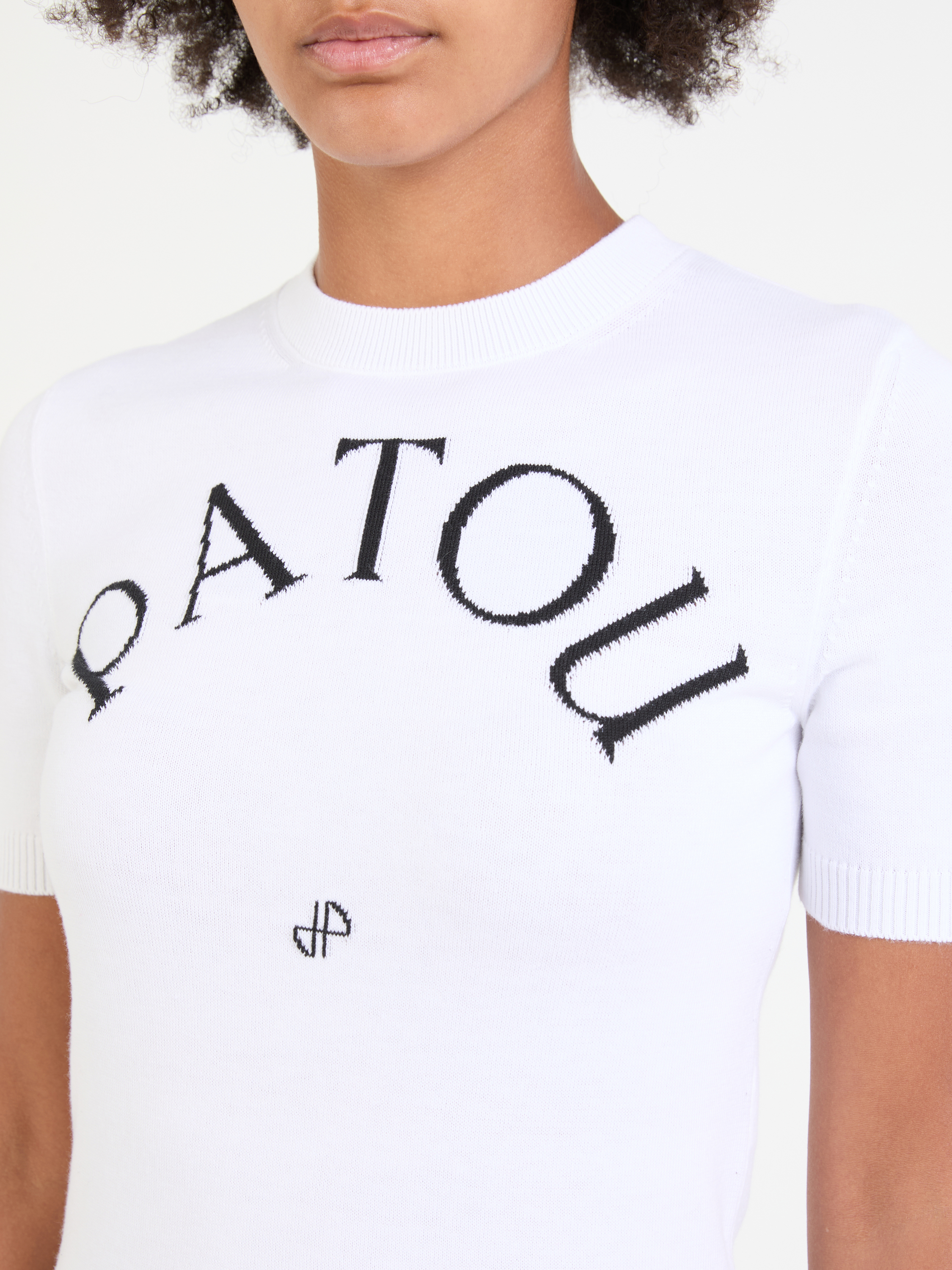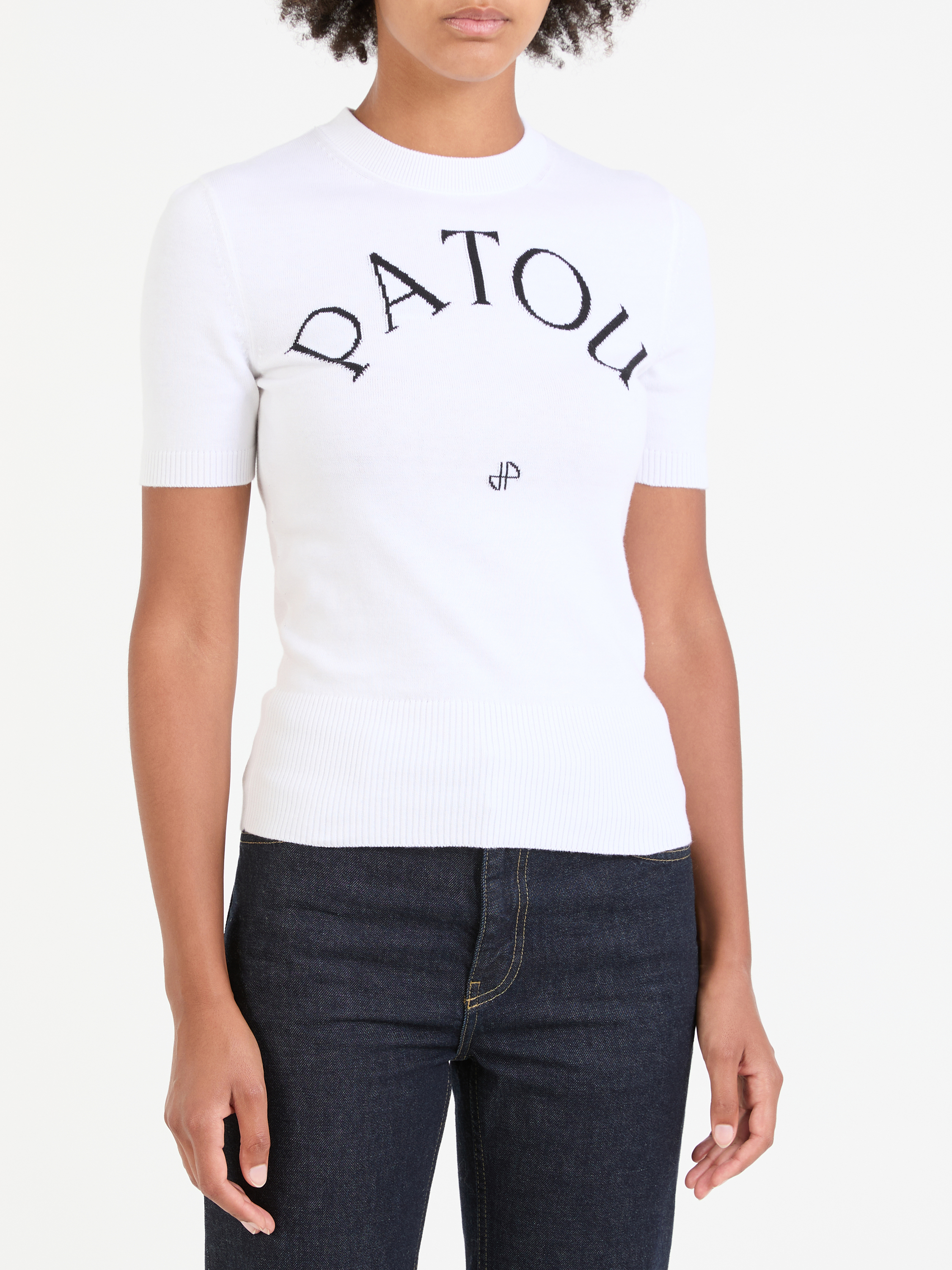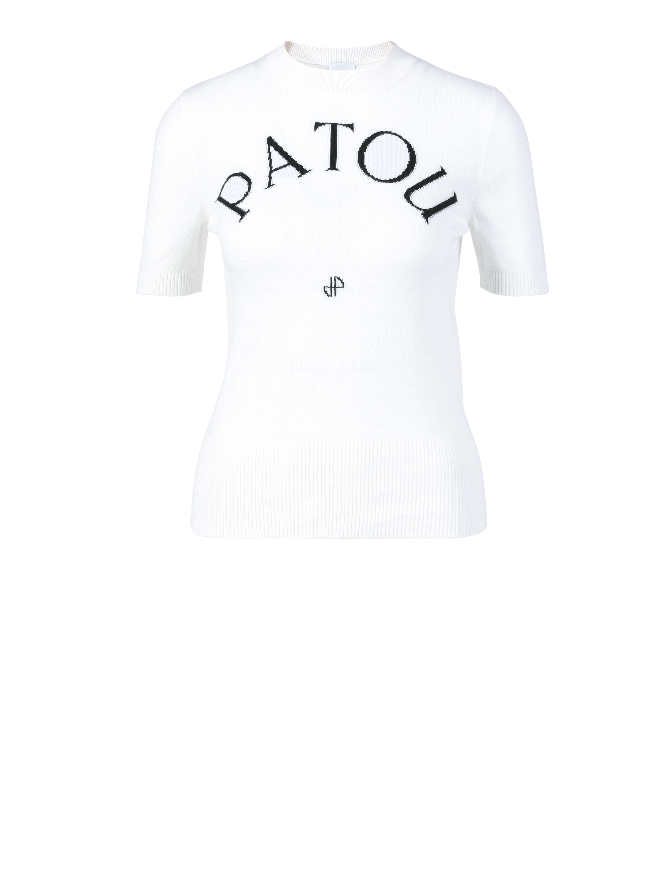 Dieses T-Shirt in Weiß von PATOU wurde aus einer Baumwoll-Mischung gefertigt und besticht durch das Logo. Die gerade Passform, der Rundhalsausschnitt und die kurzen Ärmel zeichnen dieses moderne Design aus.