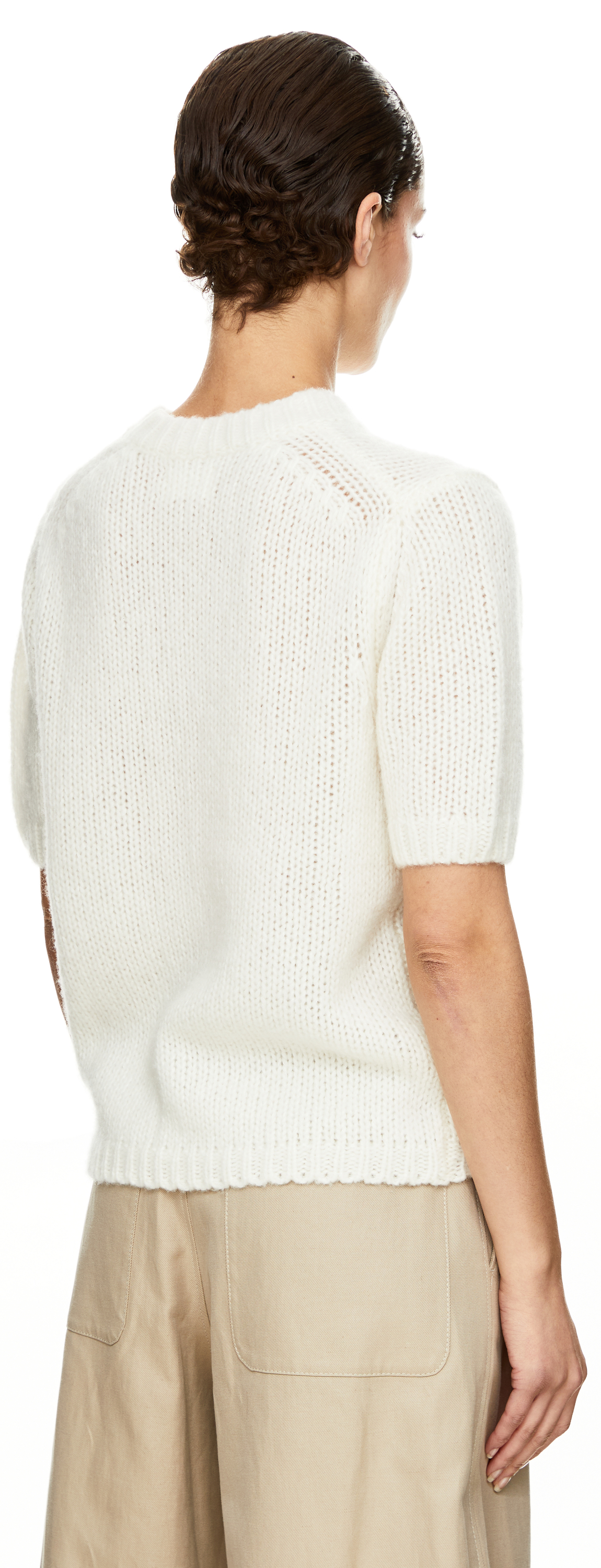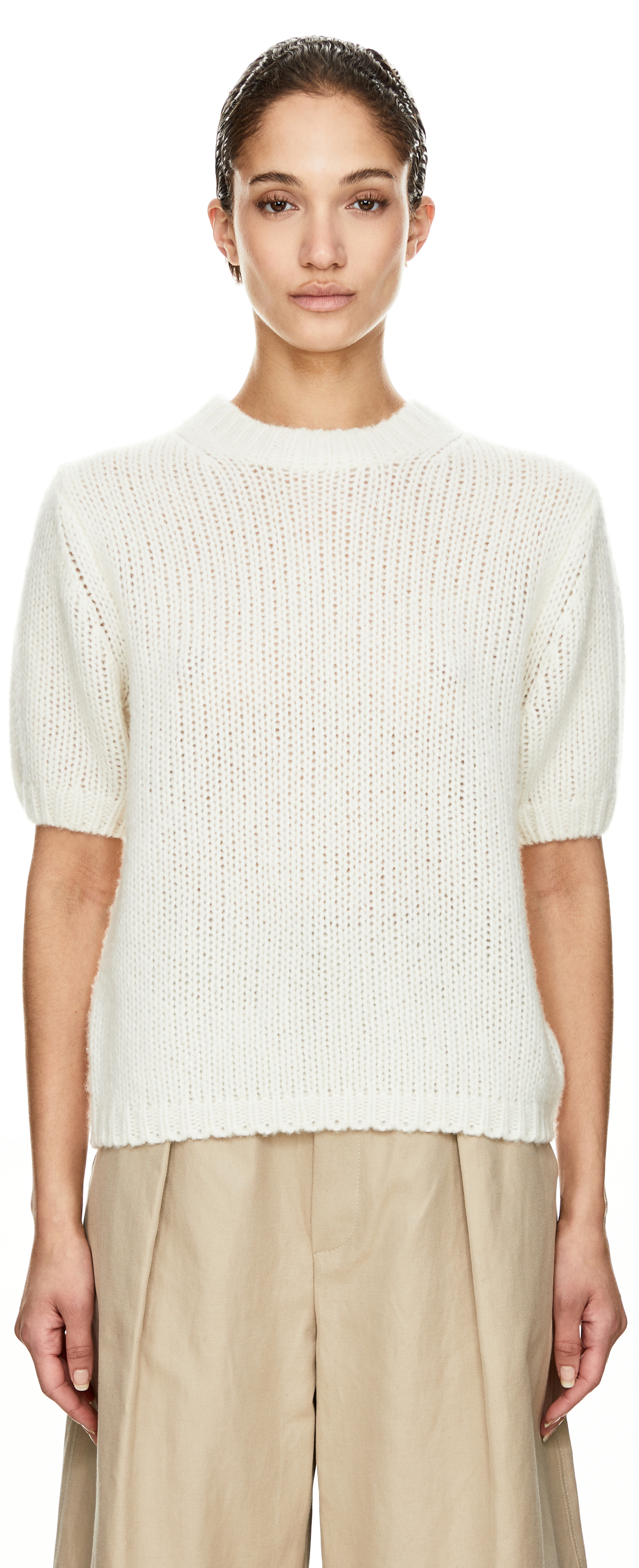 Dieser Pullover in Cloud Light von UNGER Collection wurde aus einer hochwertigen Cashmere-Seidenmischung gefertigt und besticht durch die besonders weiche Haptik. Die kurzen Puffärmel, der Rundhalsausschnitt und das wärmende Material verleihen diesem modischen Modell eine elegante Note.