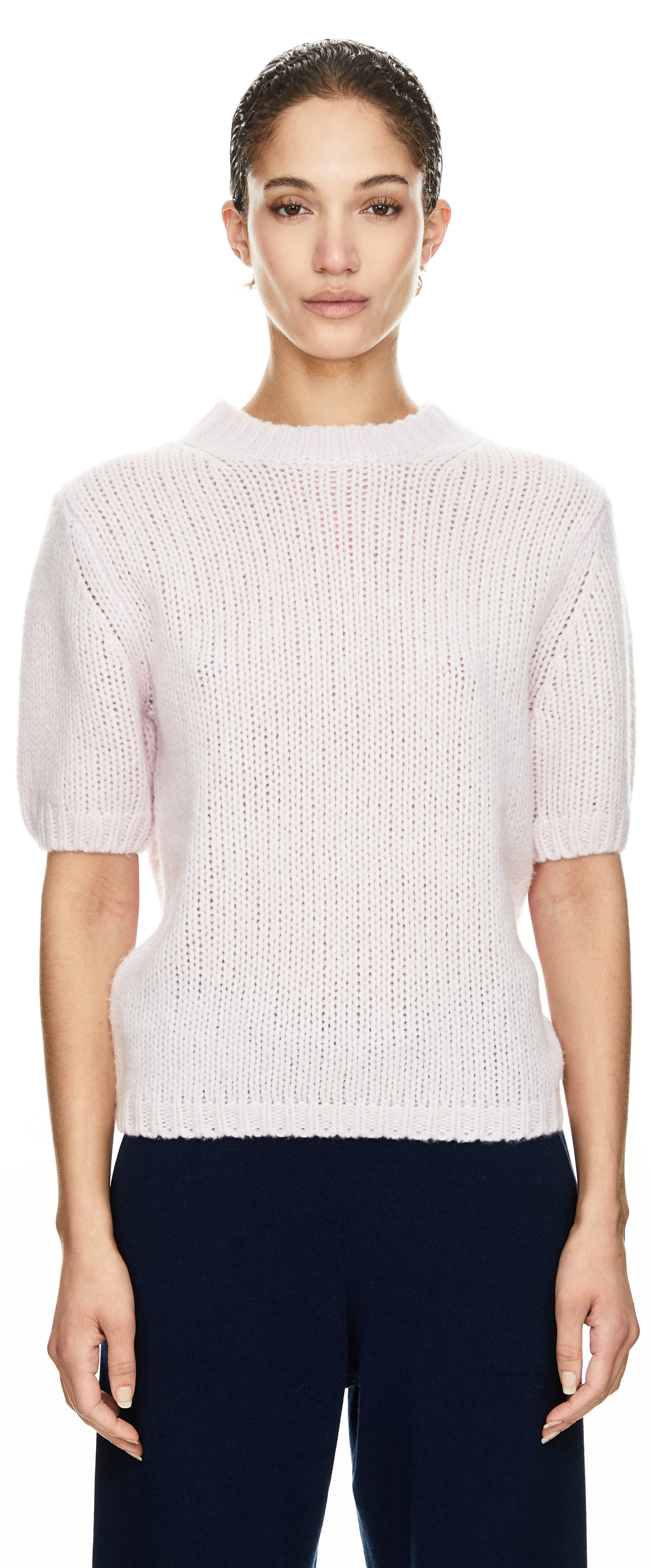Dieser Pullover in Cottoncandy von UNGER Collection wurde aus einer hochwertigen Cashmere-Seidenmischung gefertigt und besticht durch die besonders weiche Haptik. Die kurzen Puffärmel, der Rundhalsausschnitt und das wärmende Material verleihen diesem modischen Modell eine elegante Note.