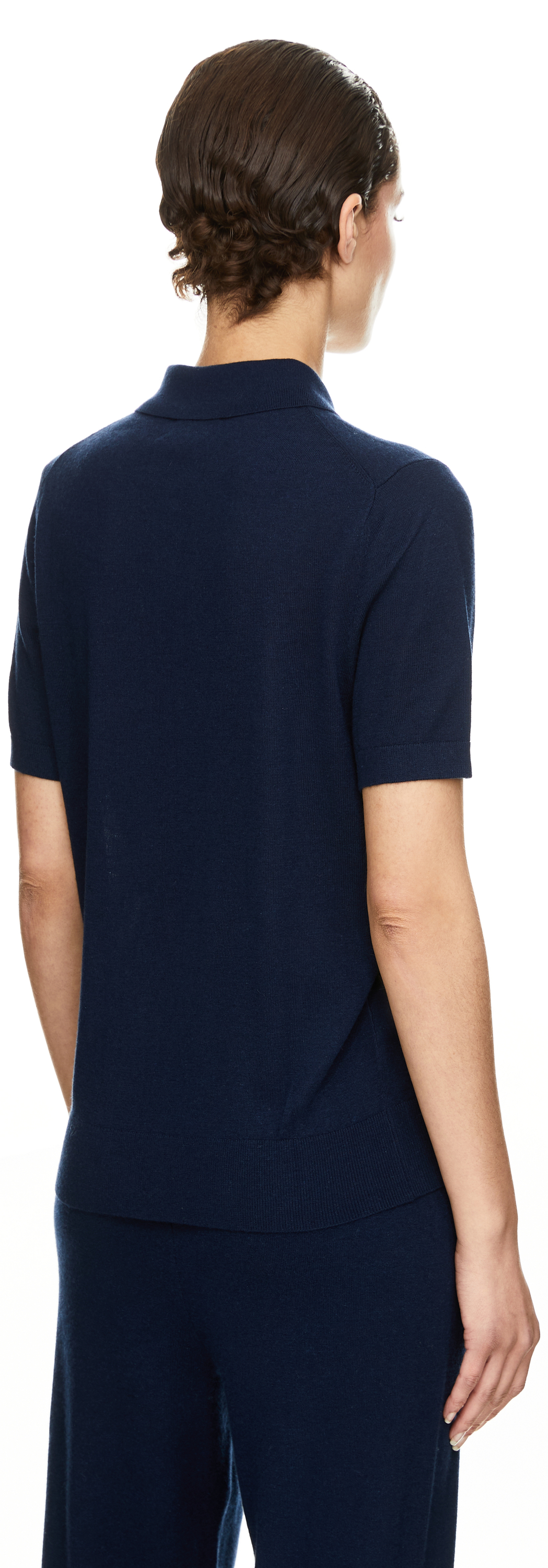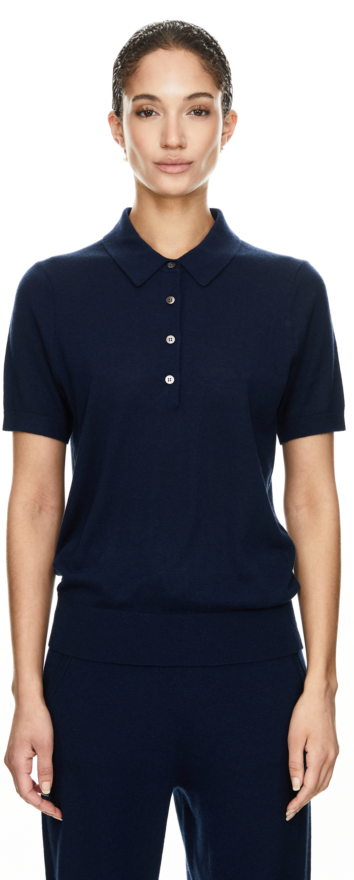 Dieser kurzärmelige Polopullover in Midnight von UNGER Collection wurde aus einer edlen Seiden-Cashmere-Mischung gefertigt und besticht durch den klassischen Polokragen. Die fein gearbeitete Knopfleiste mit echten Perlmuttknöpfen und die besonders feine Haptik verleihen dem Design eine edle Note.