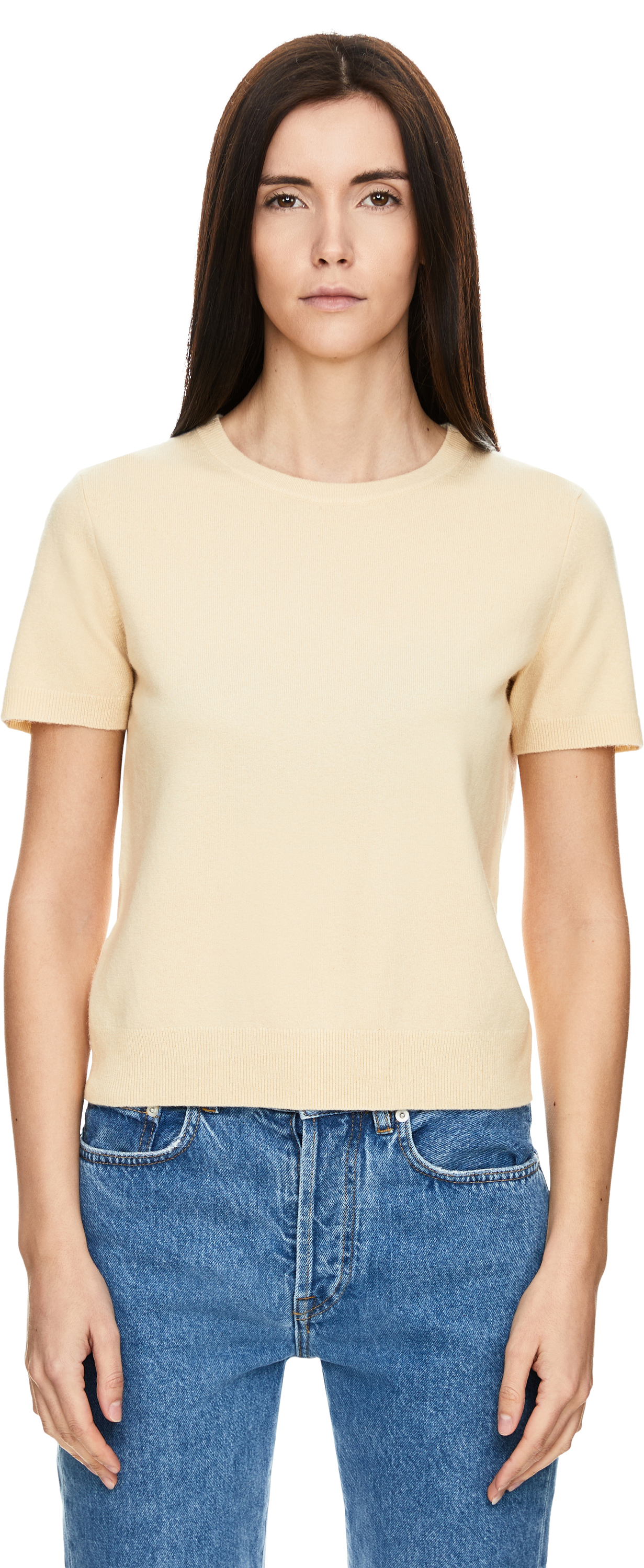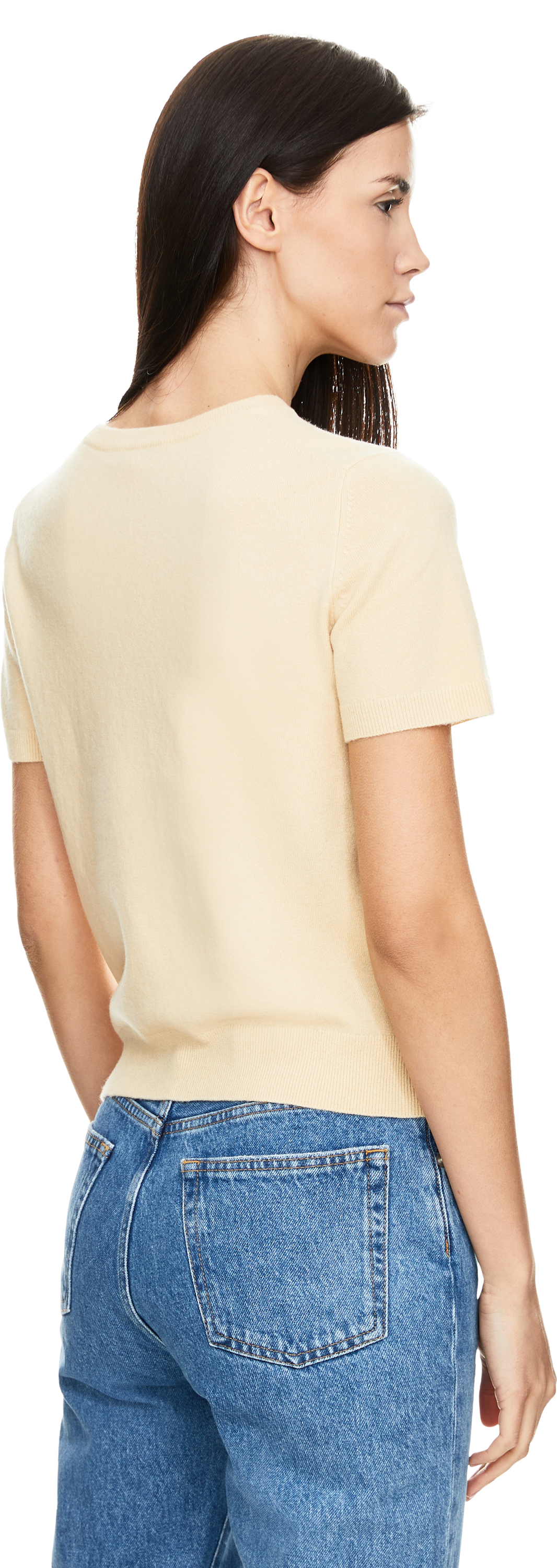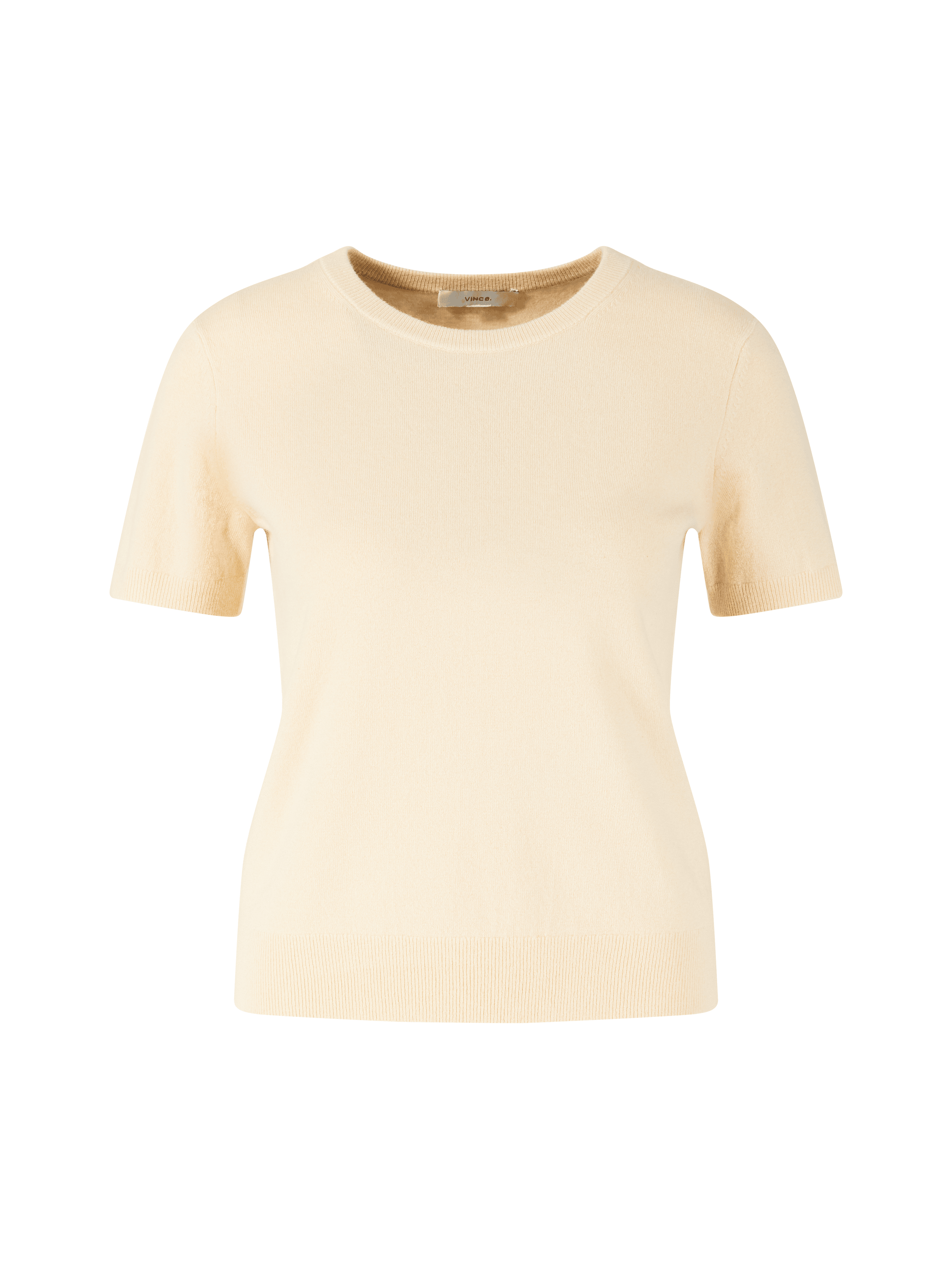 Kurzärmeliger Woll-Cashmere-Pullover Crème