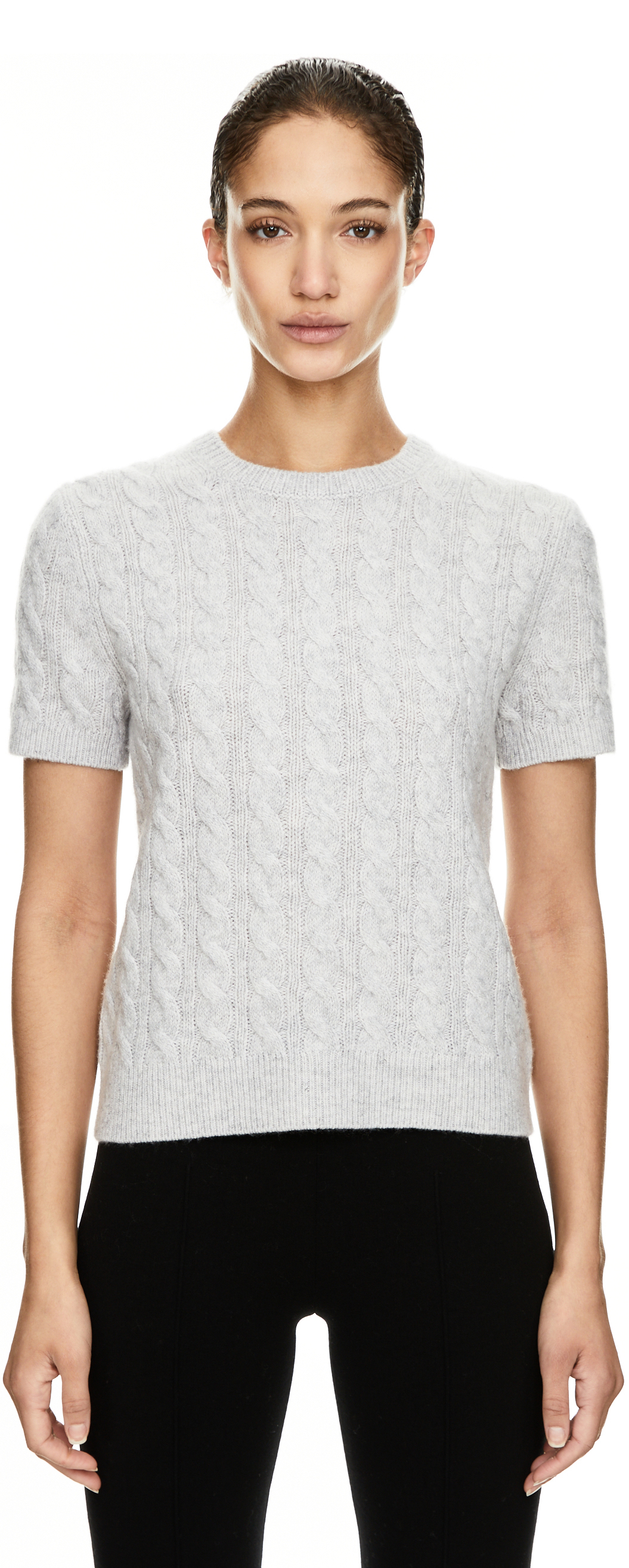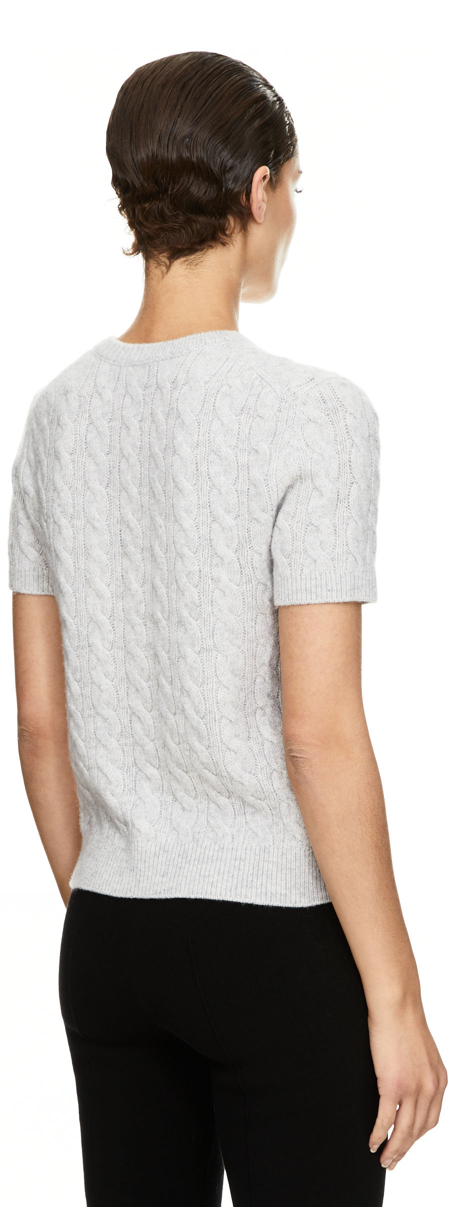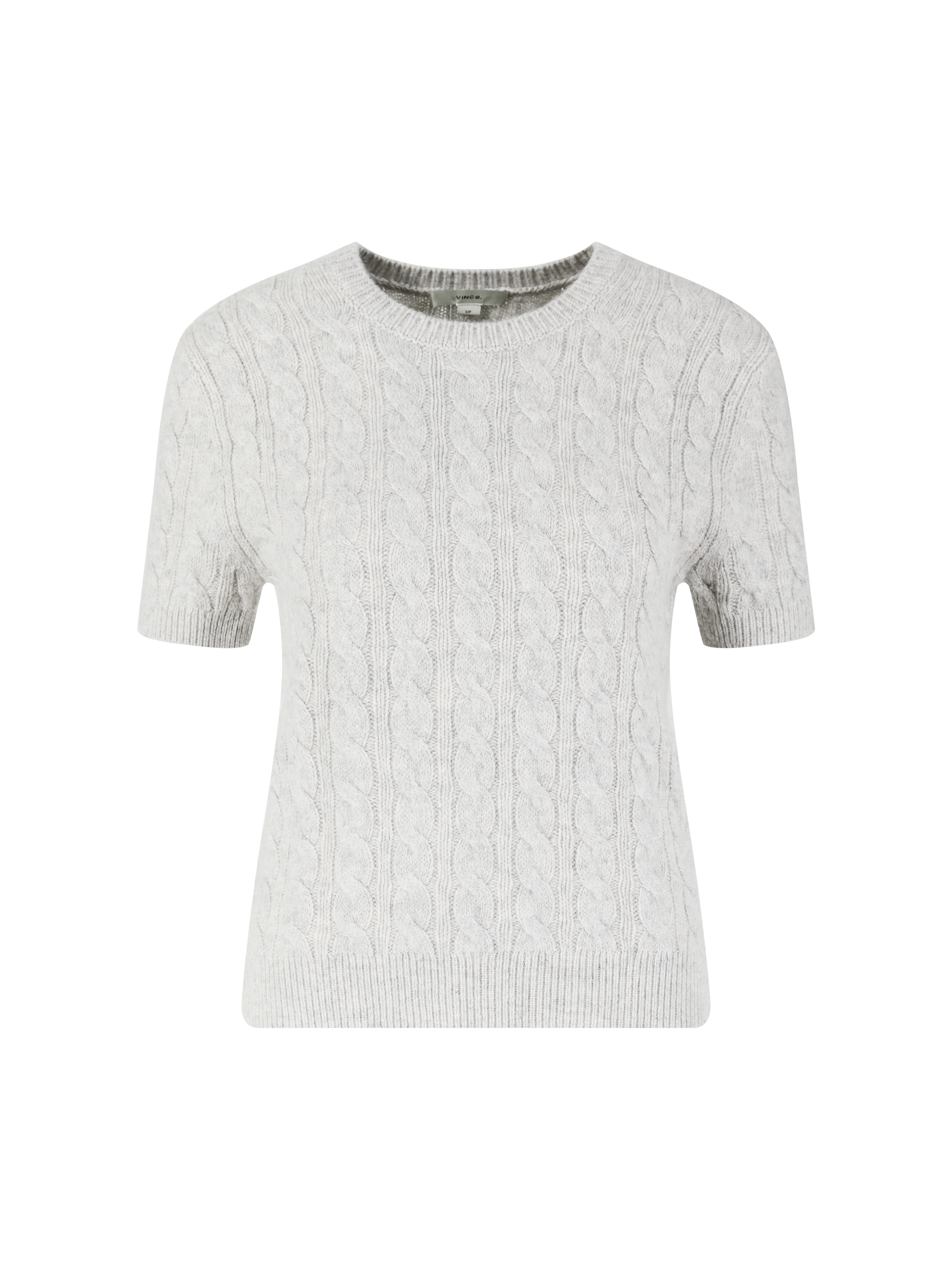Kurzärmeliger Woll-Cashmere-Pullover Hellgrau