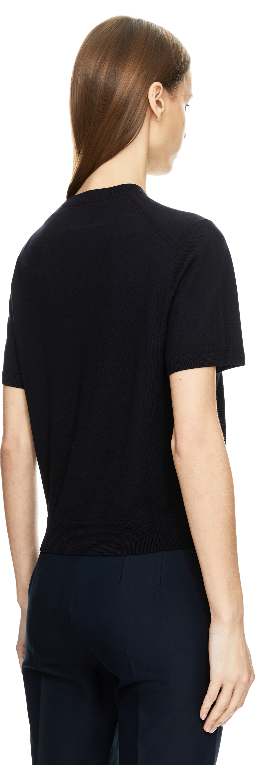 Dieser Pullover in Marineblau von Allude wurde aus hochwertiger Schurwolle gefertigt und besticht durch das zeitlose Design. Der Rundhalsausschnitt, die kurzen Ärmel und der Rippstrick am Saum vollenden diesen Klassiker.