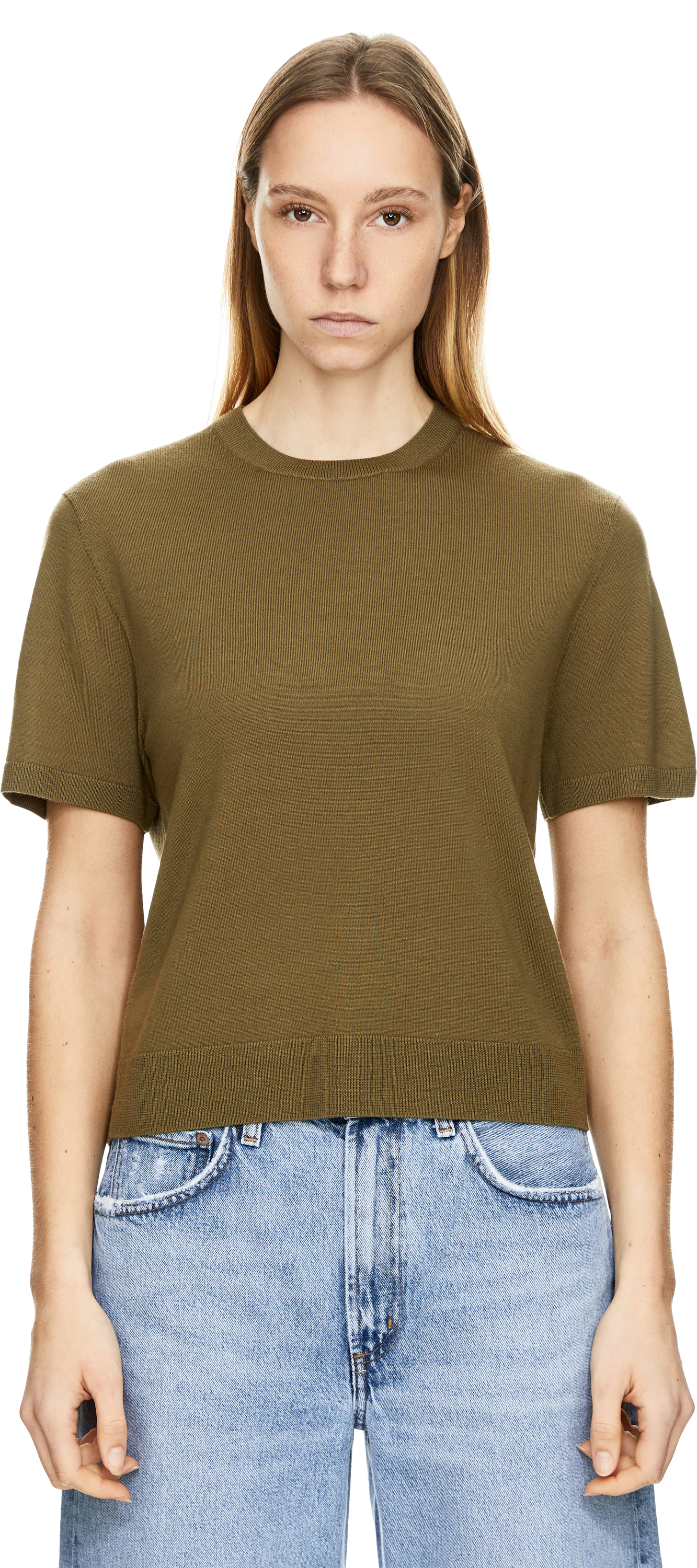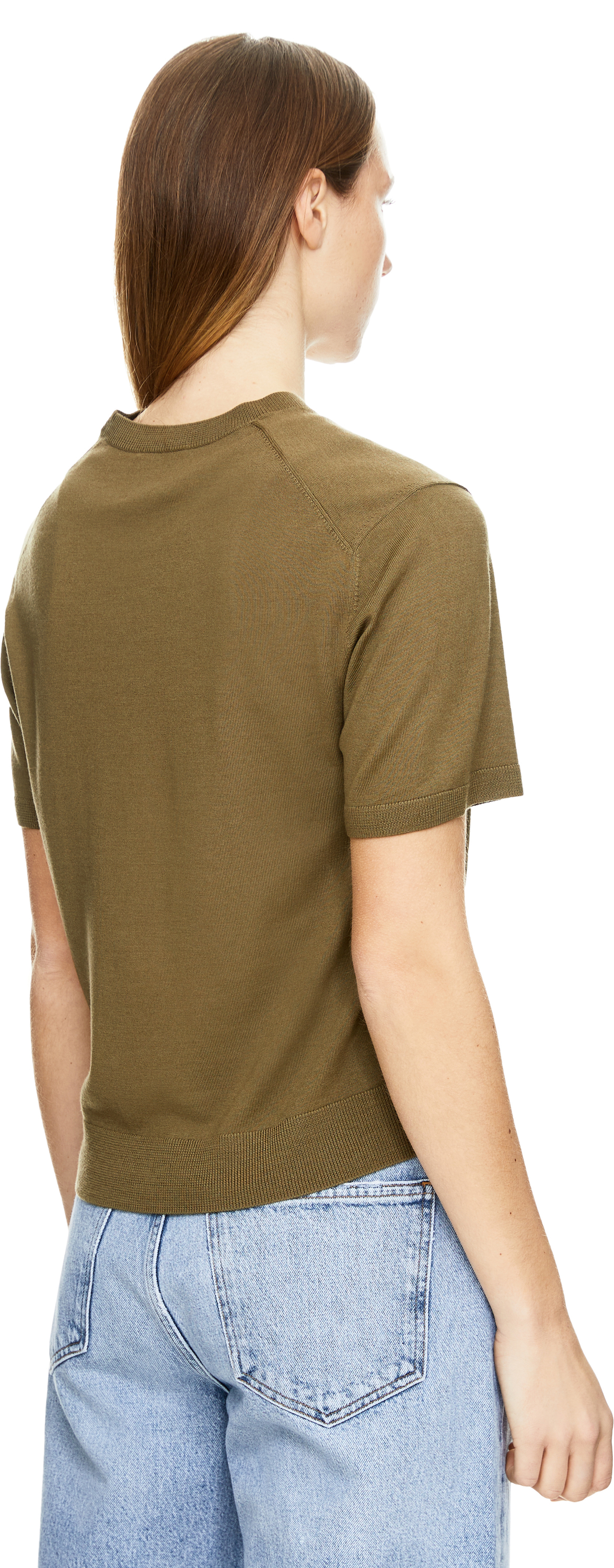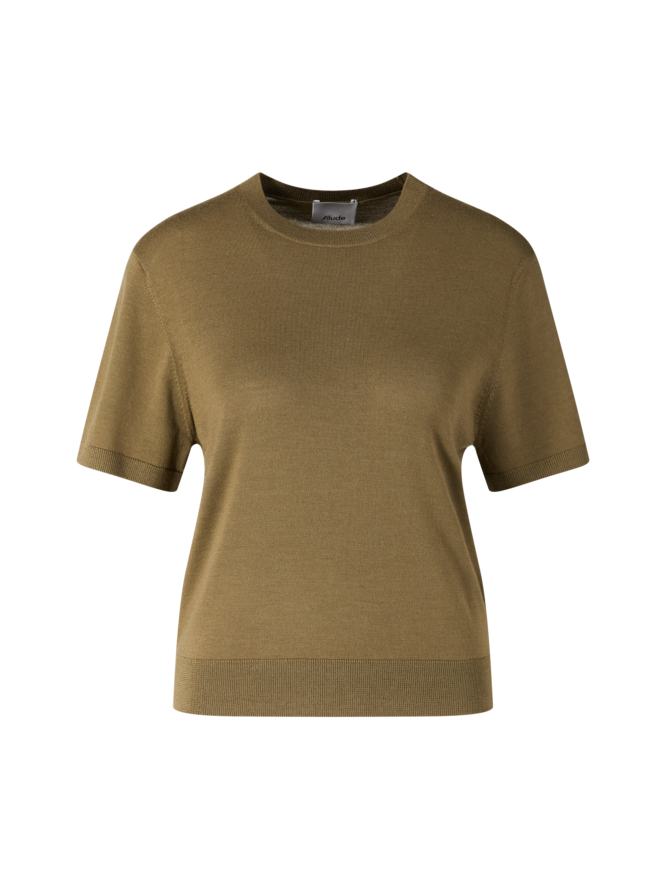 Dieser Pullover in Olivgrün von Allude wurde aus hochwertiger Schurwolle gefertigt und besticht durch das zeitlose Design. Der Rundhalsausschnitt, die kurzen Ärmel und der Rippstrick am Saum vollenden diesen Klassiker.