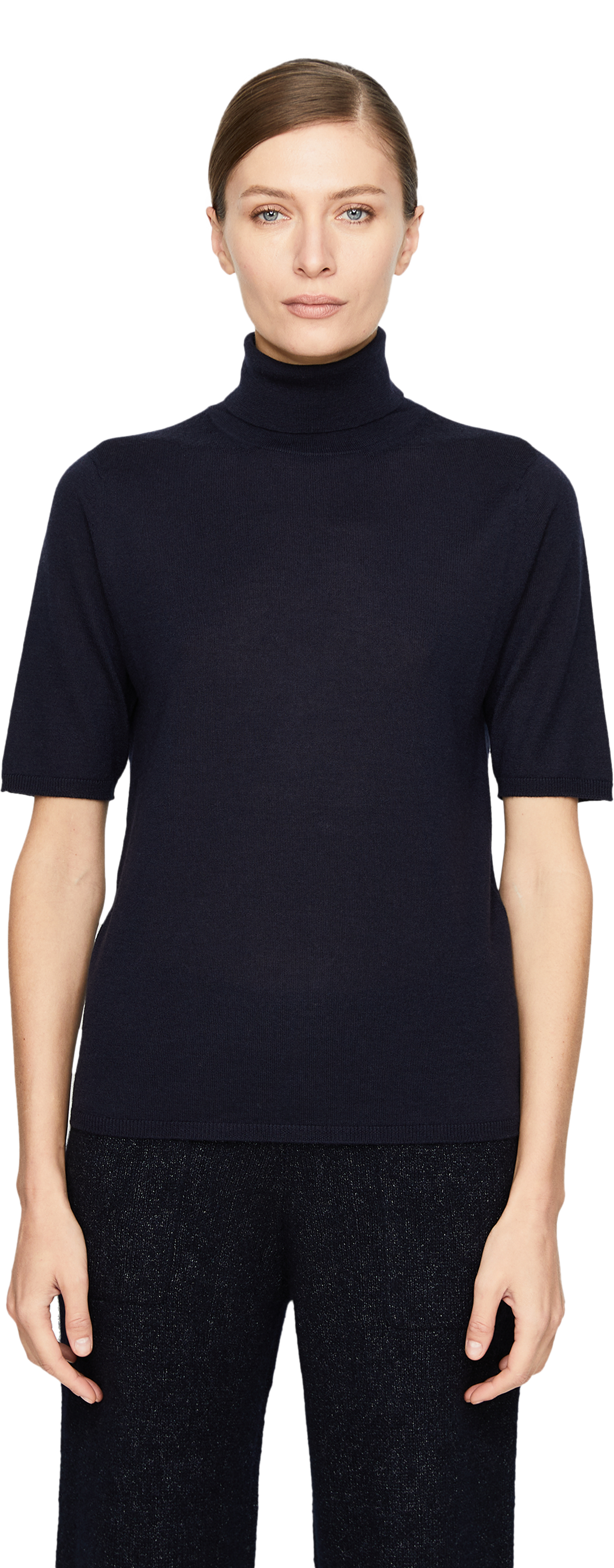 Der Pullover 'Rockdale' in Navy von Iris von Arnim wurde aus einer hochwertigen Cashmere-Seidenmischung gefertigt und besticht durch seine weiche Haptik. Die kurzen Ärmel, der Rollkragen und das wärmende Material perfektionieren dieses modische Modell.