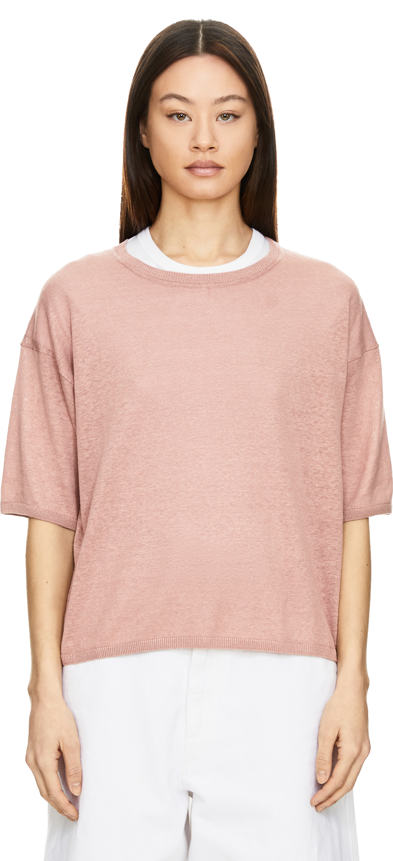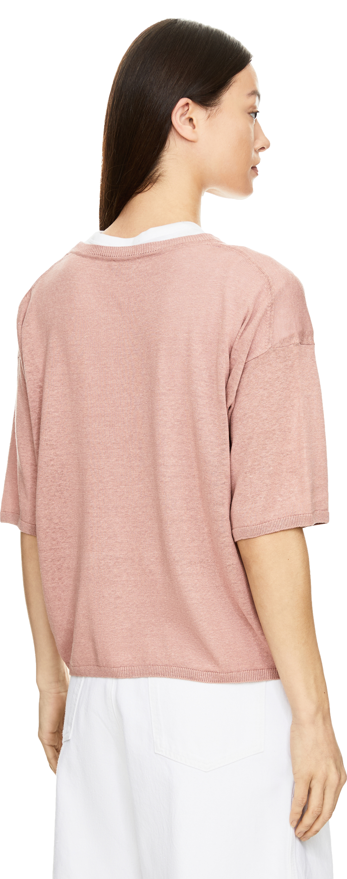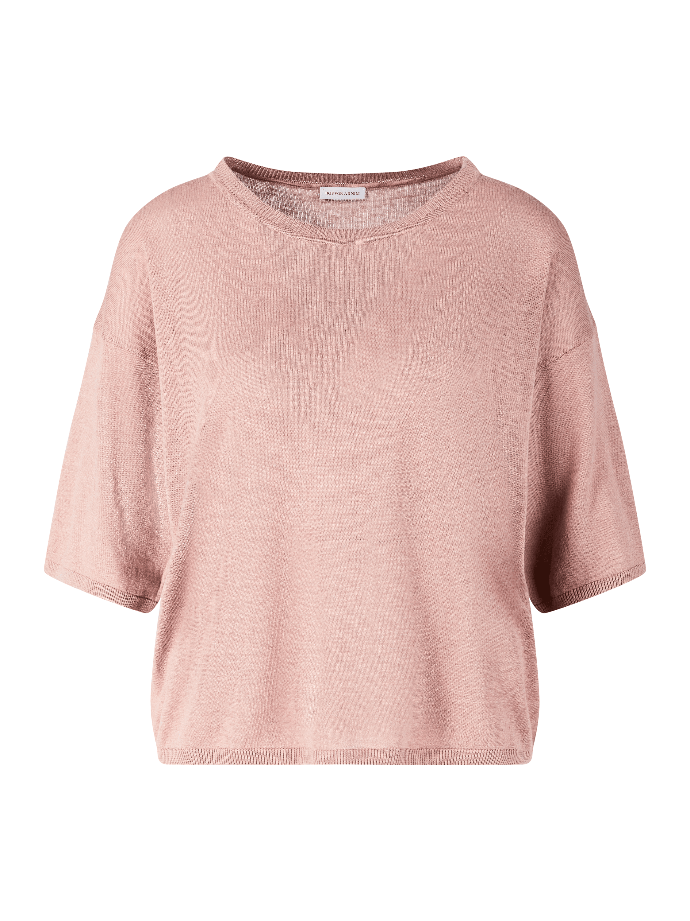 Der Pullover 'Emina' in Rosenholz von Iris von Arnim wurde aus einer hochwertigen Seiden-Leinenmischung gefertigt und besticht durch die zeitlose Eleganz. Die gerade Passform, der Rundhalsausschnitt und der feine Rippstrick machen das Modell zu einem besonderen Klassiker.