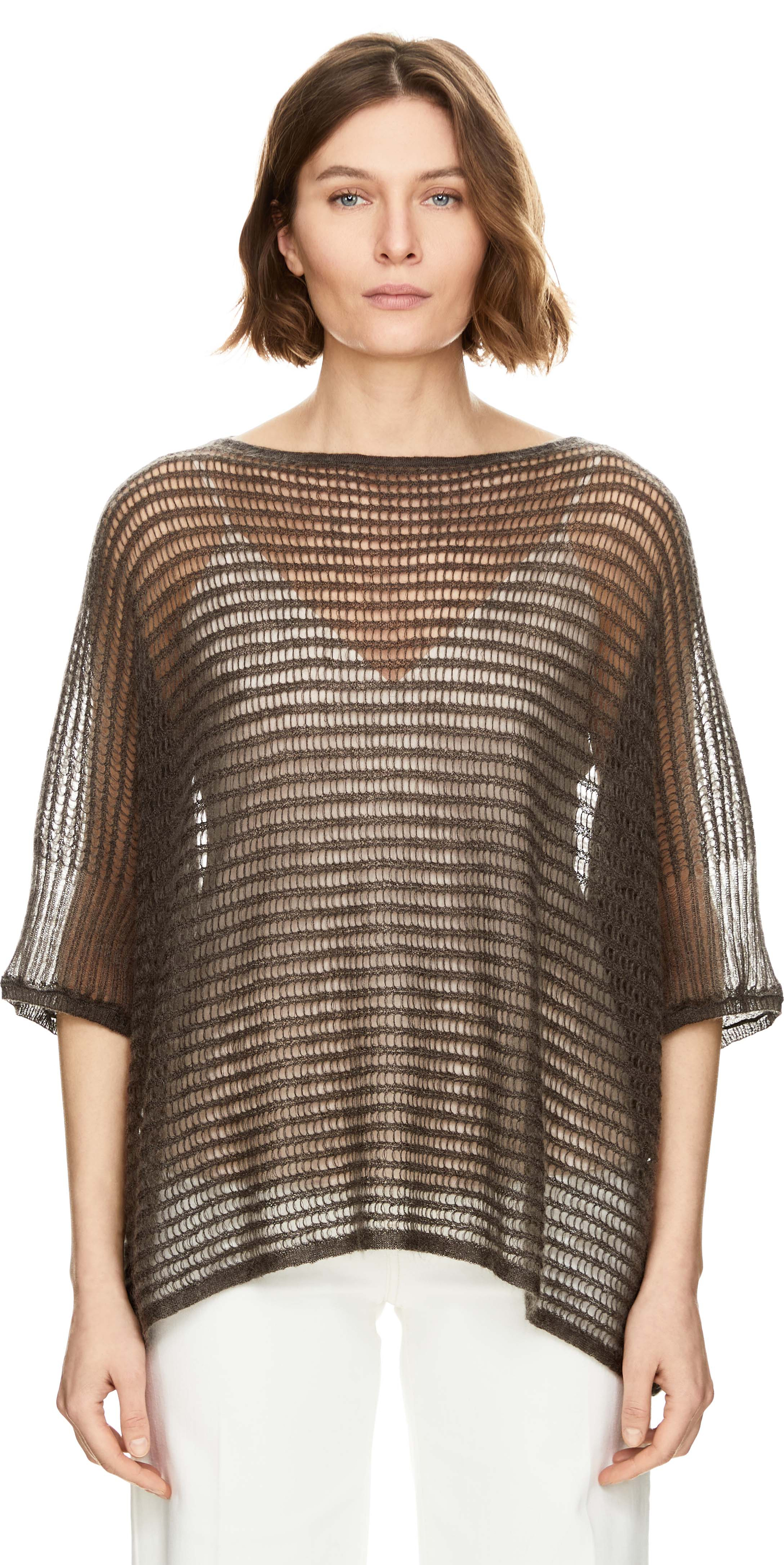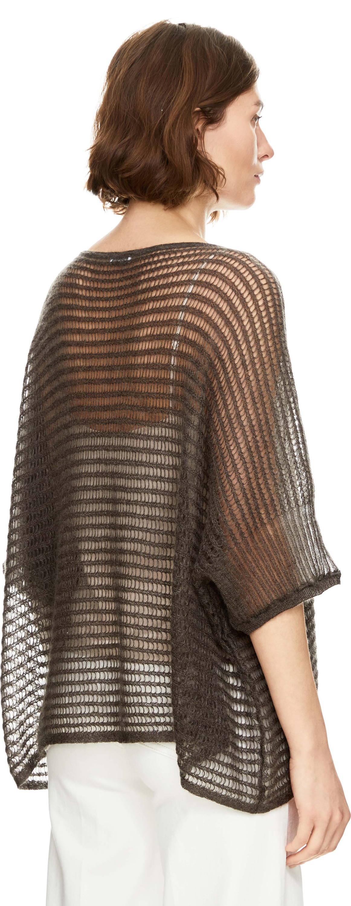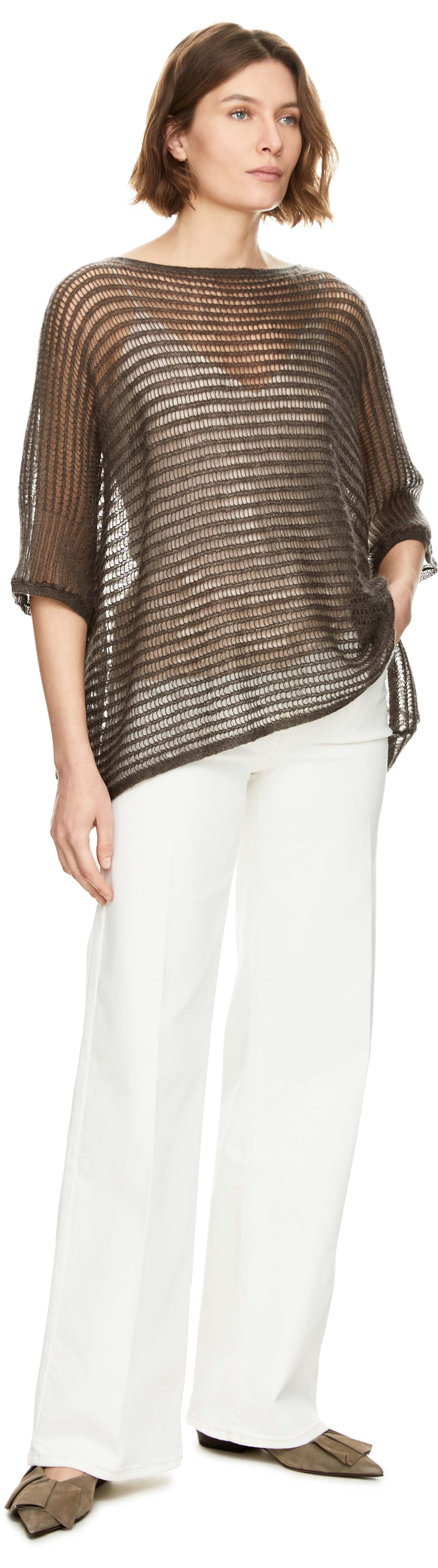 Der Pullover 'Mireva' in Dark Taupe von Iris von Arnim wurde aus einer hochwertigen Mohairmischung gefertigt und besticht durch die lockere Passform. Der Rundhalsausschnitt, die Lochstruktur, die 3/4-Ärmel sowie die halbtransparente Strickoberfläche verleihen dem Modell eine stilvolle Note.