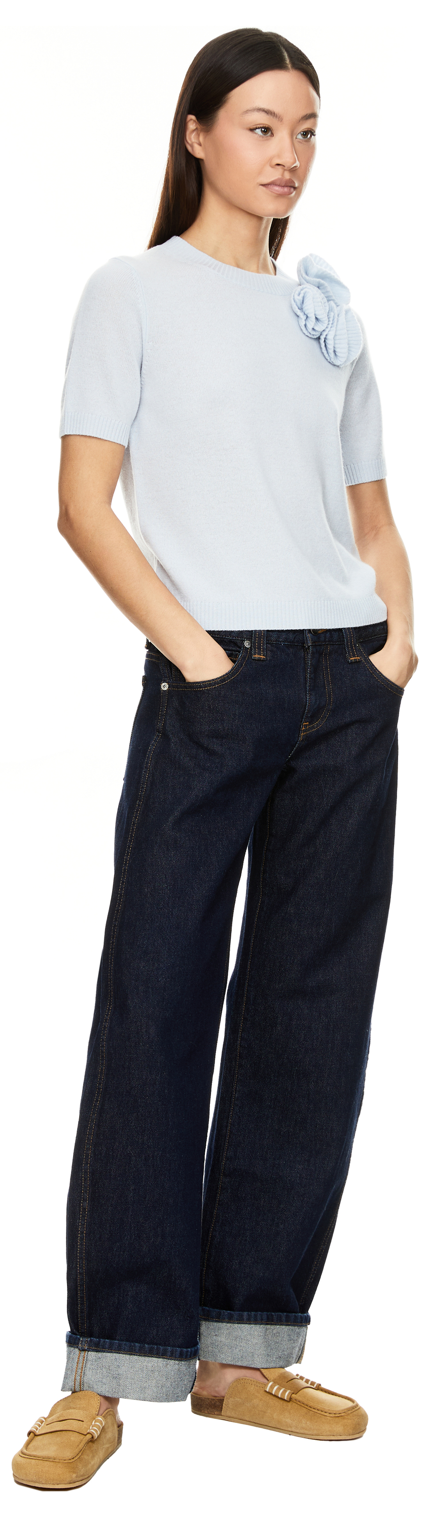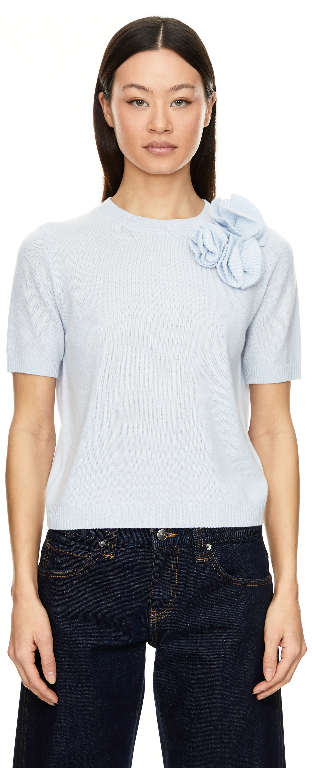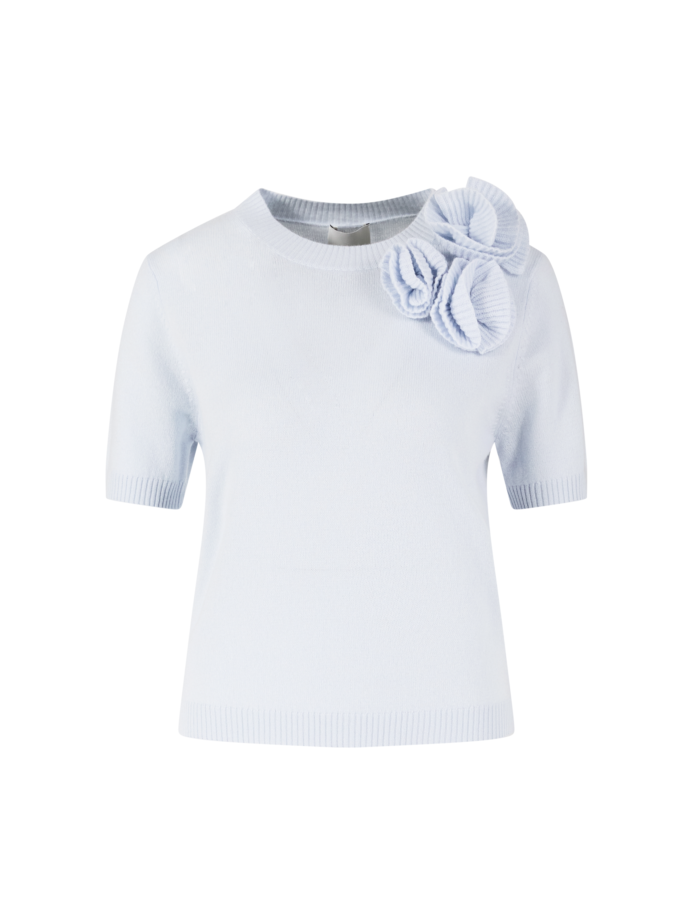 Dieser Pullover in Hellblau von Allude wurde aus einer Woll-Cashmere-Mischung gefertigt und besticht durch das Blumen-Detail. Der Rundhalsausschnitt, die kurzen Ärmel und der Rippstrick am Saum vollenden diesen Klassiker.