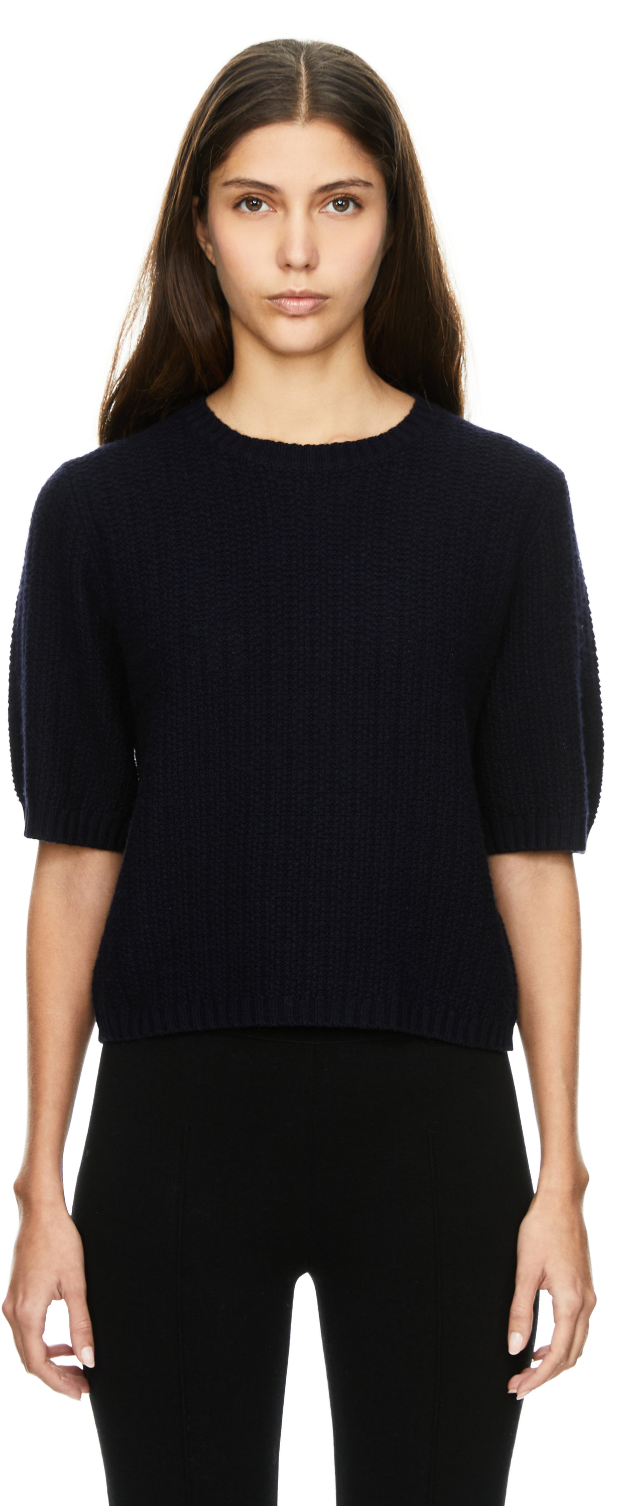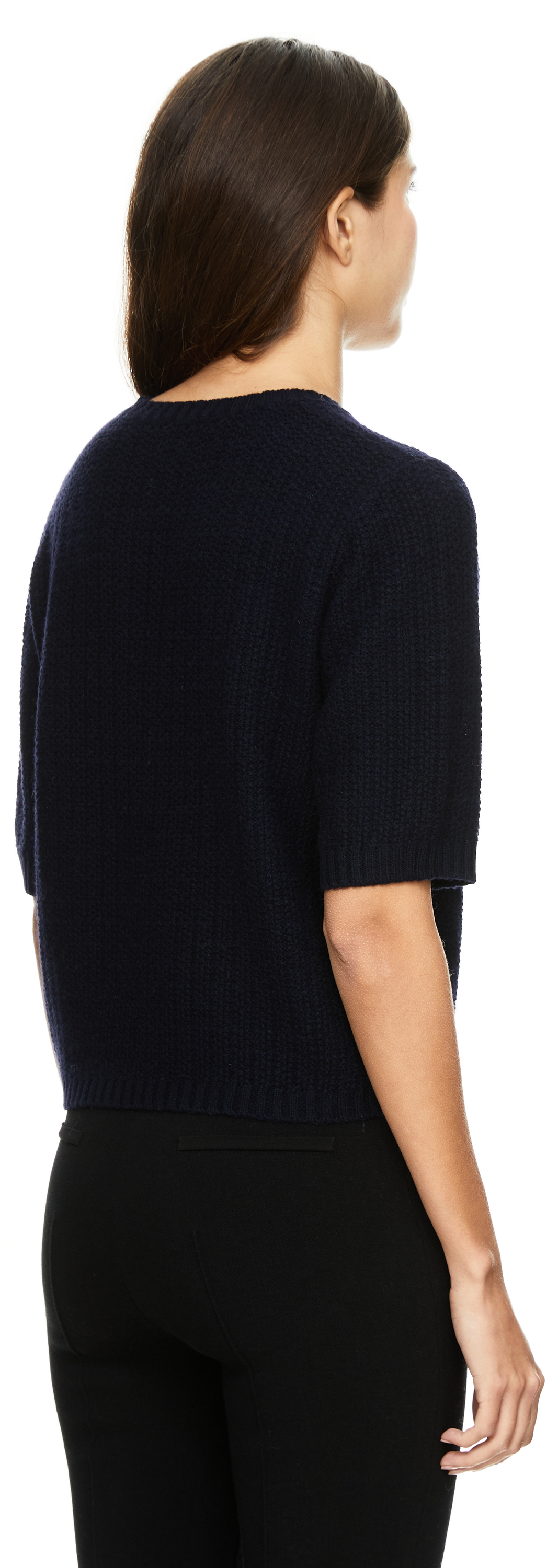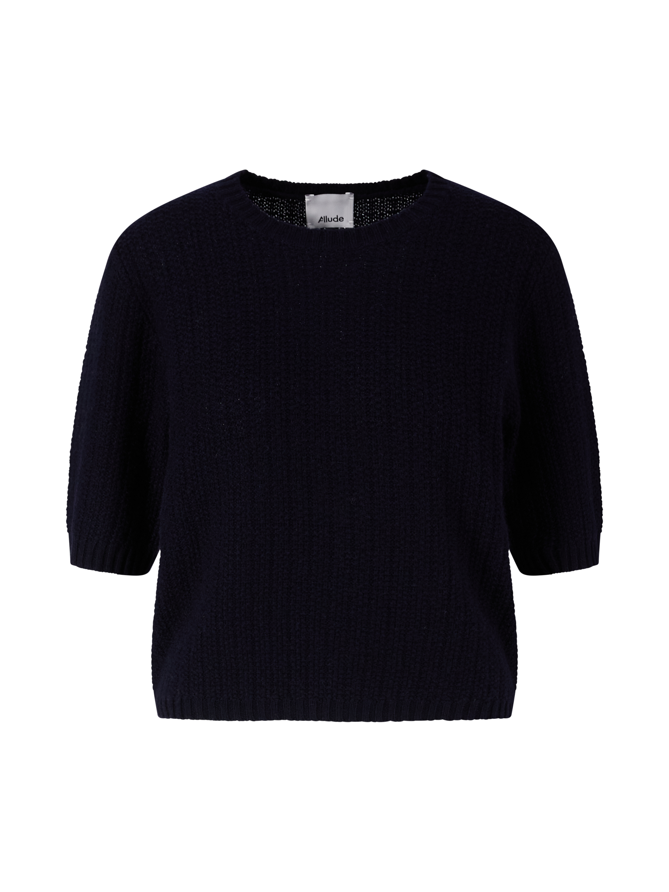 Dieses Shirt in Marineblau von Allude wurde aus einer weichen Cashmere-Schurwollmischung gefertigt und besticht durch den feinen Waffelstrick, der dem Look eine harmonische Textur verleiht. Die leicht verkürzte Passform sorgt für eine moderne Silhouette. Die kurzen Ärmel sowie Rippstrickbündchen an Saum und Ärmeln runden das Modell harmonisch ab.