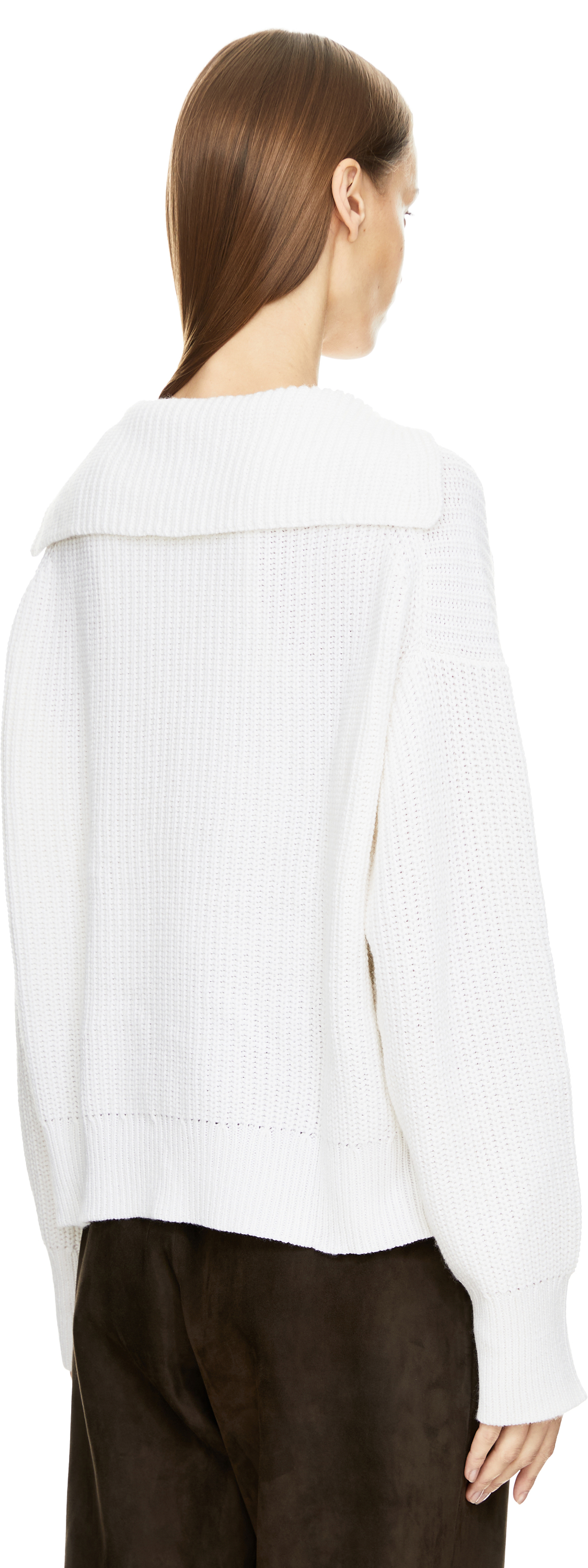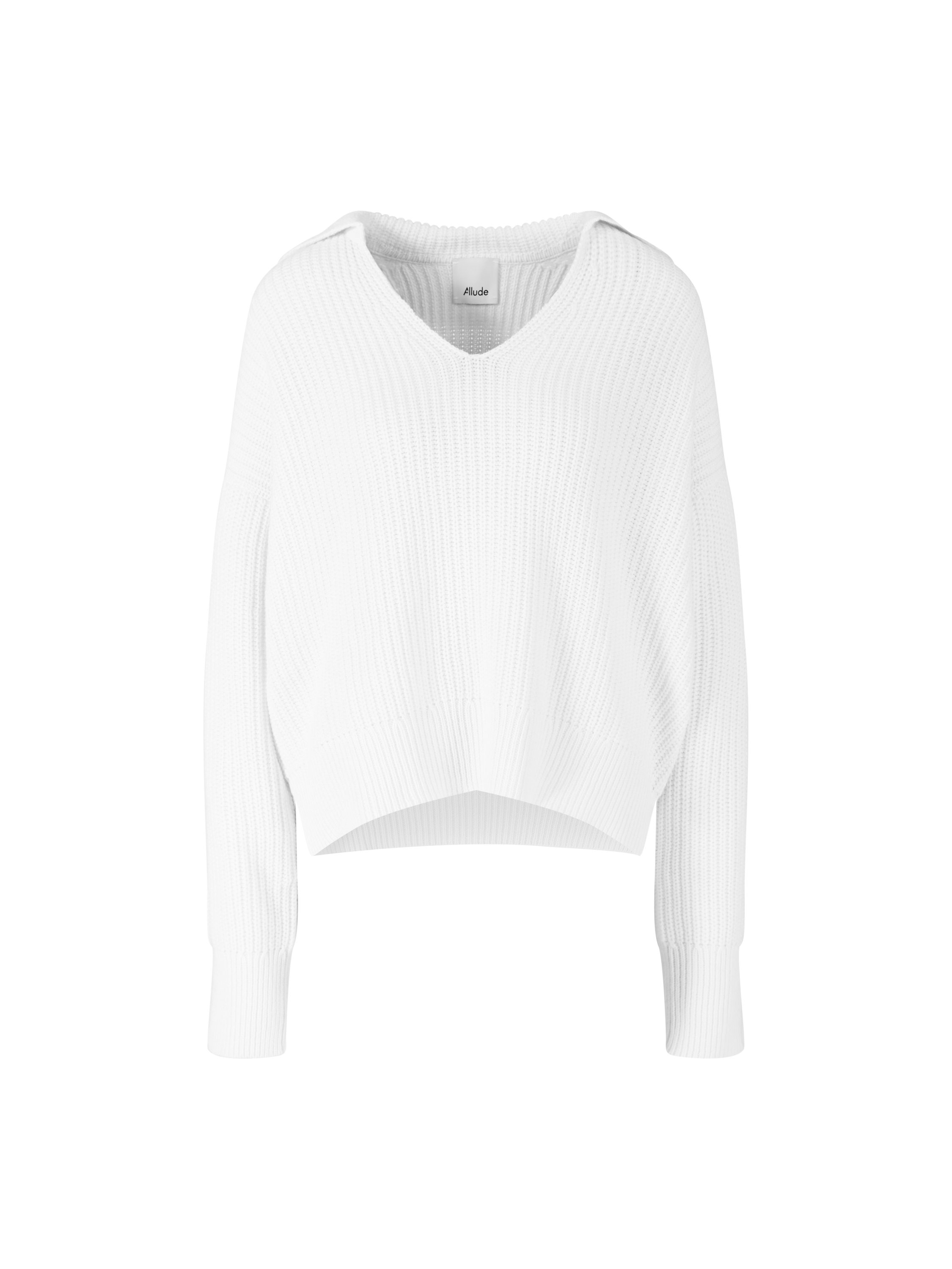 Dieser Pullover in Crème von Allude wurde aus einer hochwertigen Baumwoll-Cashmere-Mischung gefertigt und besticht durch die entspannte Passform. Der Polokragen mit V-Ausschnitt, die überschnittenen Schultern und die verlängerte Rückenpartie zeichnen dieses hochwertige Design aus.