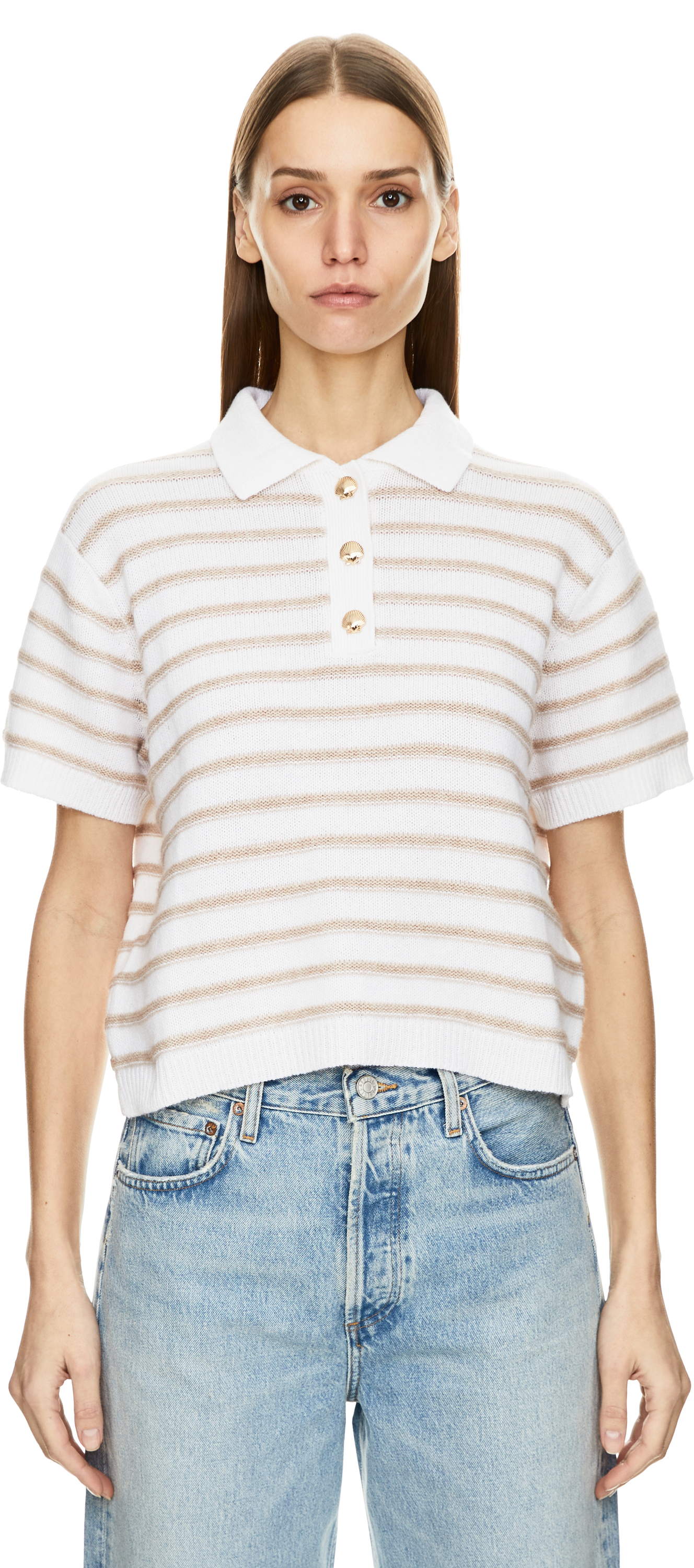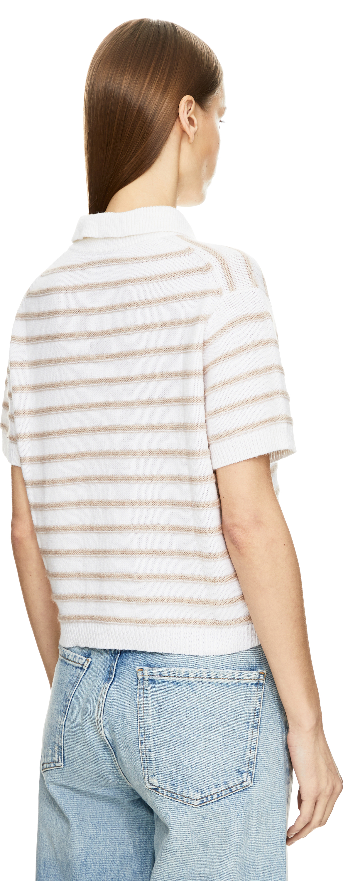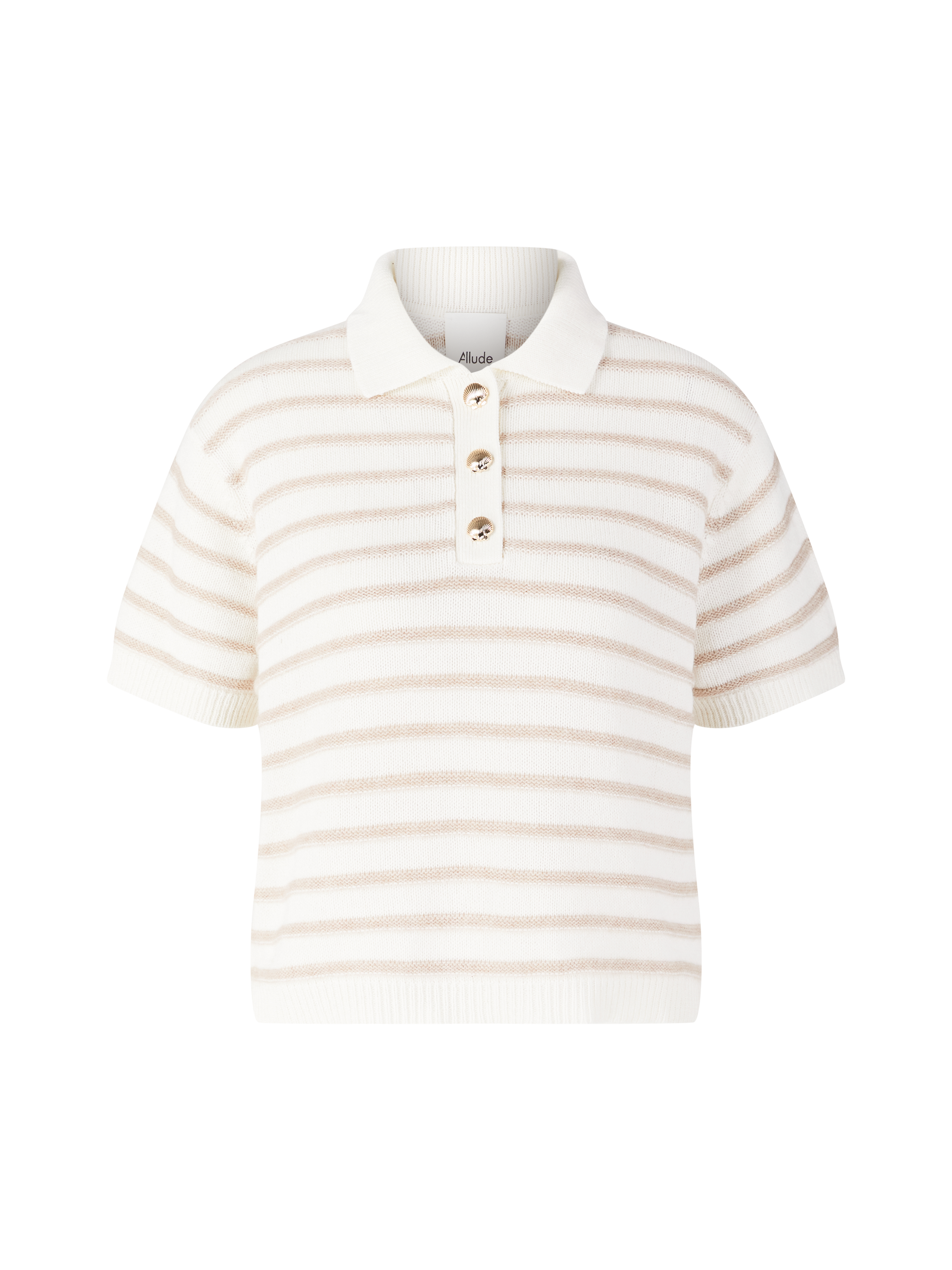 Dieser Pullover in Beige von Allude wurde aus einer Baumwoll-Cashmere-Mischung gefertigt und besticht durch den leicht taillierten Schnitt. Die kurzen Ärmel, die Rippbündchen am Saum, der Umlegekragen sowie das Strickmuster runden dieses Design stilvoll ab.