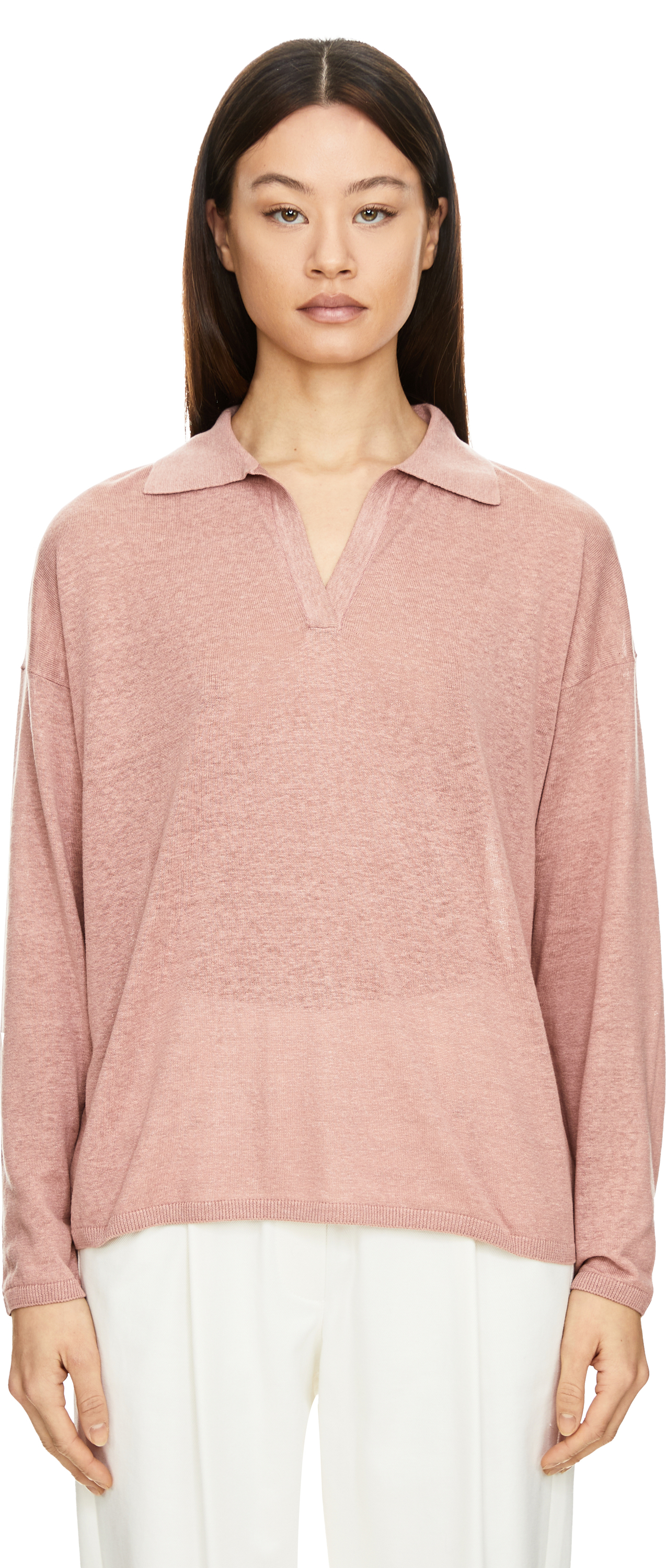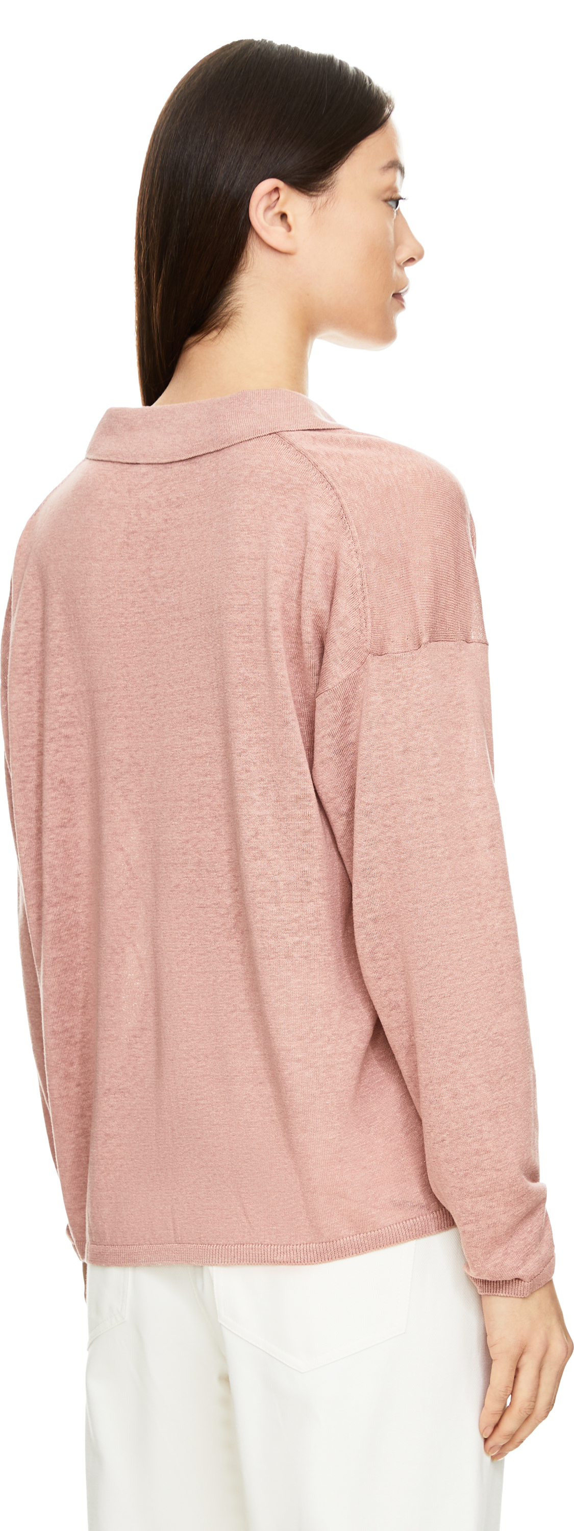 Der Pullover 'Elira in Rosenholz von Iris von Arnim wurde aus einer hochwertigen Seiden-Leinenmischung gefertigt und besticht durch die lässige Passform. Der Polokragen mit V-Ausschnitt, der feine Rippstrick sowie die weiche Haptik zeichnen dieses hochwertige Design aus.