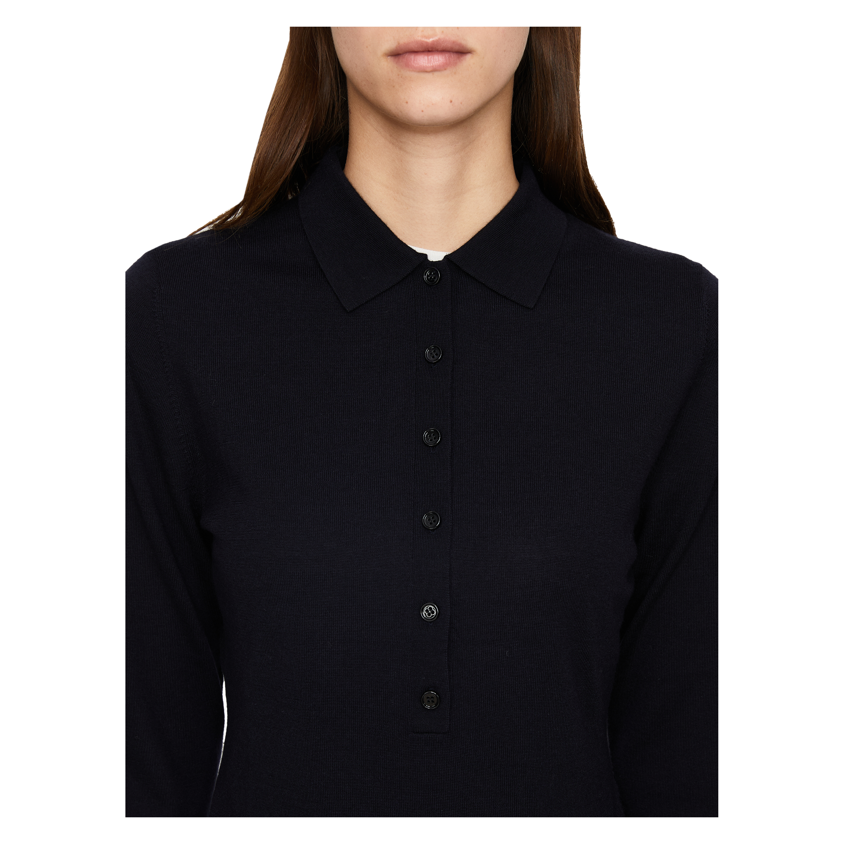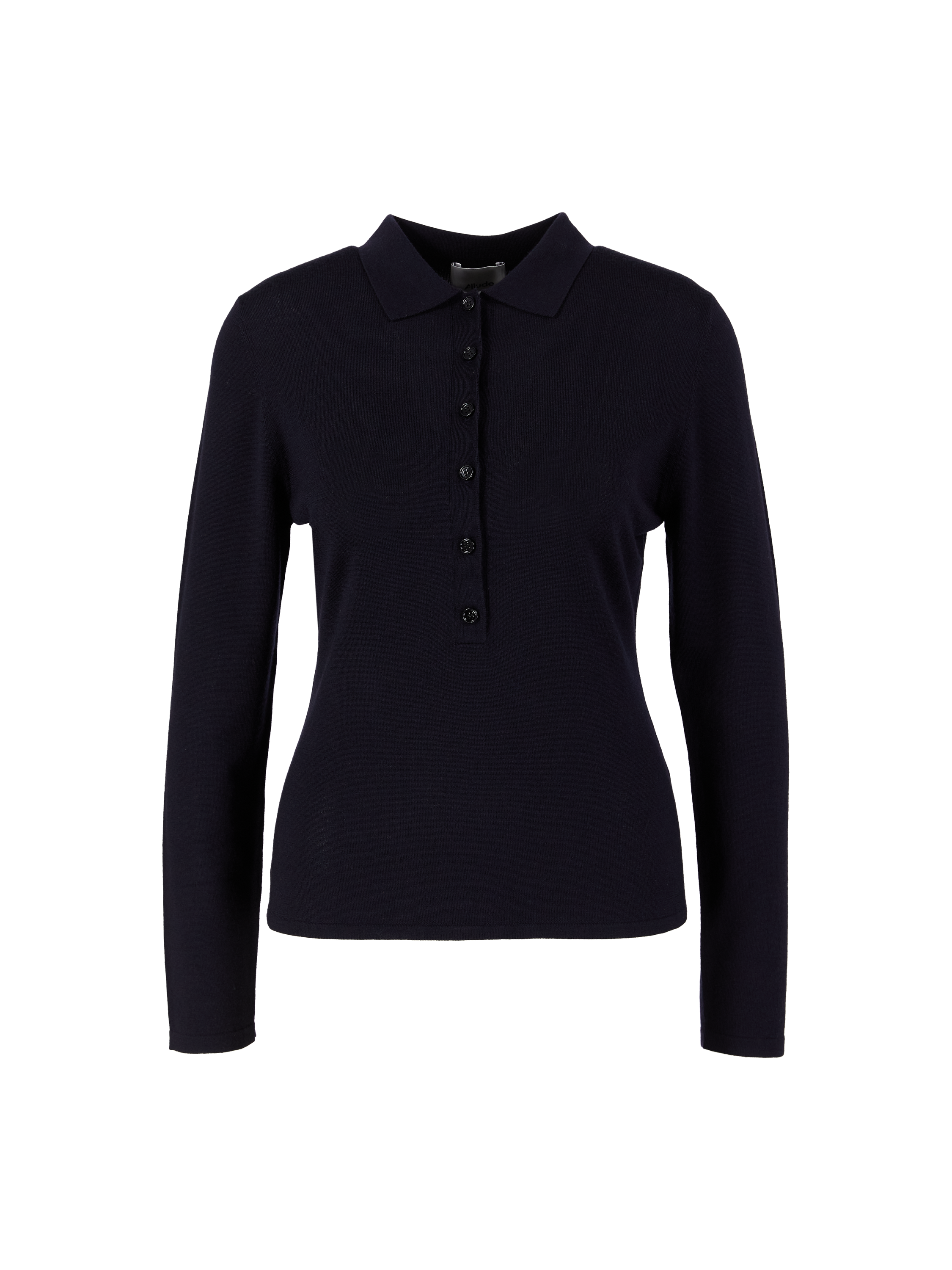 Dieser Pullover in Marineblau von Allude wurde aus Schurwolle hergestellt und besticht durch einen Polokragen. Die Rippstrickbündchen und der geknöpfte Ausschnitt zeichnen dieses Modell aus.