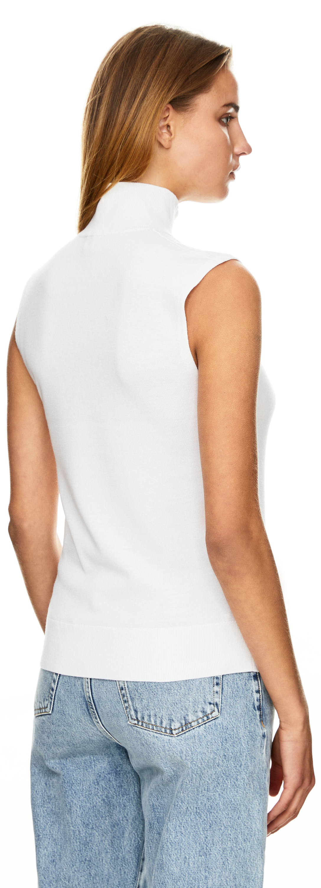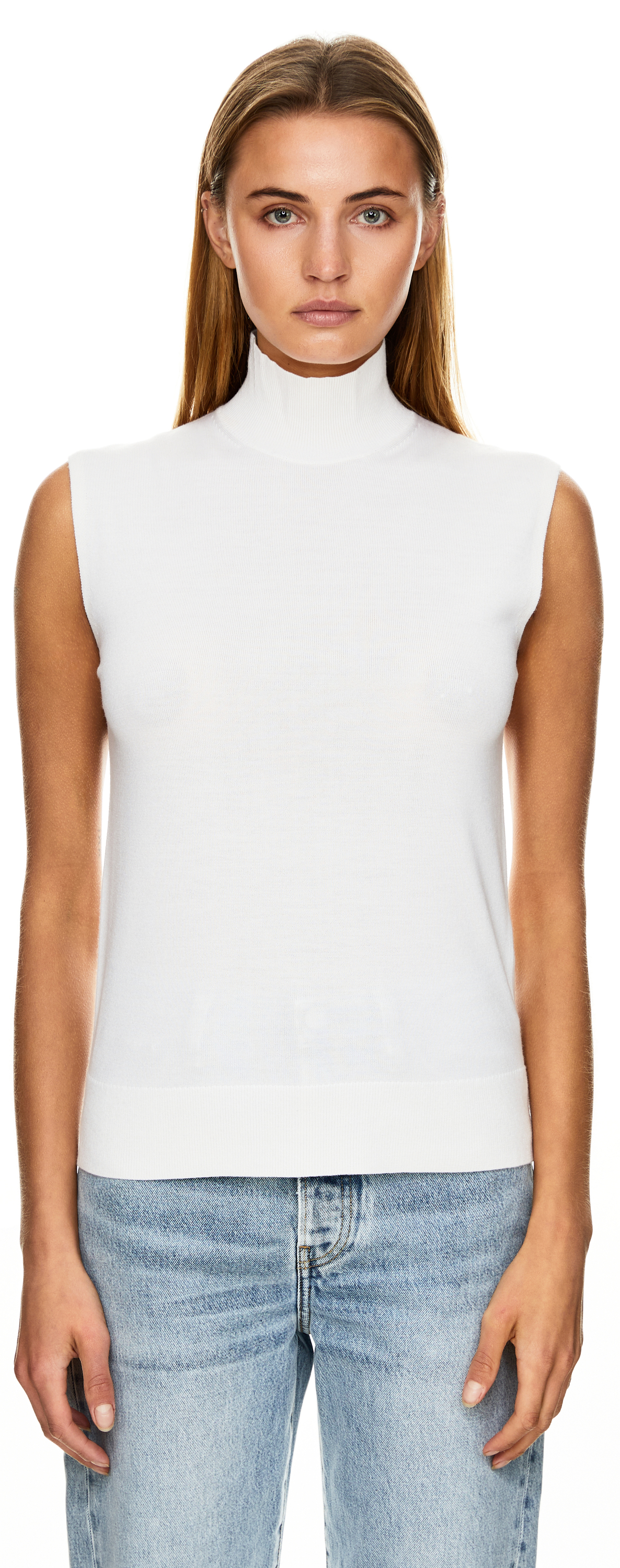 Dieser Pullunder in Crème von TOTEME wurde aus einer hochwertigen Woll-Seidenmischung gefertigt und besticht durch eine lässige Passform. Die gerade Silhouette, das ärmellose Design und der Stehkragen perfektionieren dieses modische Modell.