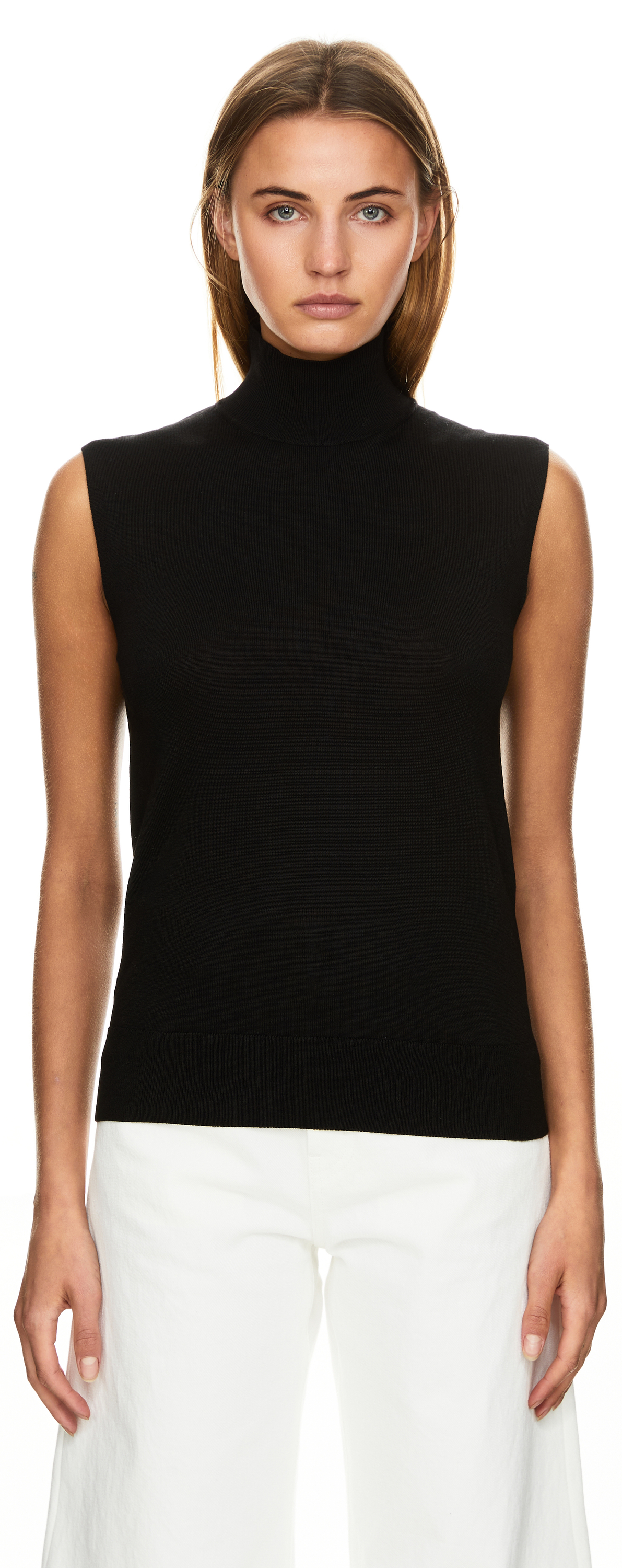 Ärmelloser Pullunder mit Stehkragen Schwarz