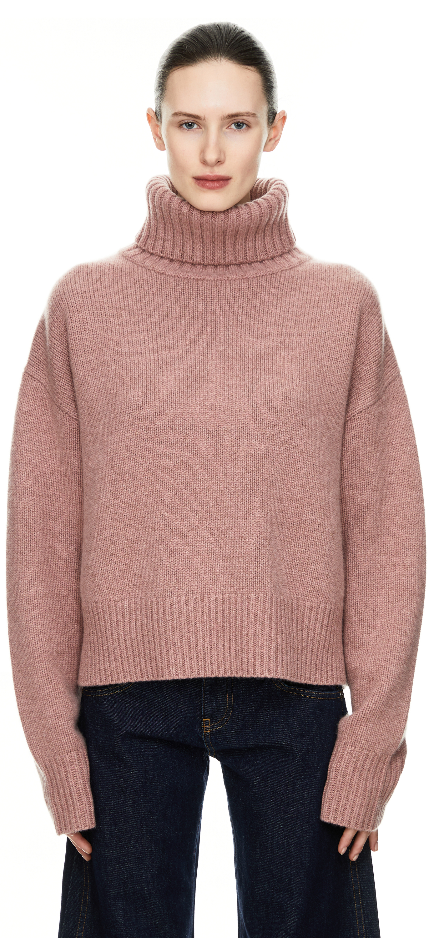 Der Pullover 'n°434 crop xtra' in Rosé von extreme cashmere x wurde aus weichem Cashmere gefertigt und besticht durch das zeitlose Design. Die lockere Passform, der Rollkragen und der klassische Rippstrick vollenden dieses klassische Modell.
