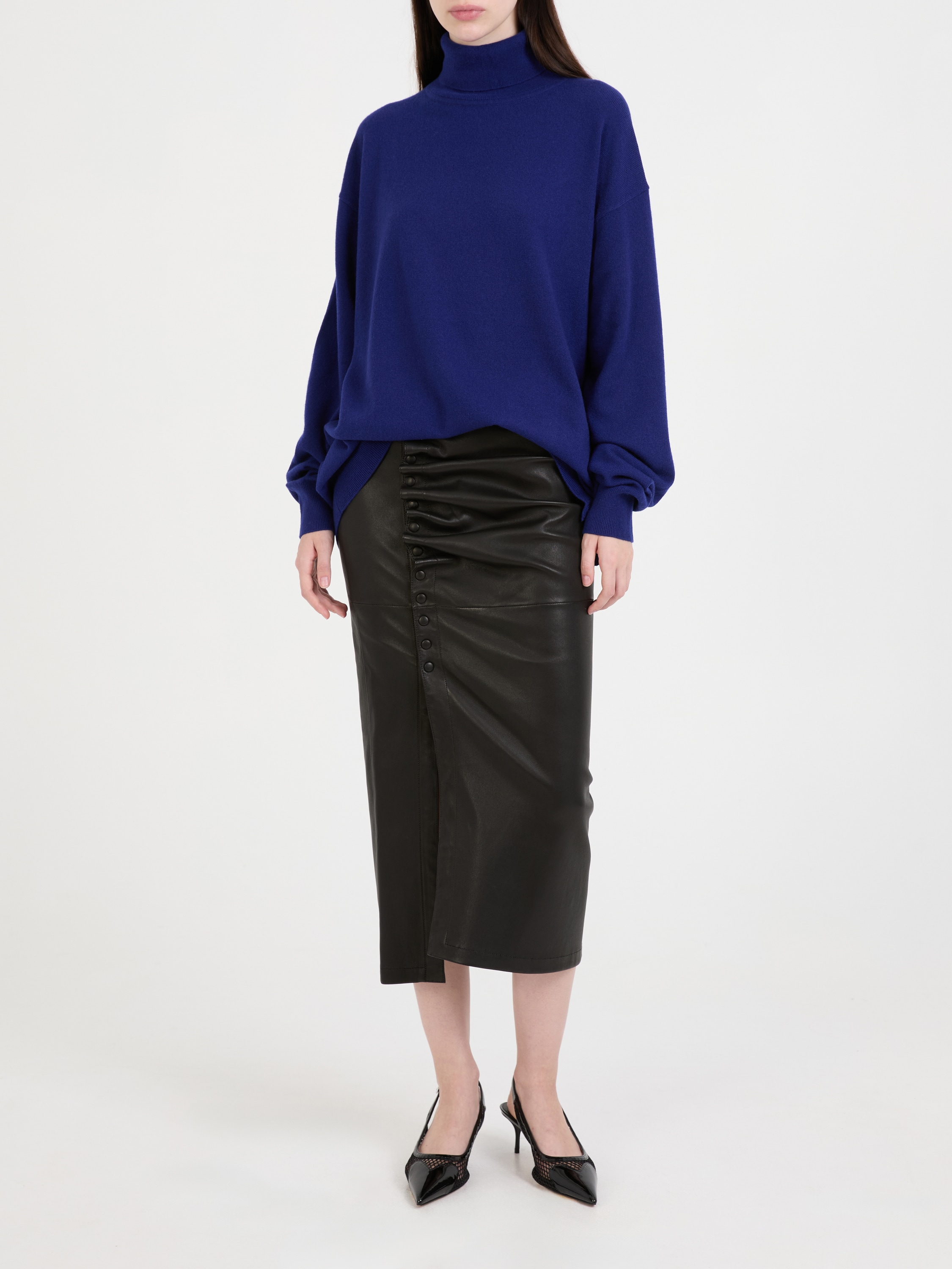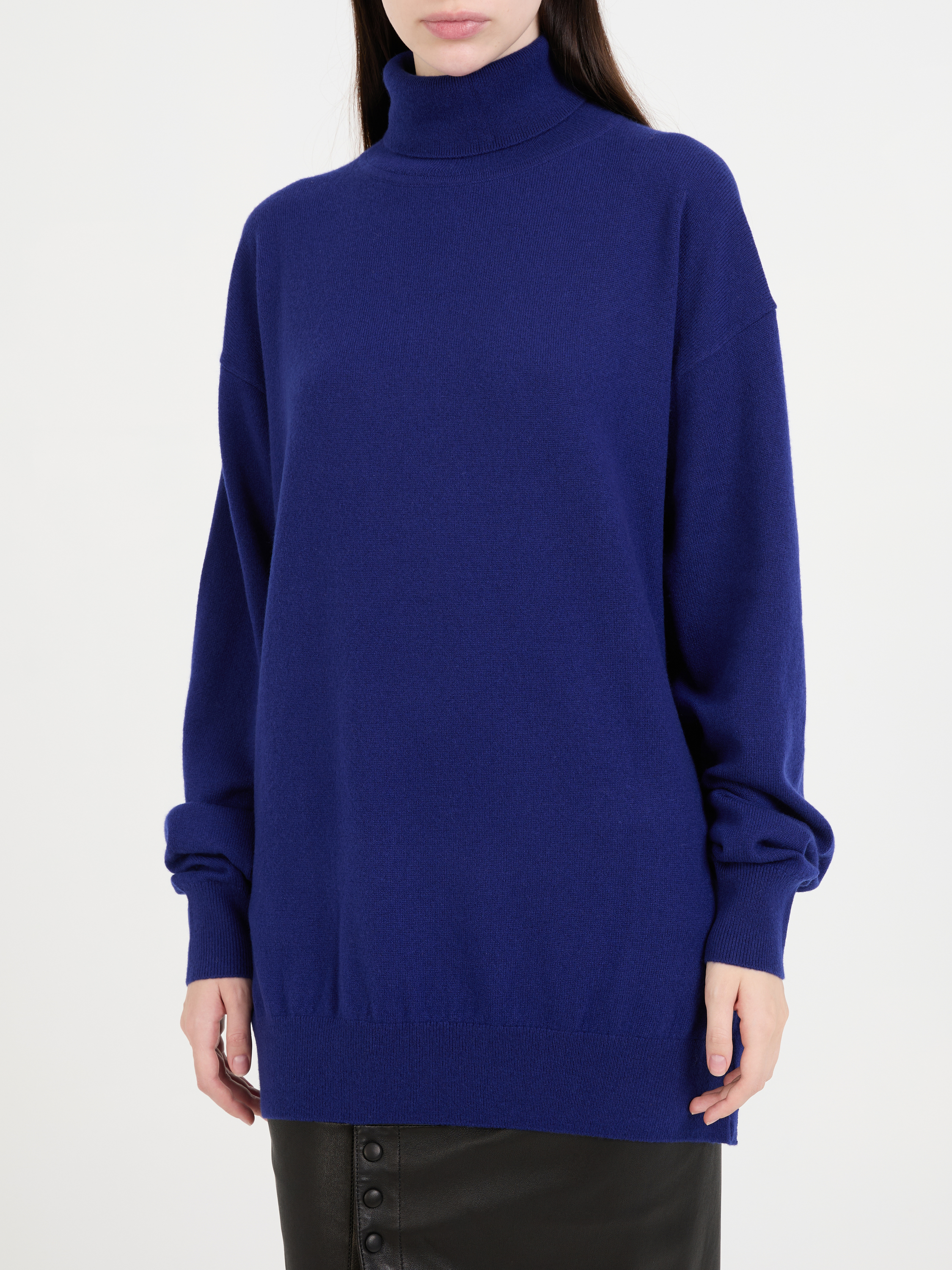 Der Pullover 'Talila' in Mittelblau von Dries van Noten wurde aus hochwertigen Cashmere gefertigt und besticht durch das minimalistische Design. Der dezente Rollkragen und die glatte Struktur verleiht dem hochwertigen Modell einen stimmigen Abschluss.