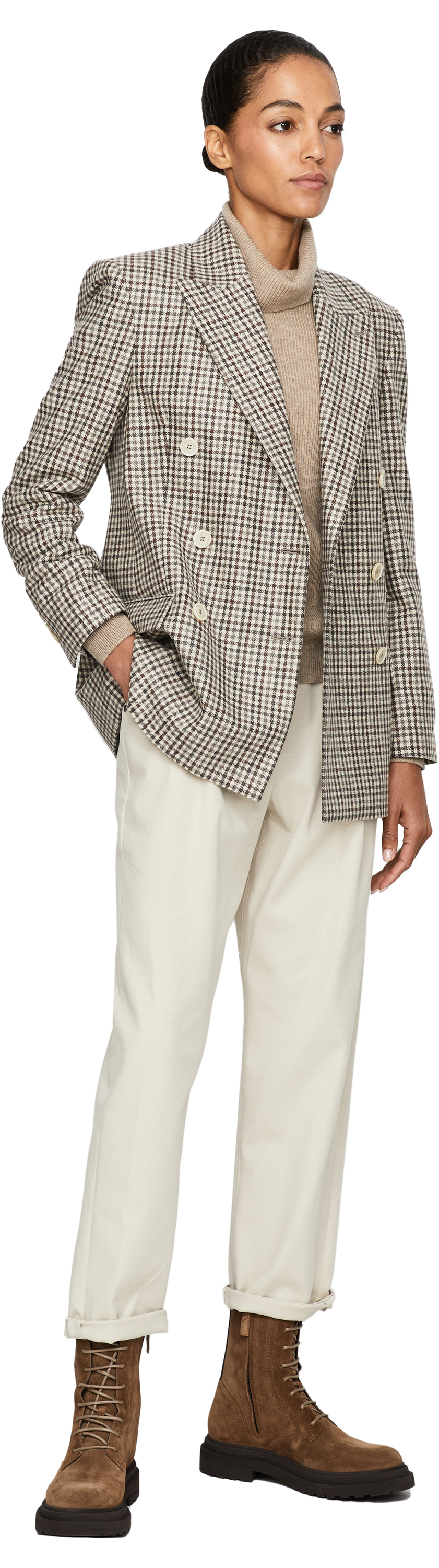 Brunello Cucinelli ist eine italienische Luxusmarke, die 1978 von Brunello Cucinelli in dem malerischen Dorf Solomeo gegründet wurde. Die Marke steht für hochwertige Mode und vereint traditionelle Handwerkskunst mit modernem Design. Seine Mode ist weltweit bekannt für ihre exklusive Qualität und die Verwendung luxuriöser Materialien. Das Unternehmen hat seinen Hauptsitz nach wie vor in Solomeo, einem Ort, der für die Philosophie der "humanistischen Kapitalismus" steht, die von Brunello Cucinelli selbst propagiert wird. Diese Philosophie betont die Bedeutung von Menschlichkeit und ethischer Verantwortung in der Geschäftswelt.