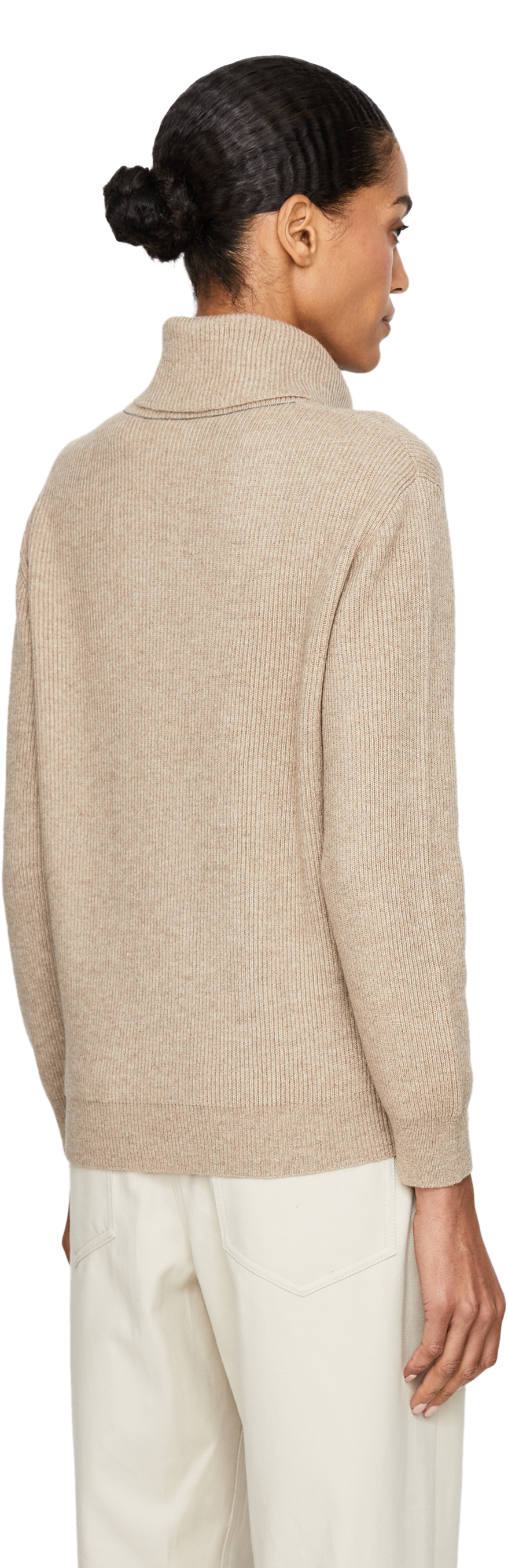 Dieser Pullover in Braun von Brunello Cucinelli wurde aus reinem Cashmere gefertigt und besticht durch die Monili-Perlen am Nackenbereich. Der Patentstrick, die überschnittenen Schultern und die weiche Haptik machen dieses Design zu einem echten Hingucker.