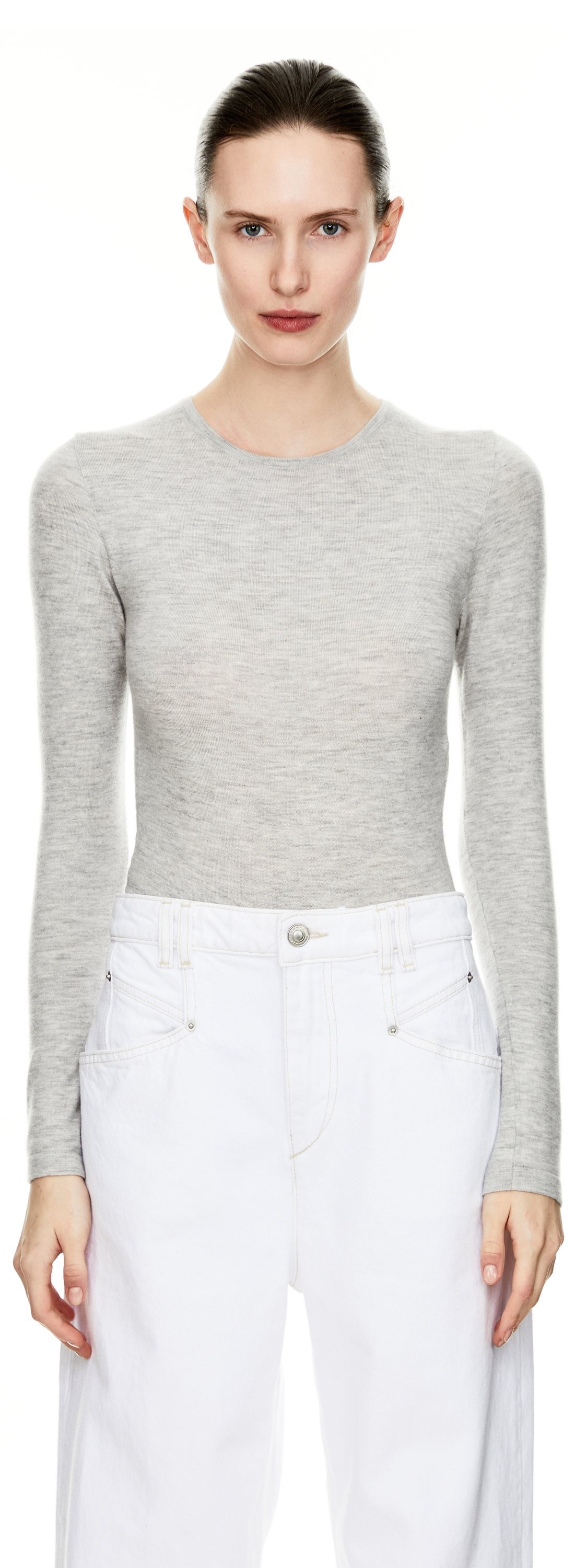 Dieser Body in Grau von Ella Silla wurde aus hochwertigem Cashmere gefertigt und besticht durch die melierte Optik. Die taillierte Passform und die langen Ärmel zeichnen dieses hochwertige Design aus.