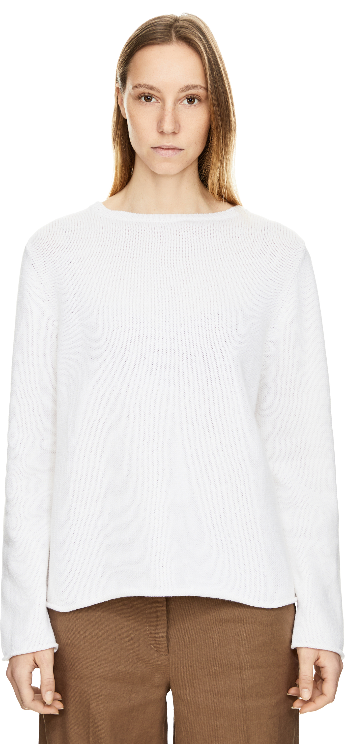 Dieser Pullover in Crème von Allude wurde aus einer Baumwoll-Cashmere-Mischung gefertigt und besticht durch die weiche Haptik. Die lässige Silhouette, die Rippstrickbündchen sowie der Rundhalsausschnitt verleihen dem Modell eine elegante Schlichtheit.