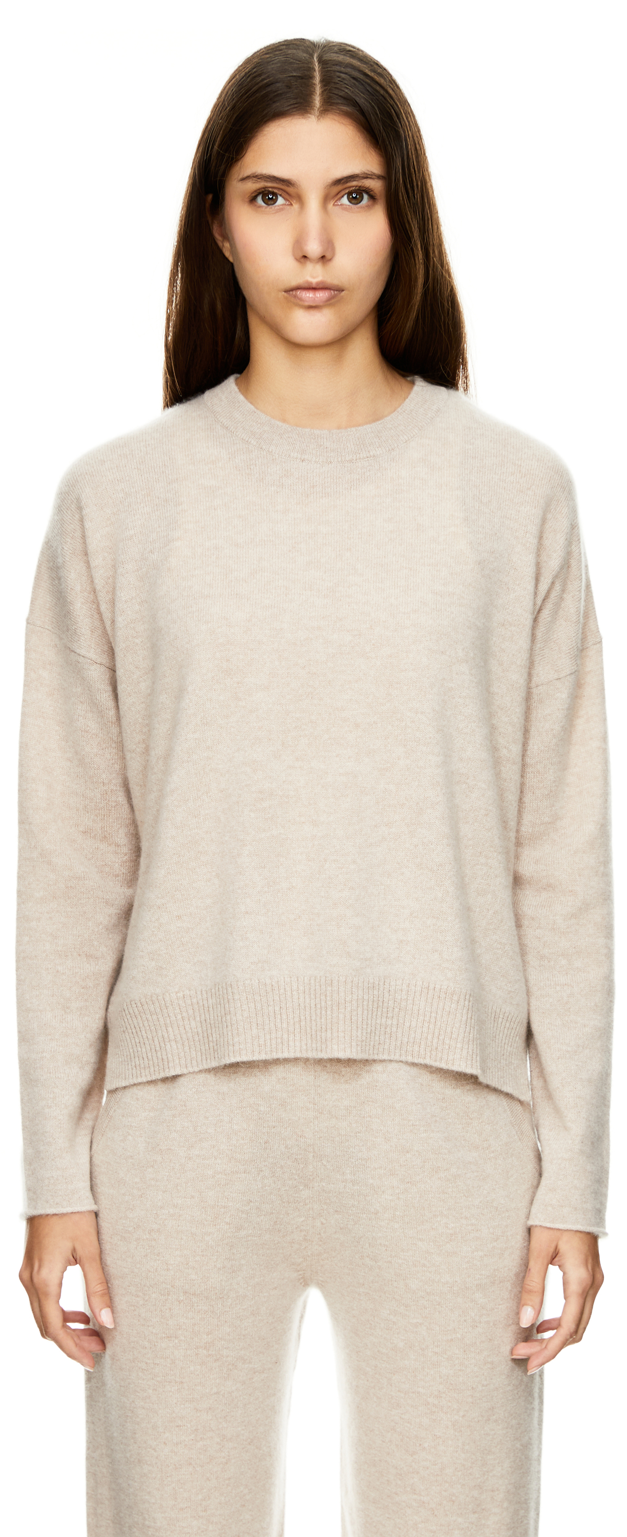 Cashmere-Pullover mit Rundhalsausschnitt Taupe