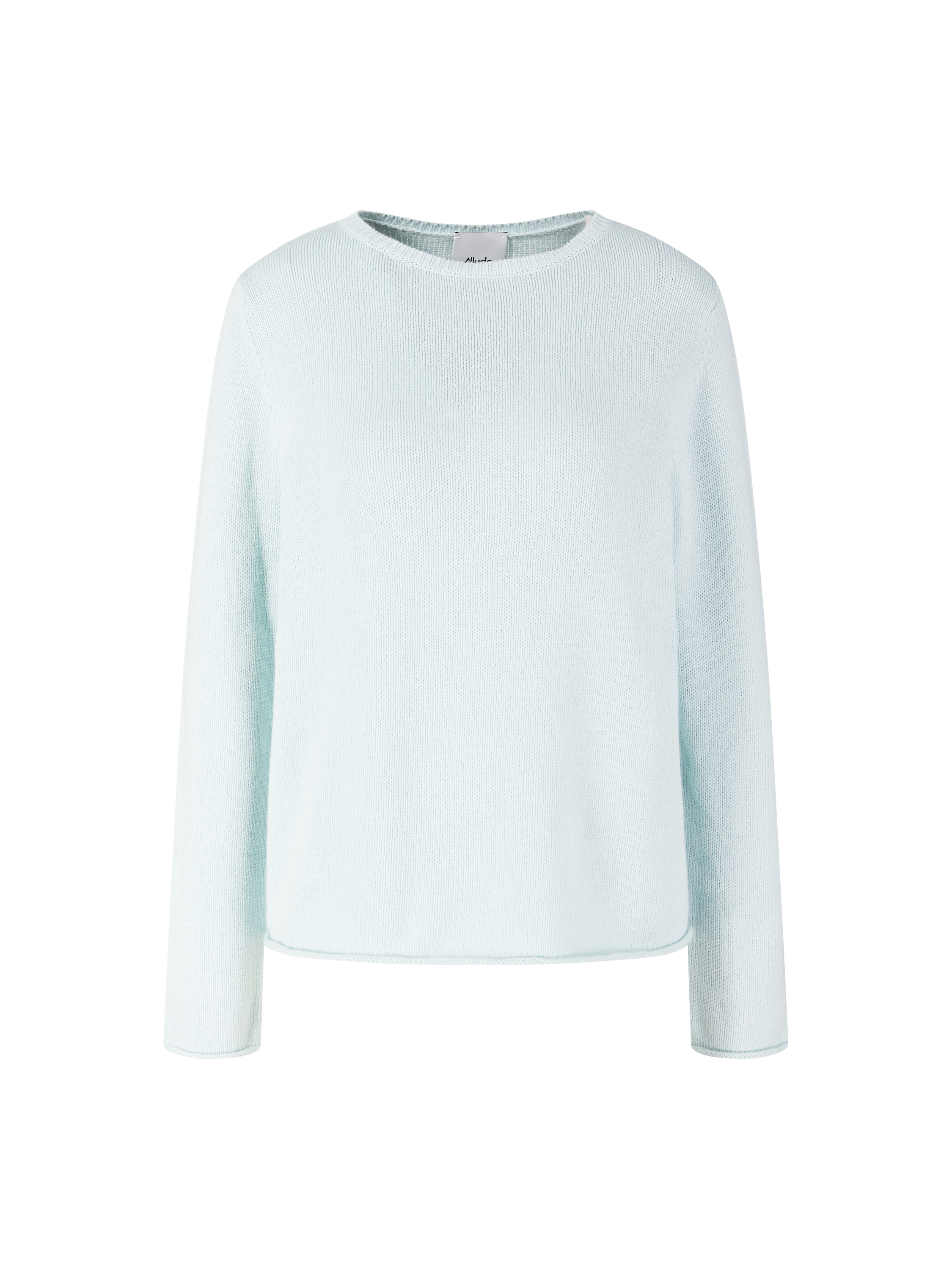 Dieser Pullover in Türkis von Allude wurde aus einer Baumwoll-Cashmere-Mischung gefertigt und besticht durch den melierten Strick. Die lässige Silhouette, die Rippstrickbündchen sowie der Rundhalsausschnitt verleihen dem Modell eine elegante Schlichtheit.