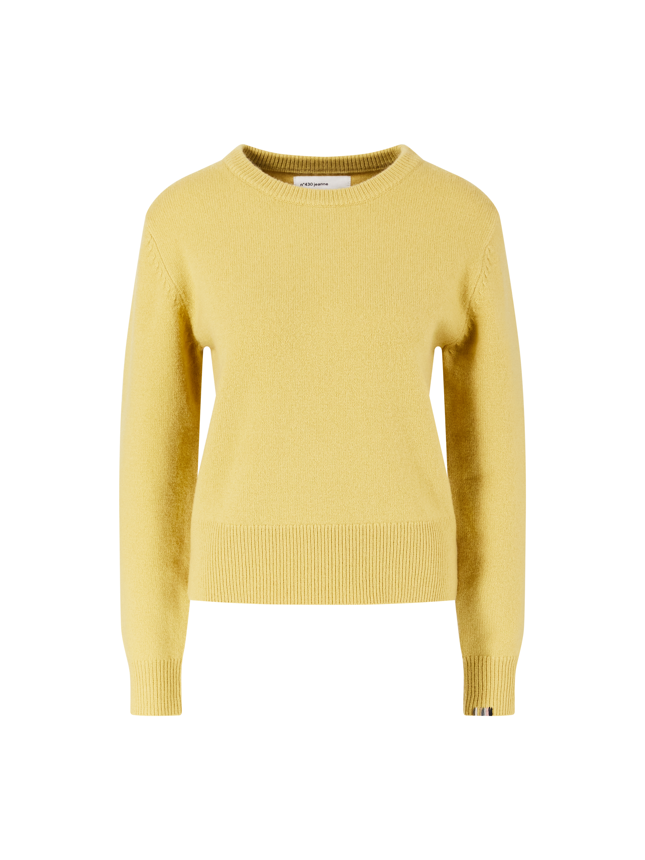 Der Pullover 'n°430 Jeanne' in Gelb von extreme cashmere x wurde aus einer Cashmere-Mischung gefertigt und besticht durch die fließende Silhouette. Der Rundhalsausschnitt, die langen Ärmel sowie der Rippstrick am Ärmel und Saum vollenden diesen Klassiker.