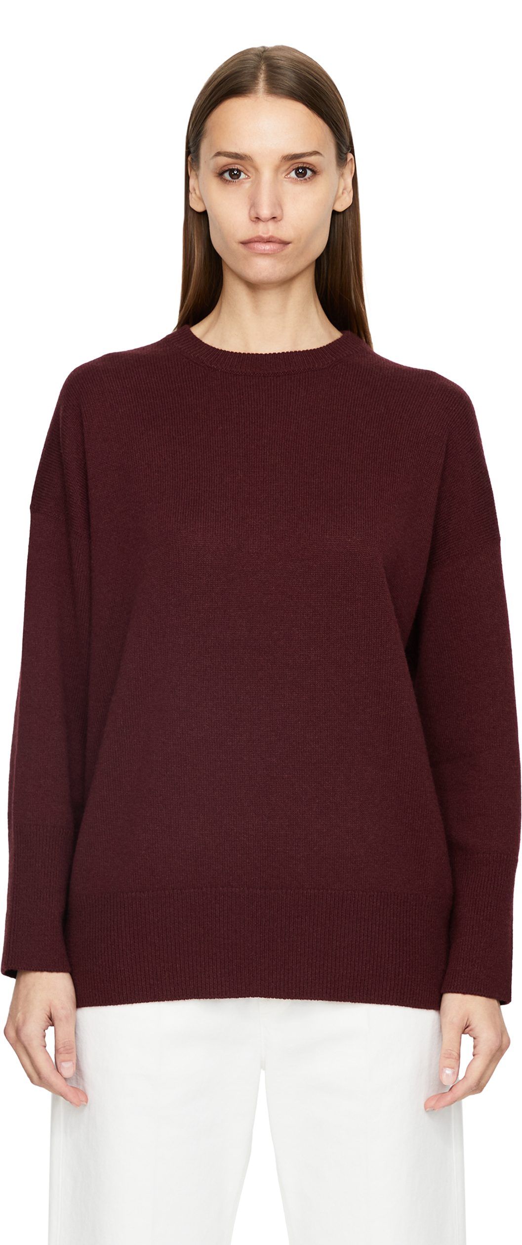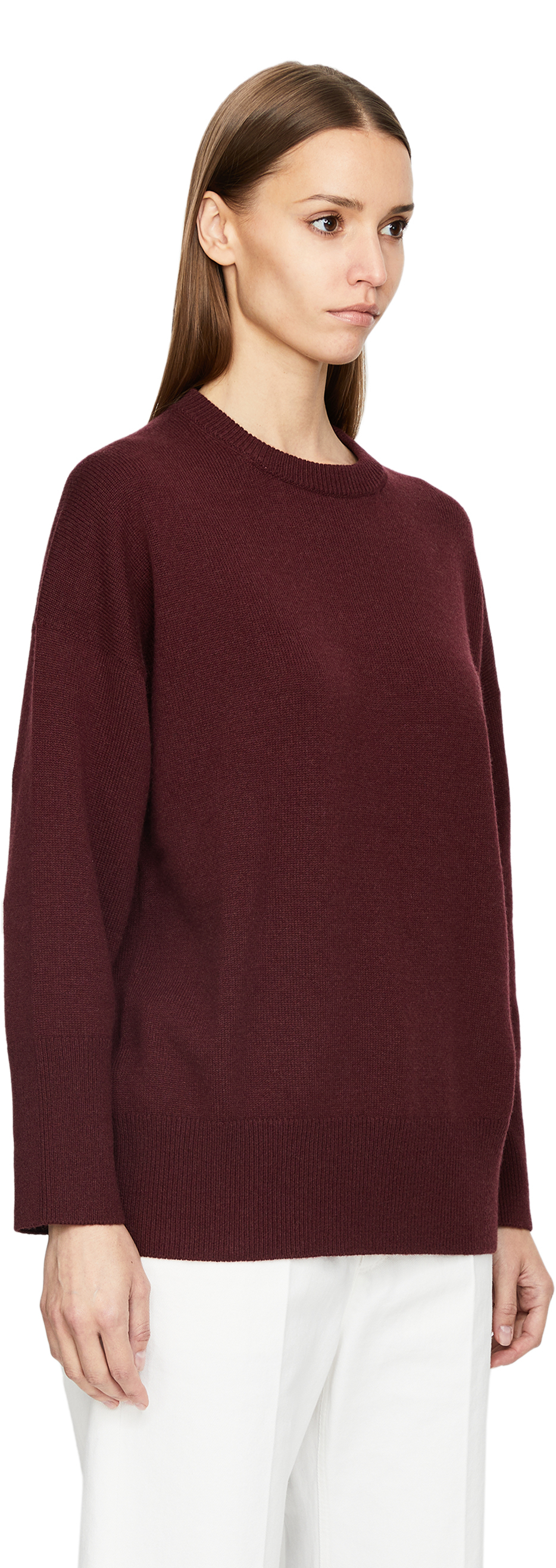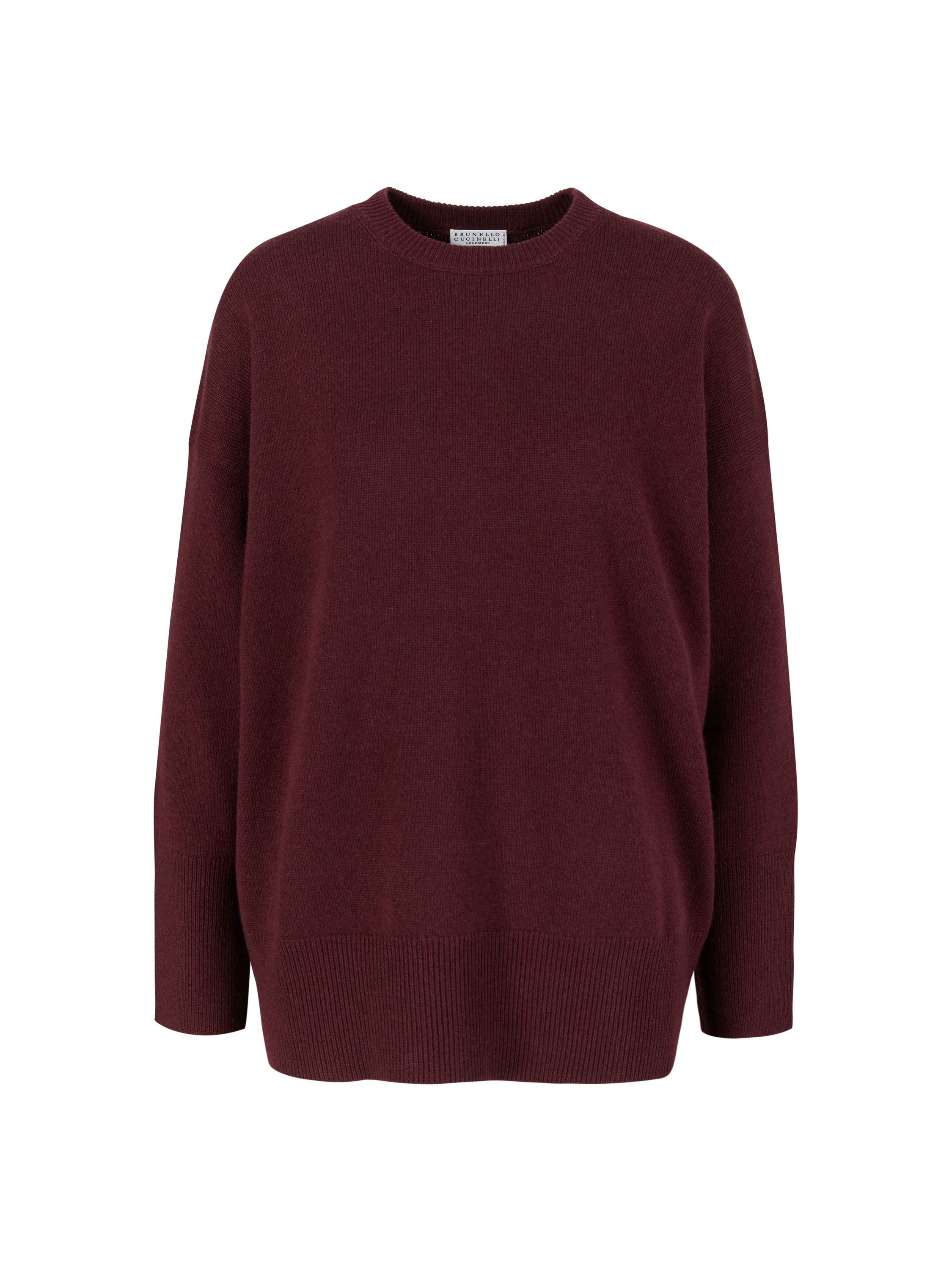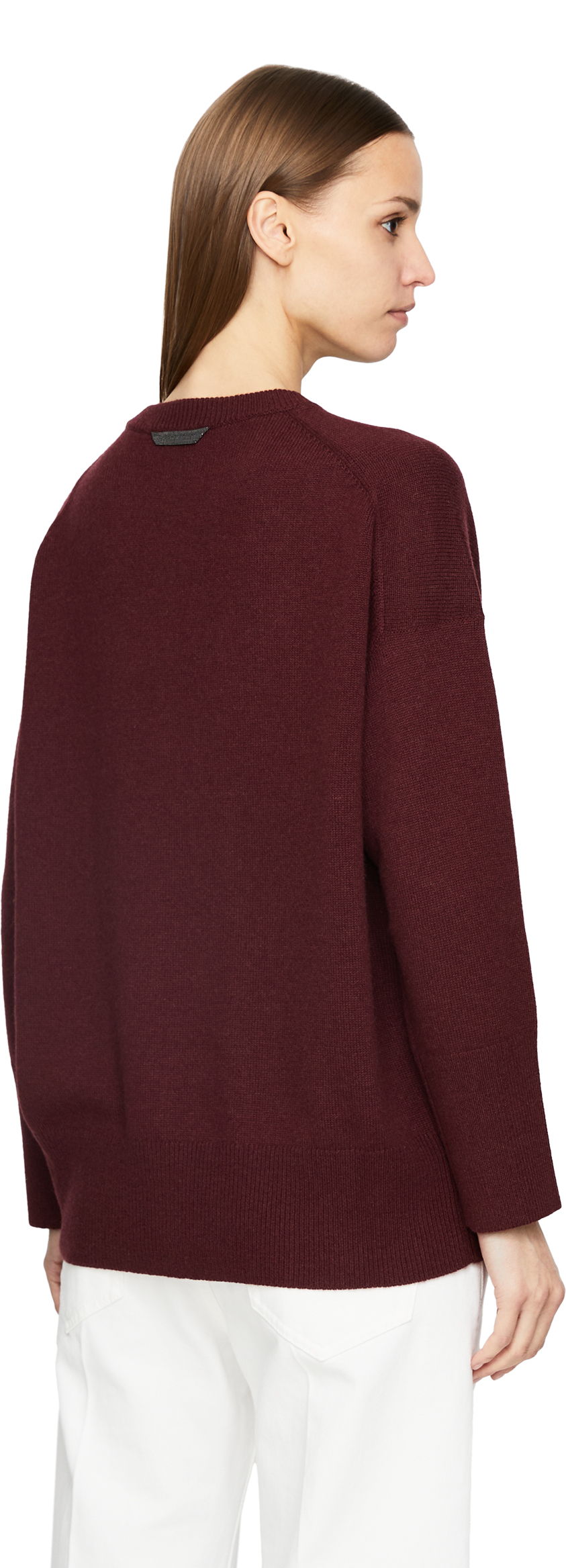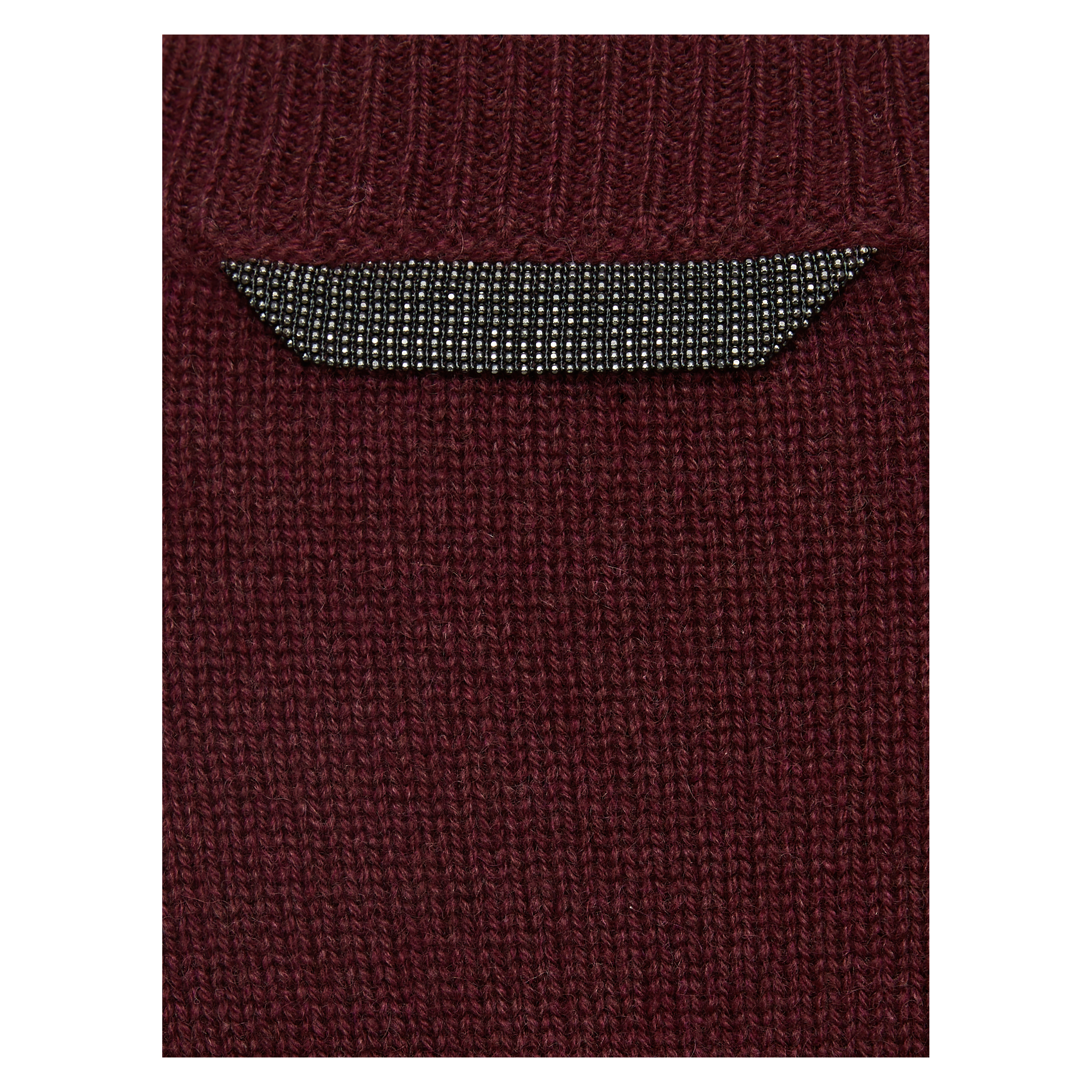 Dieser Pullover in Bordeaux von Brunello Cucinelli wurde aus reinem Cashmere gefertigt und besticht durch die Monili-Perlen am Nacken. Die überschnittenen Schultern, der Rundhalsausschnitt und der Feinstrick perfektionieren das Design.