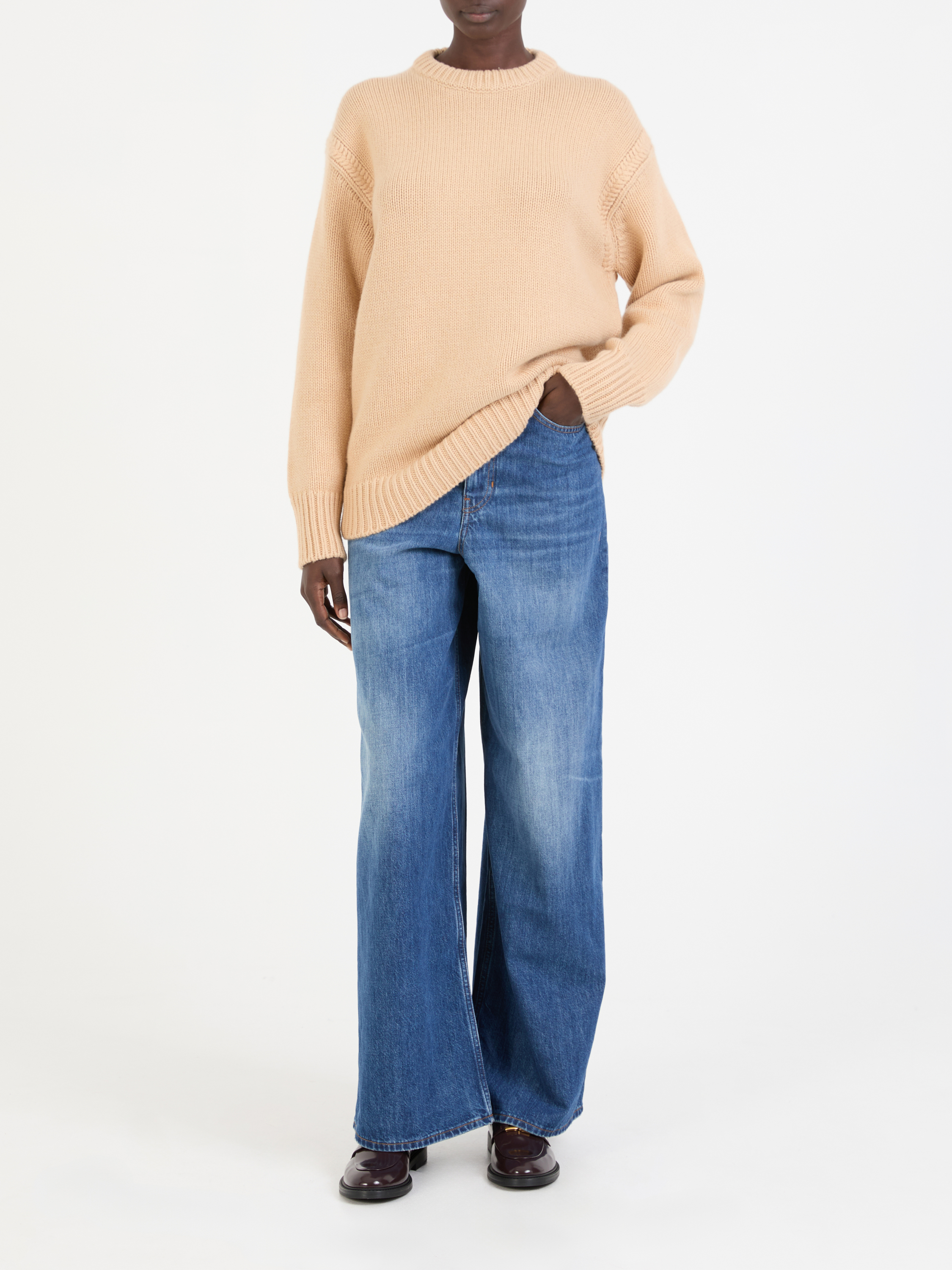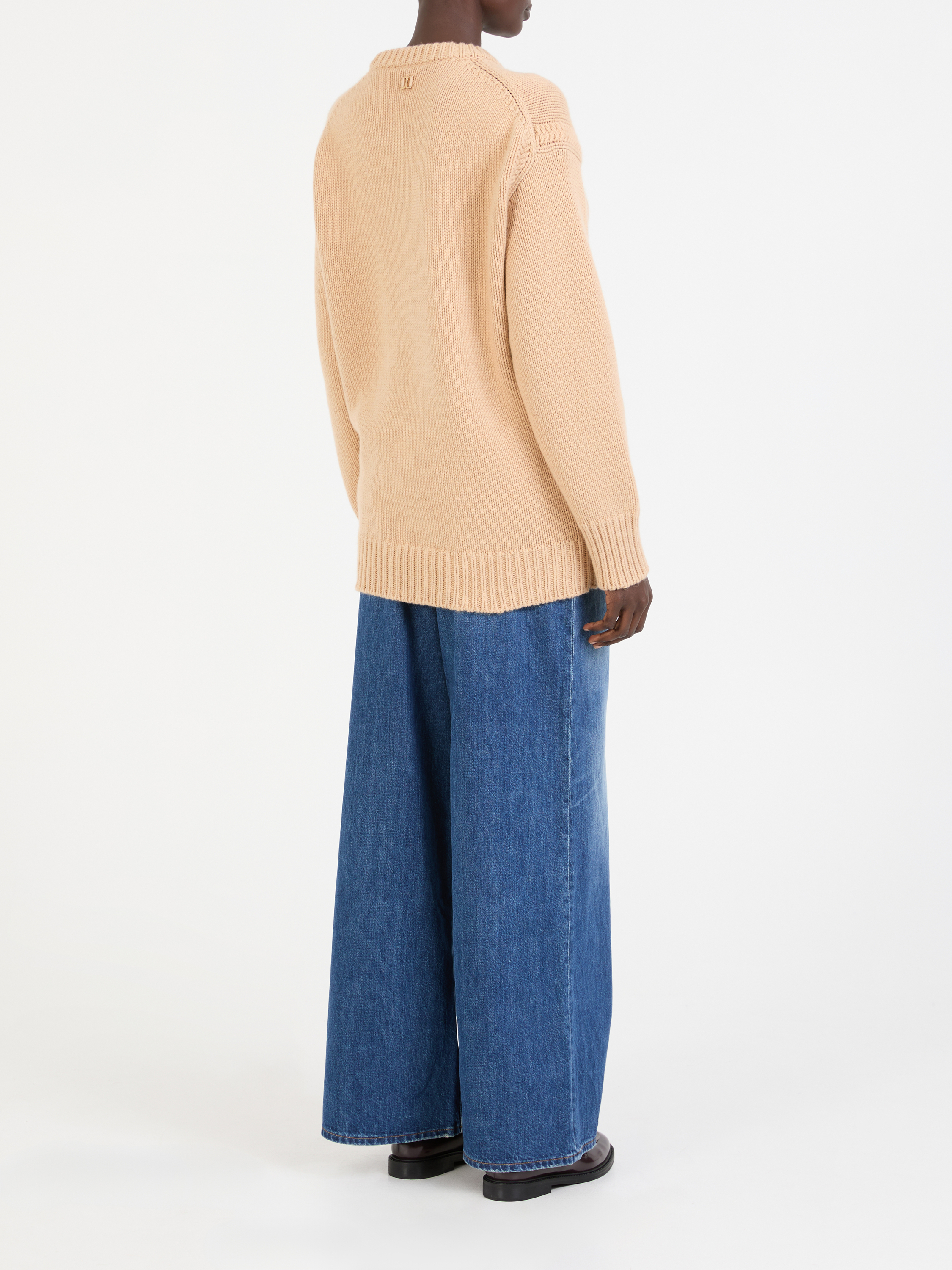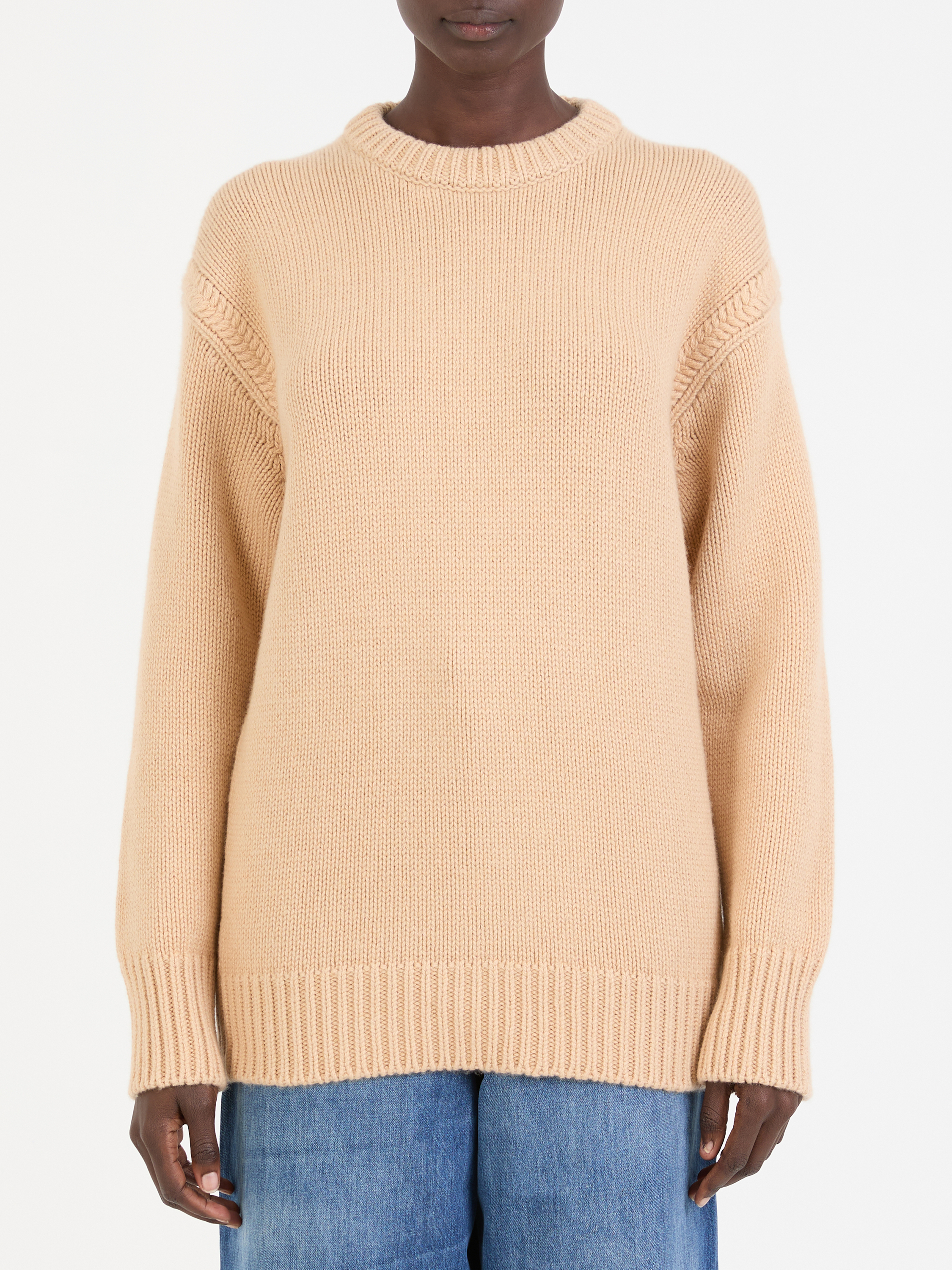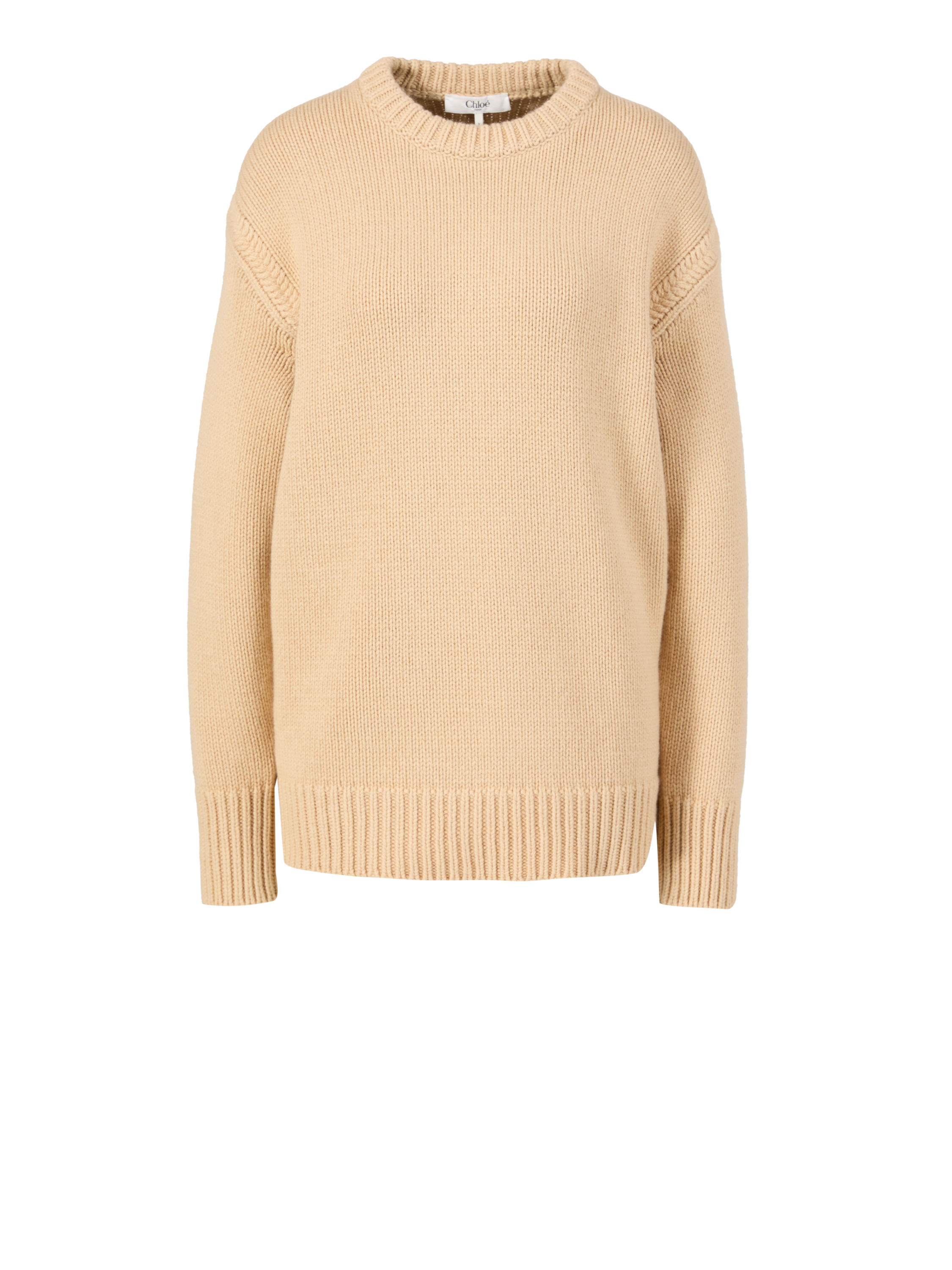 Dieser Pullover in Beige von Chloé wurde aus einer hochwertigen Woll-Cashmere-Mischung gefertigt und besticht durch eine klassische, lässige Silhouette. Der Rundhalsausschnitt, die Rippstrickbündchen und die weiche Haptik vollenden dieses Modell.